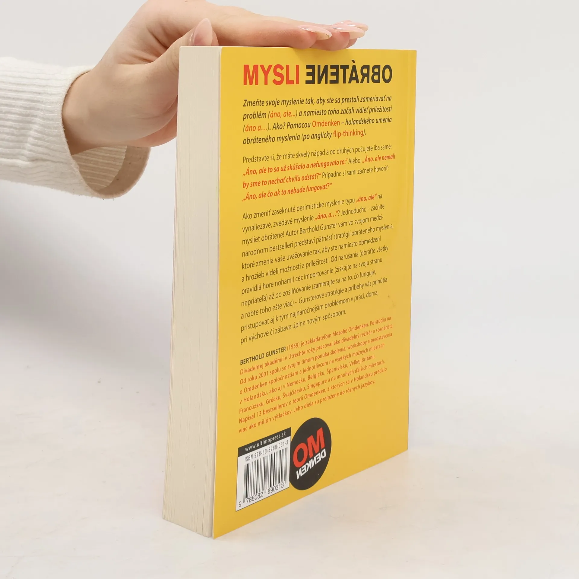 Zmeňte svoje myslenie tak, aby ste sa prestali zameriavať na problém (áno, ale...) a namiesto toho začali vidieť príležitosti (áno a…). Ako? Pomocou Omdenken – holandského umenia obráteného myslenia (po anglicky flip-thinking). Predstavte si, že máte skvelý nápad a od druhých počujete ibasamé: „Áno, ale to sa už skúšalo a nefungovalo to.“ Alebo: „Áno, ale nemali by sme to nechať chvíľu odstáť?“ Prípadne si sami začnete hovoriť: „Áno, ale čo ak to nebude fungovať?“ Ako zmeniť zaseknuté pesimistické myslenie typu „áno, ale“ na vynaliezavé, zvedavé myslenie „áno, a…“? Jednoducho – začnite myslieť obrátene! Autor Berthold Gunster vám vo svojom medzinárodnom bestselleri predstaví pätnásť stratégií obráteného myslenia, ktoré zmenia vaše uvažovanie tak, aby ste namiesto obmedzení a hrozieb videli možnosti a príležitosti. Od narúšania (obráťte všetky pravidlá hore nohami) cez importovanie (získajte na svoju stranu nepriateľa) až po zosilňovanie (zamerajte sa na to, čo funguje, a robte toho ešte viac) – Gunsterove stratégie a príbehy vás prinútia pristupovať aj k tým najnáročnejším problémom v práci, doma, pri výchove či zábave úplne novým spôsobom.