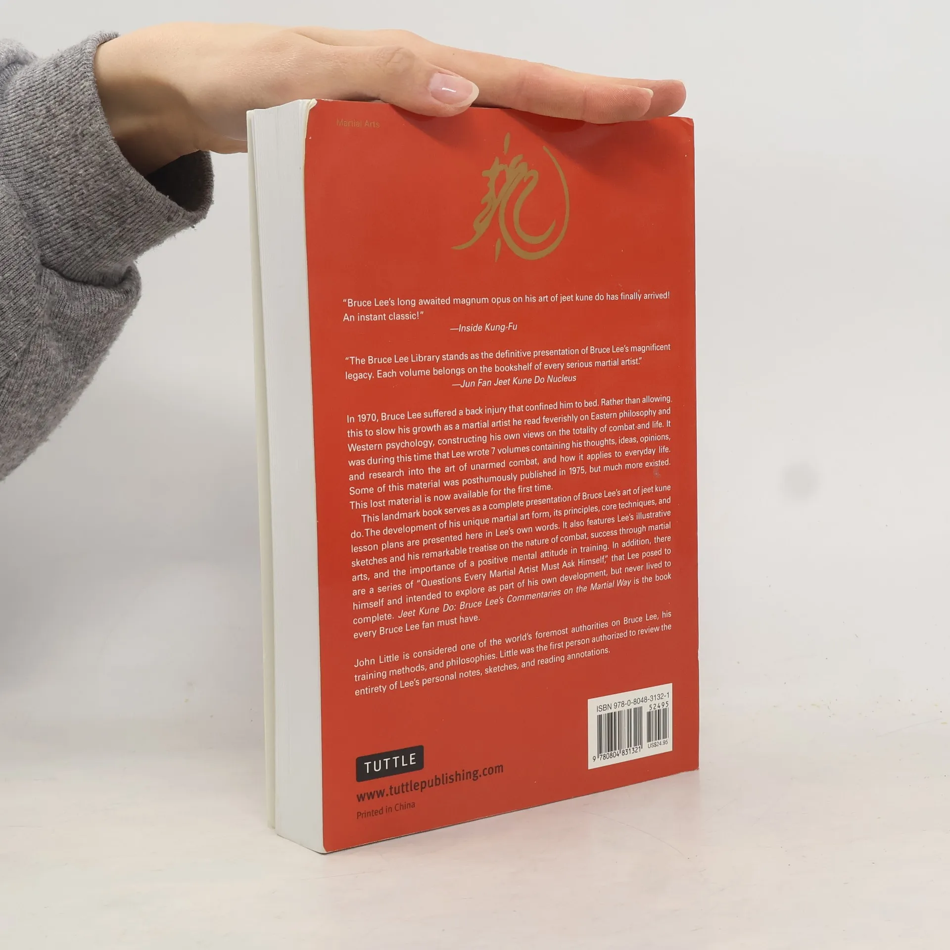 Compiled from Bruce Lee's notes and writings, Bruce Lee Jeet Kune Do is the seminal book presenting the martial art created by Bruce Lee himself.Jeet Kune Do was a revolutionary new approach to the martial arts in its time and is the principal reason why Bruce Lee is revered as a pioneer by martial artists today, many decades after his death. The development of his unique martial art form—its principles, core techniques, and lesson plans—are all presented in this book in Bruce Lee's own words and notes. This book is the complete and official version of Jeet Kune Do which was originally published by Tuttle Publishing in cooperation with the Lee family in 1997. It is still the most comprehensive presentation of Jeet Kune Do available.This Jeet Kune Do book features Lee's illustrative sketches and his remarkable notes and commentaries on the nature of combat and achieving success in life through the martial arts, as well as the importance of a positive mental attitude during training. Also, there is a series of "Questions Every Martial Artist Must Ask Himself" that Lee posed to himself and intended to explore as part of his development, but never lived to complete. Bruce Lee Jeet Kune Do is the book every Bruce Lee fan must have in his collection.This Bruce Lee Book is part of the Bruce Lee Library which also