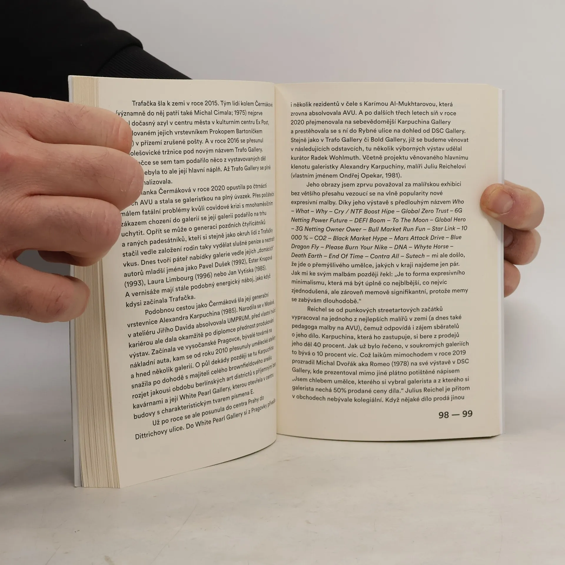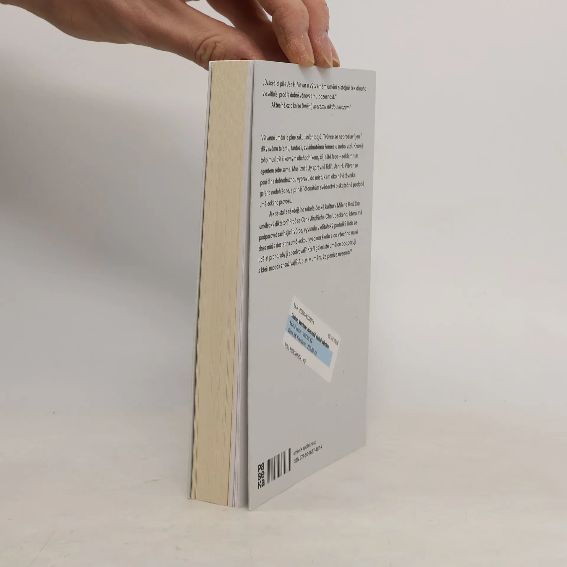 Výtvarné umění je plné zákulisních bojů. Tvůrce se neproslaví jen díky svému talentu, píli, fantazii, zvládnutému řemeslu, vizi nebo zásluhou neotřelých nápadů. Kromě toho musí být šikovným obchodníkem či ještě lépe – reklamním agentem sebe sama. Musí znát ty „správné lidi“. Jan H. Vitvar se pouští na dobrodružnou výpravu do míst, kam oko návštěvníka galerie nedohlédne, a přináší čtenářům svědectví o skutečné podobě uměleckého provozu. Jak se stal z někdejšího rebela české kultury Milana Knížáka umělecký diktátor? Proč se Cena Jindřicha Chalupeckého, která má podporovat začínající tvůrce, vyvinula v elitářský podnik? Kdo se dnes může dostat na uměleckou vysokou školu a co všechno musí udělat pro to, aby ji absolvoval? Kteří galeristé umělce podporují, a kteří naopak zneužívají? A platí v umění, že peníze nesmrdí?