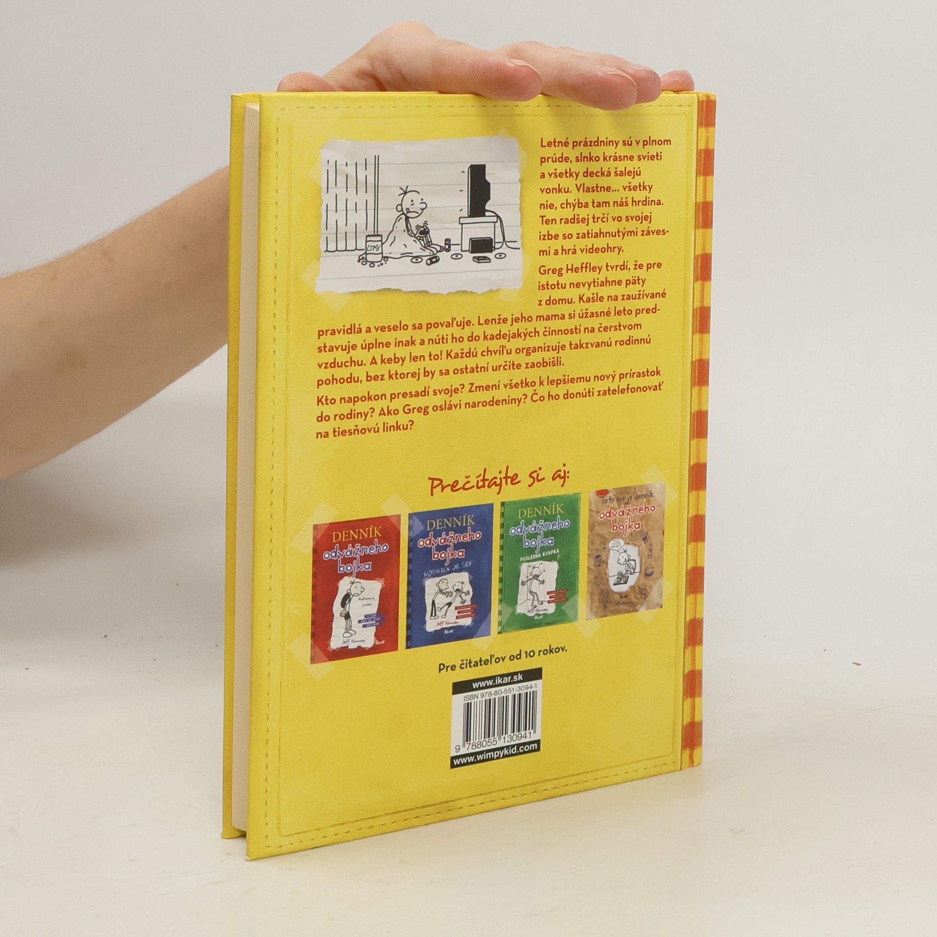 Letné prázdniny sú v plnom prúde, slnko krásne svieti a všetky decká šalejú vonku. Vlastne... všetky nie, chýba tam náš hrdina. Ten radšej trčí vo svojej izbe so zatiahnutými závesmi a hrá videohry. Greg Heffley tvrdí, že pre istotu nevytiahne päty z domu. Kašle na zaužívané pravidlá a veselo sa povaľuje. Lenže jeho mama si úžasné leto predstavuje úplne inak a núti ho do kadejakých činností na čerstvom vzduchu. A keby len to! Každú chvíľu organizuje takzvanú rodinnú pohodu, bez ktorej by sa ostatní určite zaobišli. Kto napokon presadí svoje? Zmení všetko k lepšiemu nový prírastok do rodiny? Ako Greg oslávi narodeniny? Čo ho donúti zatelefonovať na tiesňovú linku?