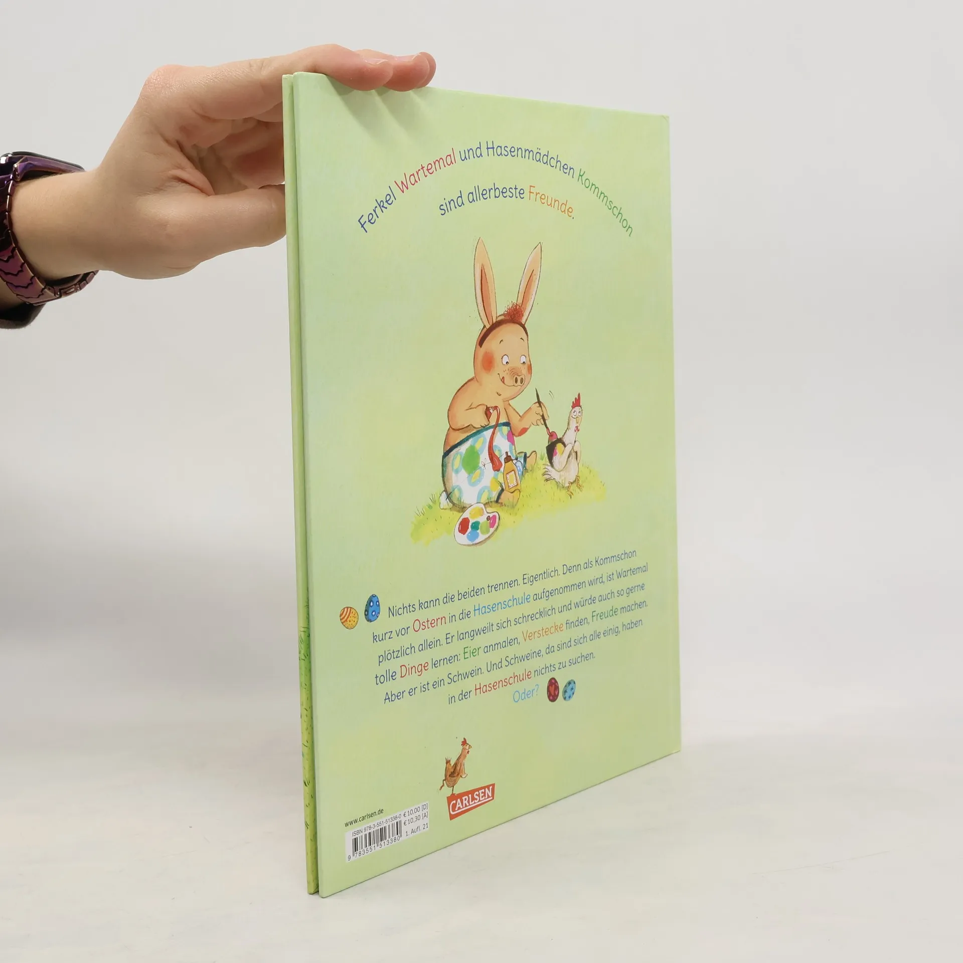 Schweinchen Wartemal und Häsin Kommschon sind allerbeste Freunde. Nichts kann die beiden trennen. Oder? Als Kommschon eines Tages in die Osterschule aufgenommen wird, ist Wartemal ganz schön traurig. Er langweilt sich schrecklich und würde auch so gerne tolle Dinge Eier anmalen, Verstecke finden, Freude machen.Aber er ist ein Schwein. Und Schweine – da sind sich alle einig – haben in der Osterschule nichts zu suchen. Doch Wartemal sieht das ein bisschen anders und hat eine ziemlich gute Idee ....Ein witziges, kunterbuntes Buch, das Konventionen hinterfragt und Kinder stärkt.Zum Vorlesen, Anschauen und Mitlachen – die perfekte Geschichte zur OsterzeitDie digitale Ausgabe von »Wartemal wird Osterschwein« ist ausschließlich als Fixed Format verfügbar und eignet sich deshalb nur für Tablets und Smartphone-Apps.