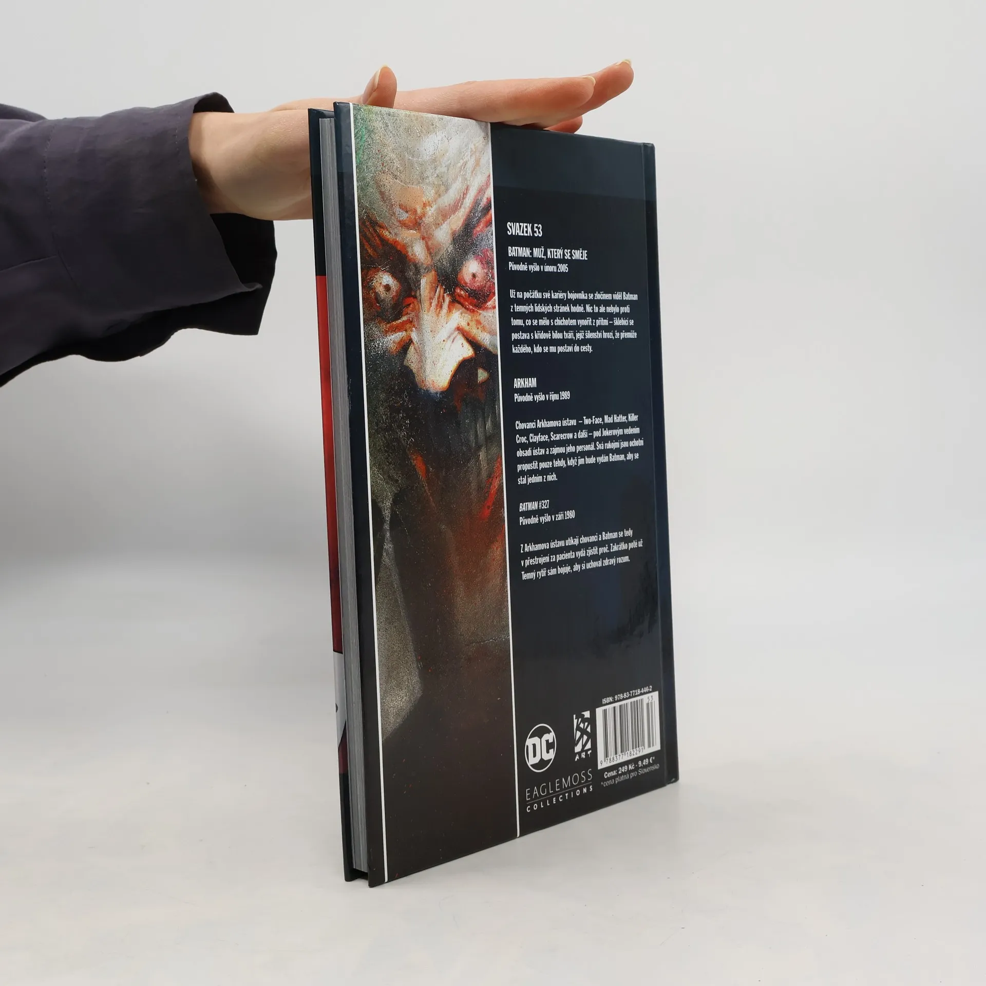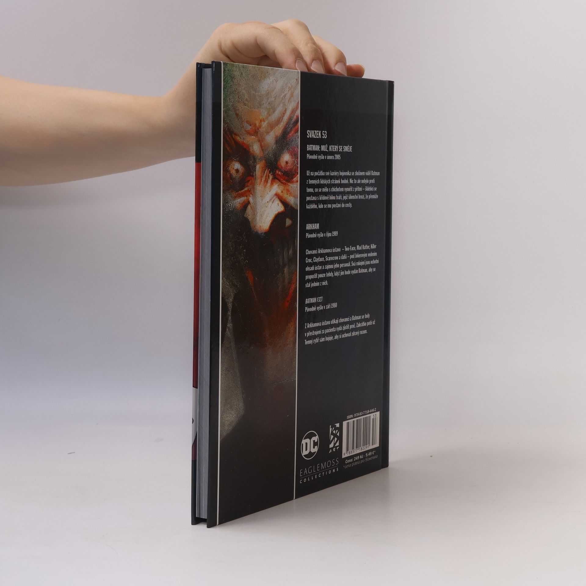 Batman: Muž, který se směje (Původně vyšlo v únoru 2005) Už na počátku své kariéry bojovníka se zločinem viděl Batman z temných lidských stránek hodně. Nic to ale nebylo proti tomu, co se mělo s chichotem vynořit z přítmí – šklebící se postava s křídově bílou tváří, jejíž šílenství hrozí, že přemůže každého, kdo se mu postaví do cesty. Arkham (Původně vyšlo v říjnu 1989) Chovanci Arkhamova ústavu – Two-Face, Mad Hatter, Killer Croc, Clayface, Scarecrow a další – pod Jokerovým vedením obsadí ústav a zajmou jeho personál. Svá rukojmí jsou ochotni propustit pouze tehdy, když jim bude vydán Batman, aby se stal jedním z nich. Batman #327 (Původně vyšlo v září 1980) Z Arkhamova ústavu utíkají chovanci a Batman se tedy v přestrojení za pacienta vydá zjistit proč. Zakrátko poté už Temný rytíř sám bojuje, aby si uchoval zdravý rozum.
