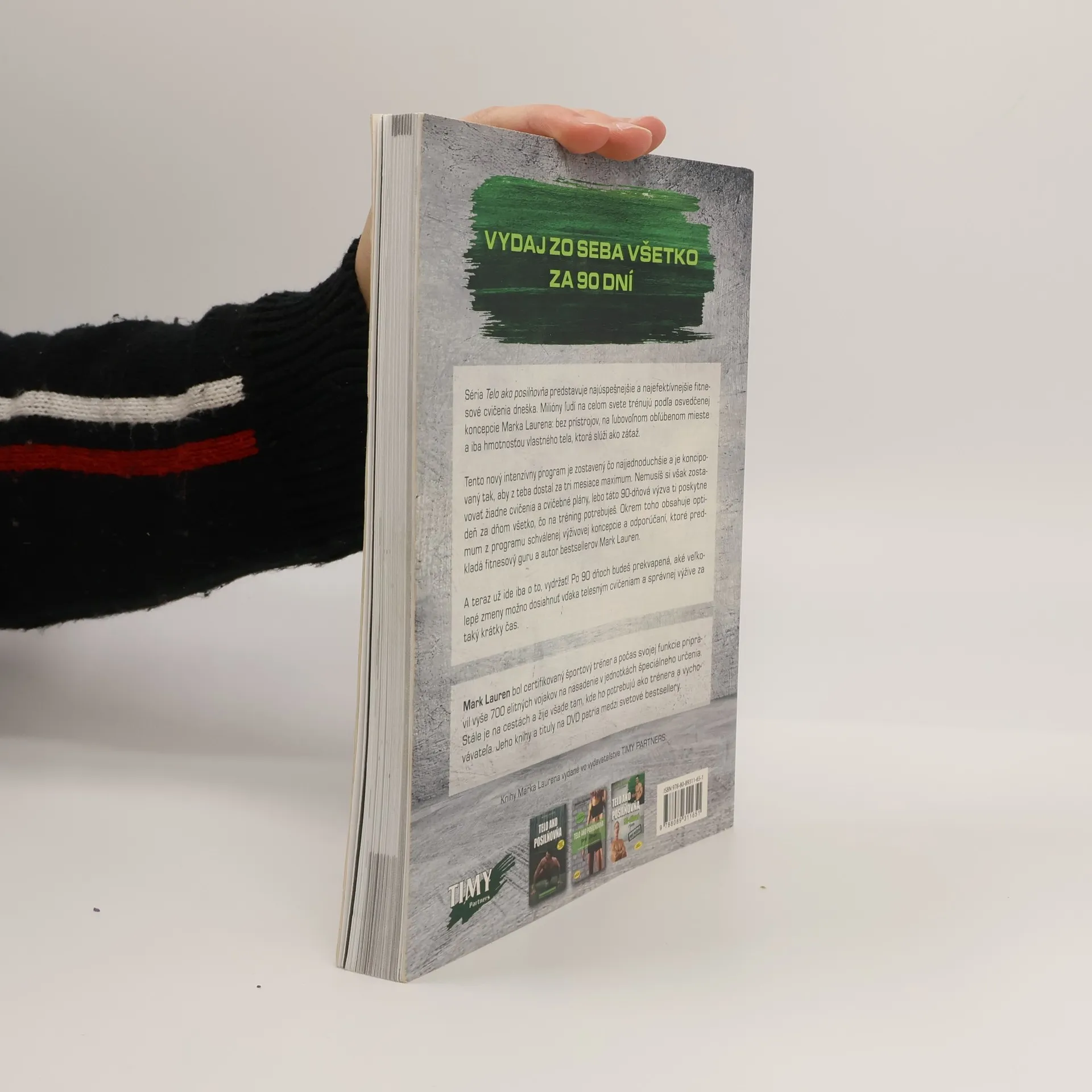 Vydaj zo seba všetko za 90 dní Séria Telo ako posilňovňa predstavuje najúspešnejšie a najefektívnejšie fitnesové cvičenia dneška. Milióny ľudí na celom svete trénujú podľa osvedčenej koncepcie Marka Laurena: bez prístrojov, na ľubovoľnom obľúbenom mieste a iba hmotnosťou vlastného tela, ktorá slúži ako záťaž. Tento nový intenzívny program je zostavený čo najjednoduchšie a je koncipovaný tak, aby z teba dostal za tri mesiace maximum. Nemusíš si však zostavovať žiadne cvičenia a cvičebné plány, lebo táto 90-dňová výzva ti poskytne deň za dňom všetko, čo na tréning potrebuješ. Okrem toho obsahuje optimum z programu schválenej výživovej koncepcie a odporúčaní, ktoré predkladá fitnesový guru a autor bestsellerov Mark Lauren. A teraz už ide iba o to, vydržať! Po 90 dňoch budeš prekvapená, aké veľkolepé zmeny možno dosiahnuť vďaka telesným cvičeniam a správnej výžive za taký krátky čas.