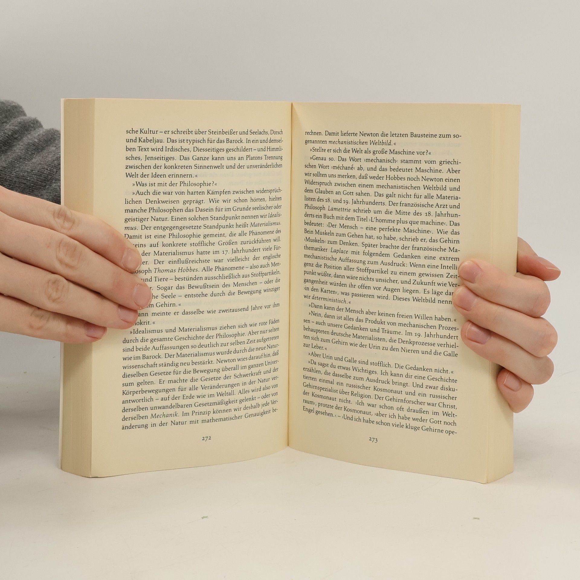 Weg in die geheimnisvolle Gedankenwelt »Ein dickes Buch, mit spitzen Fingern angefaßt und mit Begeisterung zugeklappt: ein großer Wurf im wört-lichen wie übertragenen Sinn.« Die Zeit Mysteriöse Briefe landen im Briefkasten der 15jährigen Sofie Amundsen in Oslo. Was sollen diese Fragen: »Wer bist du?«, »Was ist ein Mensch?« und »Woher kommt die Welt?«. Sofie ist irritiert. Die Briefe werden ausführlicher und entführen sie in die abenteuerliche und geheimnisvolle Gedankenwelt der großen Philosophen. Ihr unbekannter Briefeschreiber erzählt Sofie die Geschichte Europas, der Antike, des Mittelalters und der Renaissance und dann nimmt die Geschichte eine unglaubliche Wendung.