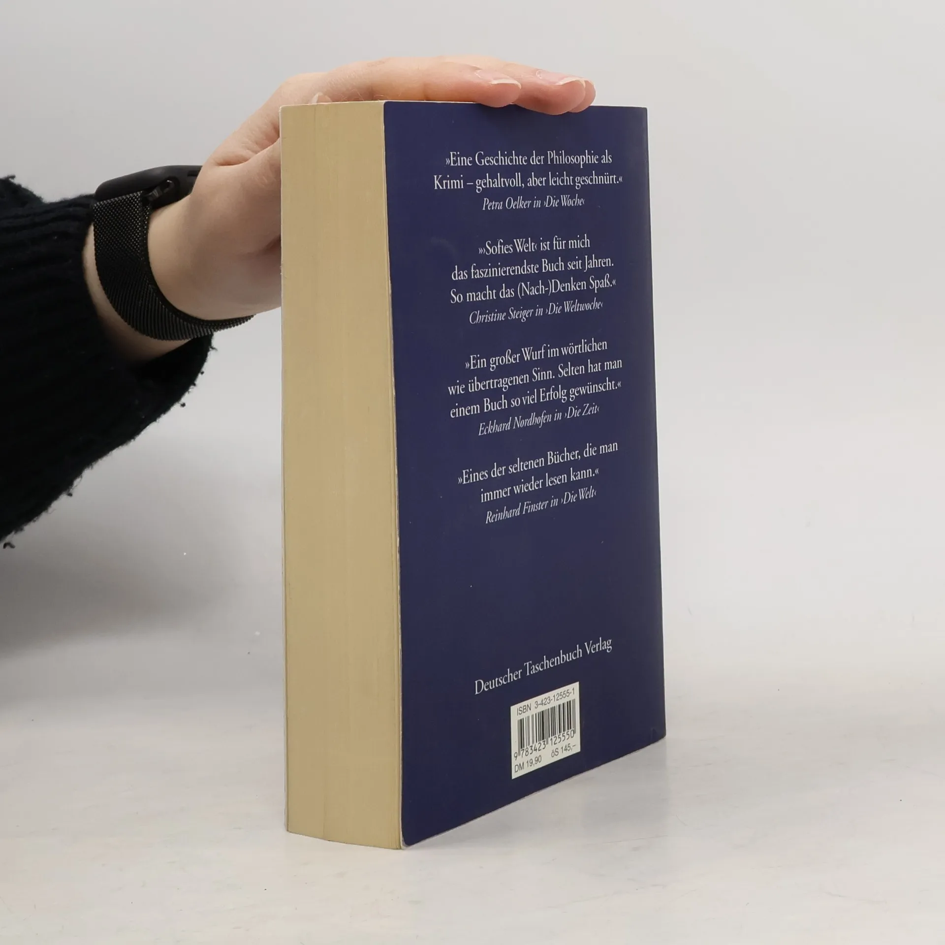 Weg in die geheimnisvolle Gedankenwelt »Ein dickes Buch, mit spitzen Fingern angefaßt und mit Begeisterung zugeklappt: ein großer Wurf im wört-lichen wie übertragenen Sinn.« Die Zeit Mysteriöse Briefe landen im Briefkasten der 15jährigen Sofie Amundsen in Oslo. Was sollen diese Fragen: »Wer bist du?«, »Was ist ein Mensch?« und »Woher kommt die Welt?«. Sofie ist irritiert. Die Briefe werden ausführlicher und entführen sie in die abenteuerliche und geheimnisvolle Gedankenwelt der großen Philosophen. Ihr unbekannter Briefeschreiber erzählt Sofie die Geschichte Europas, der Antike, des Mittelalters und der Renaissance und dann nimmt die Geschichte eine unglaubliche Wendung.