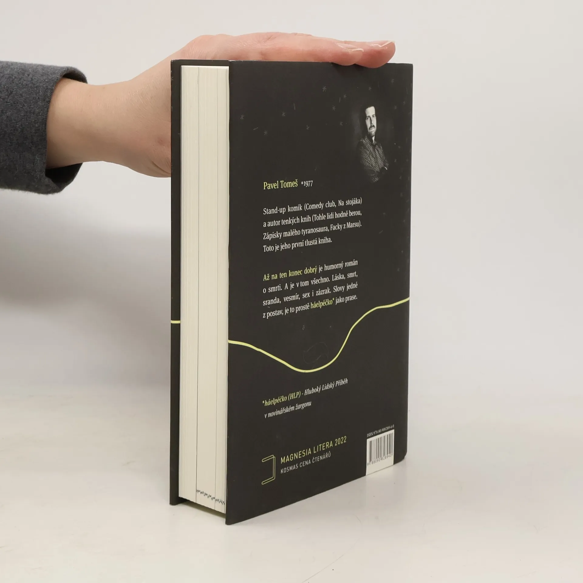 Humorný román o smrti. A je v tom všechno. Láska, smrt, sranda, vesmír, sex i zázrak. Slovy jedné z postav, je to prostě „háelpéčko* jako prase“. (*háelpéčko (HLP) –Hluboký Lidský Příběh v novinářském žargonu) Pavel Tomeš je stand-up komik, kterého můžete znát z TV pořadů Comedy club a Na stojáka. Vydal sbírky fejetonů Tohle lidi hodně berou, Zápisky malého tyranosaura a Facky z Marsu.