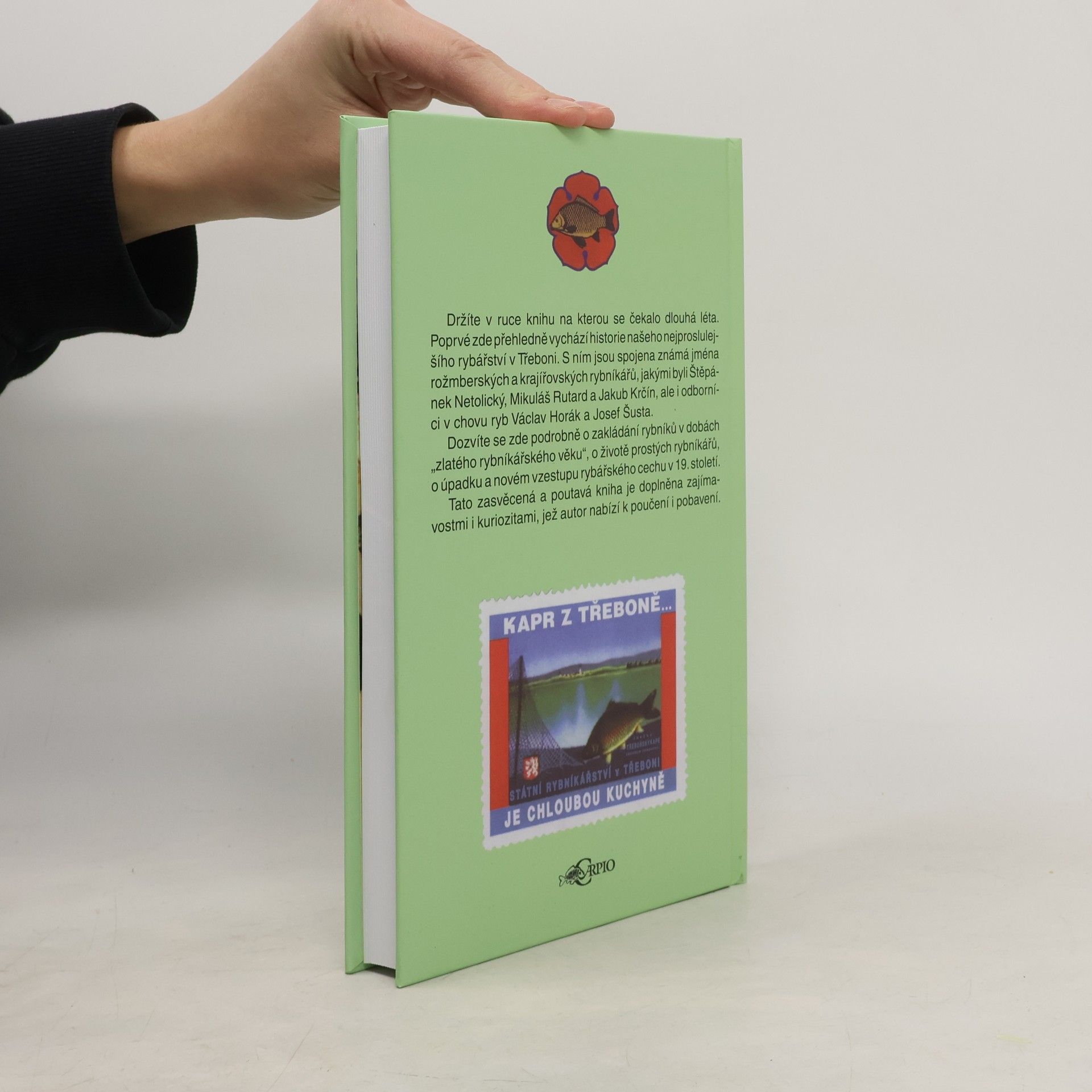 Poprvé po dlouhých létech v této knize vychází historie našeho nejproslulejšího rybářství v Třeboni. S ním jsou spojena známá jména rožmberských a krajířovských rybníkářů, jakými byli Štěpánek Netolický, Mikuláš Rutard a Jakub Krčín, ale i odborníci v chovu ryb Václav Horák aJosef Šusta. Podrobně je zde vysvětleno vše o zakládání rybníků v dobách „zlatého rybníkářského věku“, o životě prostých rybníkářů, o úpadku a novém vzestupu rybářského cechu v 19. Století. Kniha je doplněna zajímavostmi i kuriozitami.