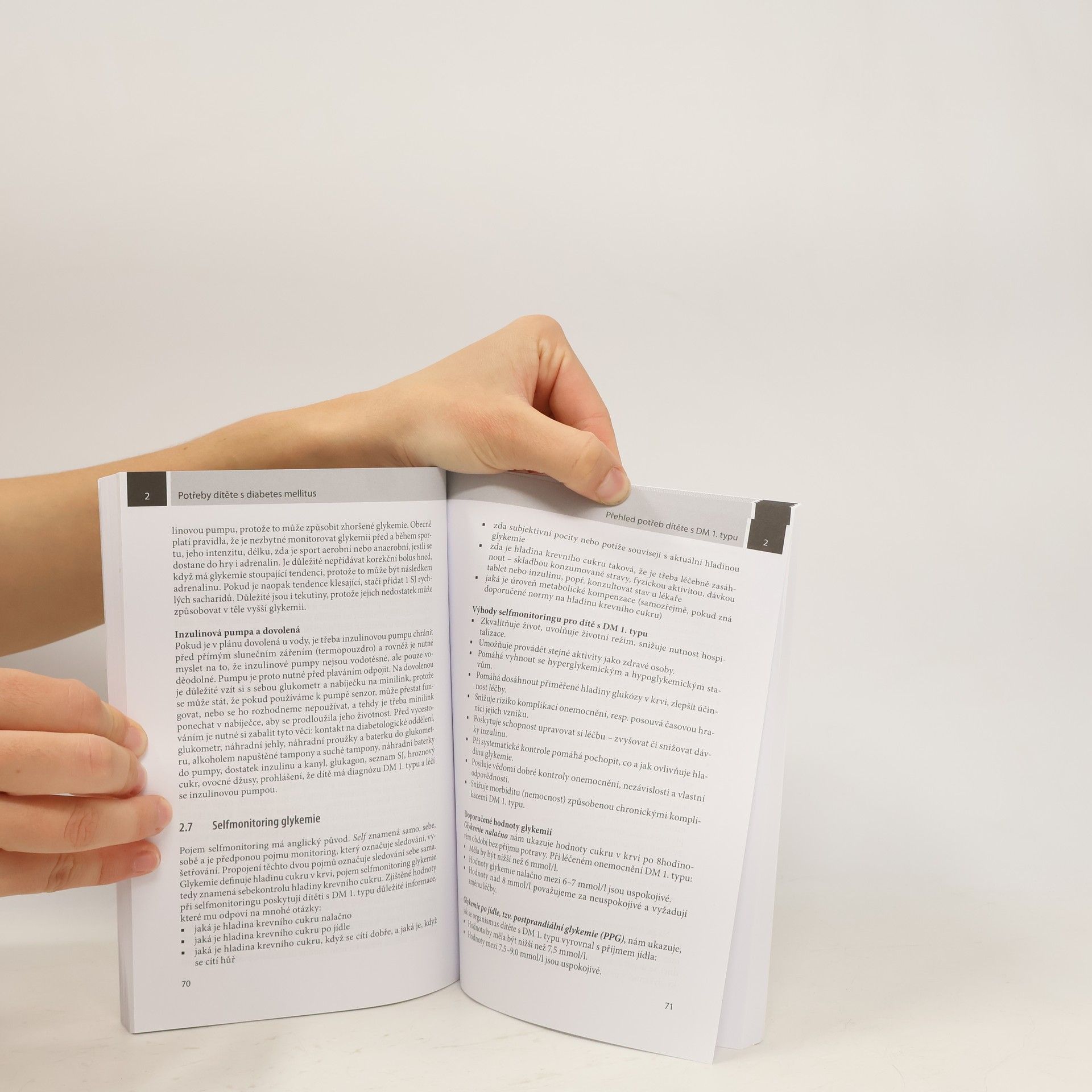 Publikace se aktuálně orientuje na zvláštnosti onemocnění DM z pohledu ošetřovatelství, protože této problematice je věnováno málo odborné literatury. Komplexně a holisticky pojednává o biologických, psychických, sociálních a ekonomických potřebách dítěte a rodiny potýkající se s tímto závažným celoživotním chronickým onemocněním. Podrobně jsou zpracovány výživové nároky dítěte s DM, včetně poradenství o náležité nutrici, která je základem úspěchu léčby. Rozebrána je potřeba vyprazdňování, pohybové aktivity a také potřeby psychické, jež se liší v jednotlivých věkových obdobích, z hlediska vyrovnávání se s onemocněním. Autorky v publikaci ve významné míře využily ukázky aplikace inzulinu různými způsoby, které hrají v edukačním procesu nezastupitelnou roli, a poukázaly na ekonomické důsledky onemocnění. Učebnice je určena k pregraduální přípravě studentů nelékařských zdravotnických oborů, zejména ošetřovatelství (dětská sestra) a porodní asistence, dále sestrám a dalším nelékařským zdravotnickým pracovníkům v praxi. Poslouží však jako významný informační zdroj i laikům, např. rodinám s dítětem s DM nebo pedagogům v předškolní přípravě i školní výuce žáků s tímto onemocněním.