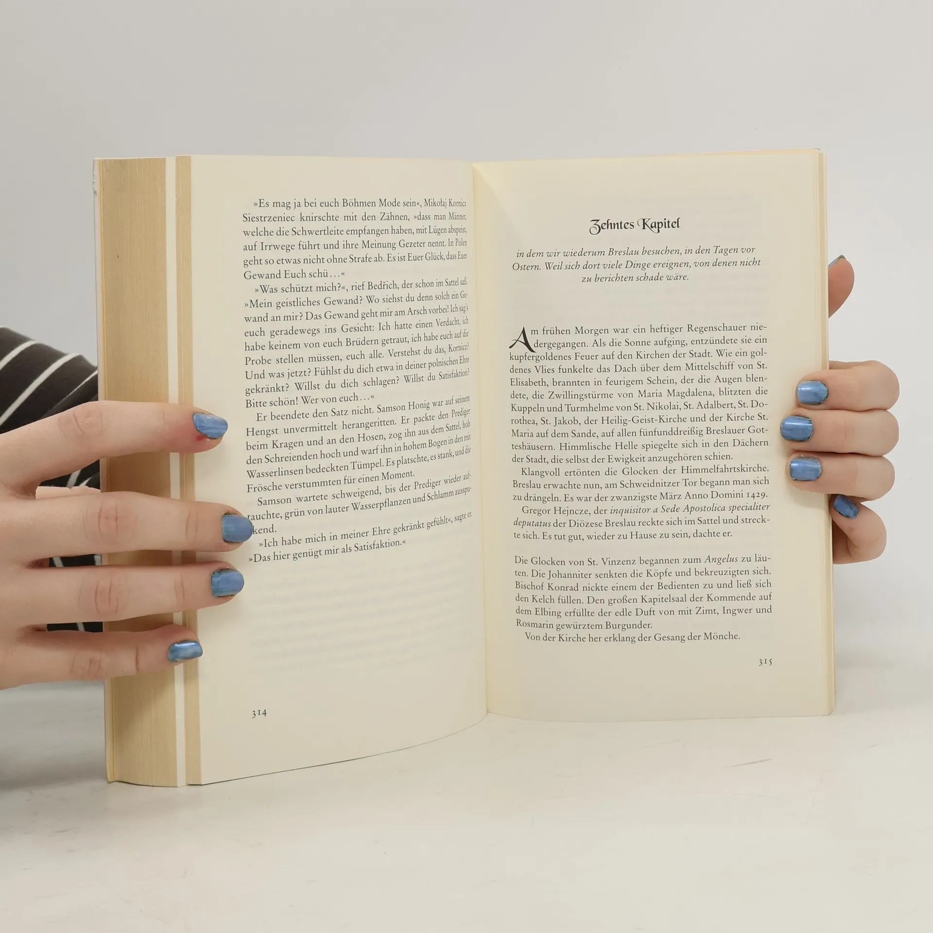 Reynevan, der Medicus, wird von seinem Erzfeind, dem Bischof von Breslau, wegen »Verbrechen und Zauberei« verdammt. Unser Held verliert dennoch nicht den Mut, sondern sucht weiter nach seiner Nicoletta, die von Anhängern des Bischofs entführt worden ist. Seine Suche führt ihn nach Schlesien, Böhmen und auch in andere Gebiete, durch die sich ein blutiger Glaubenskrieg wälzt...