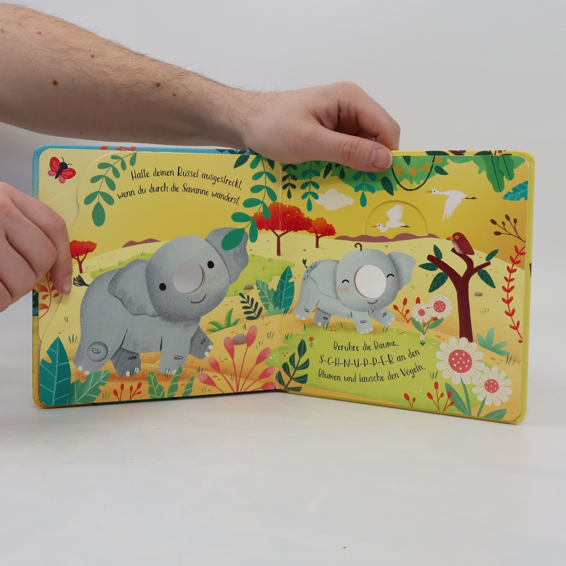 Zeige dem kleinen Elefanten, was er alles mit seinem Rüssel machen kann. Ein Fingerspielbuch für Groß und Klein, das Spaß macht und ganz nebenbei die Feinmotorik schult.