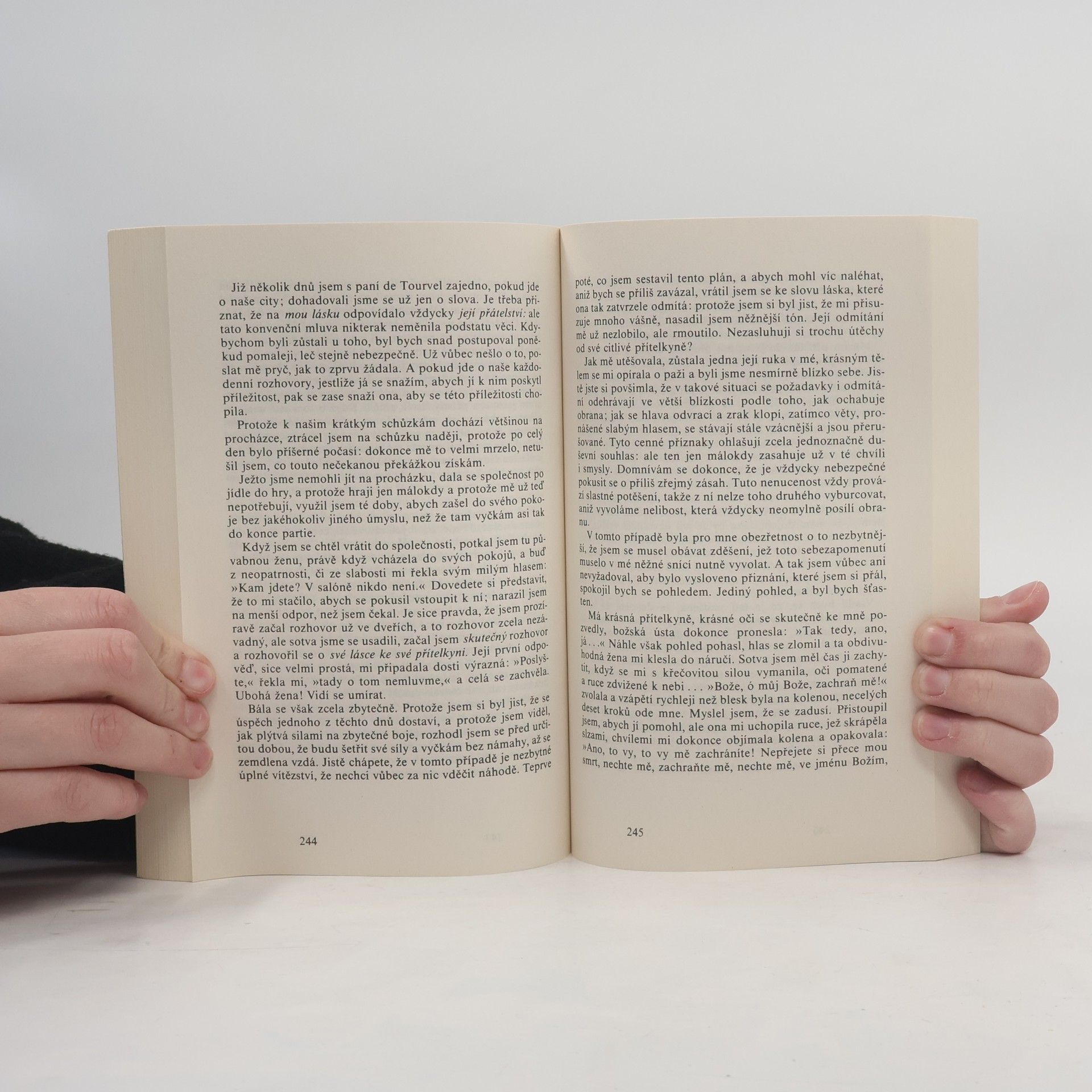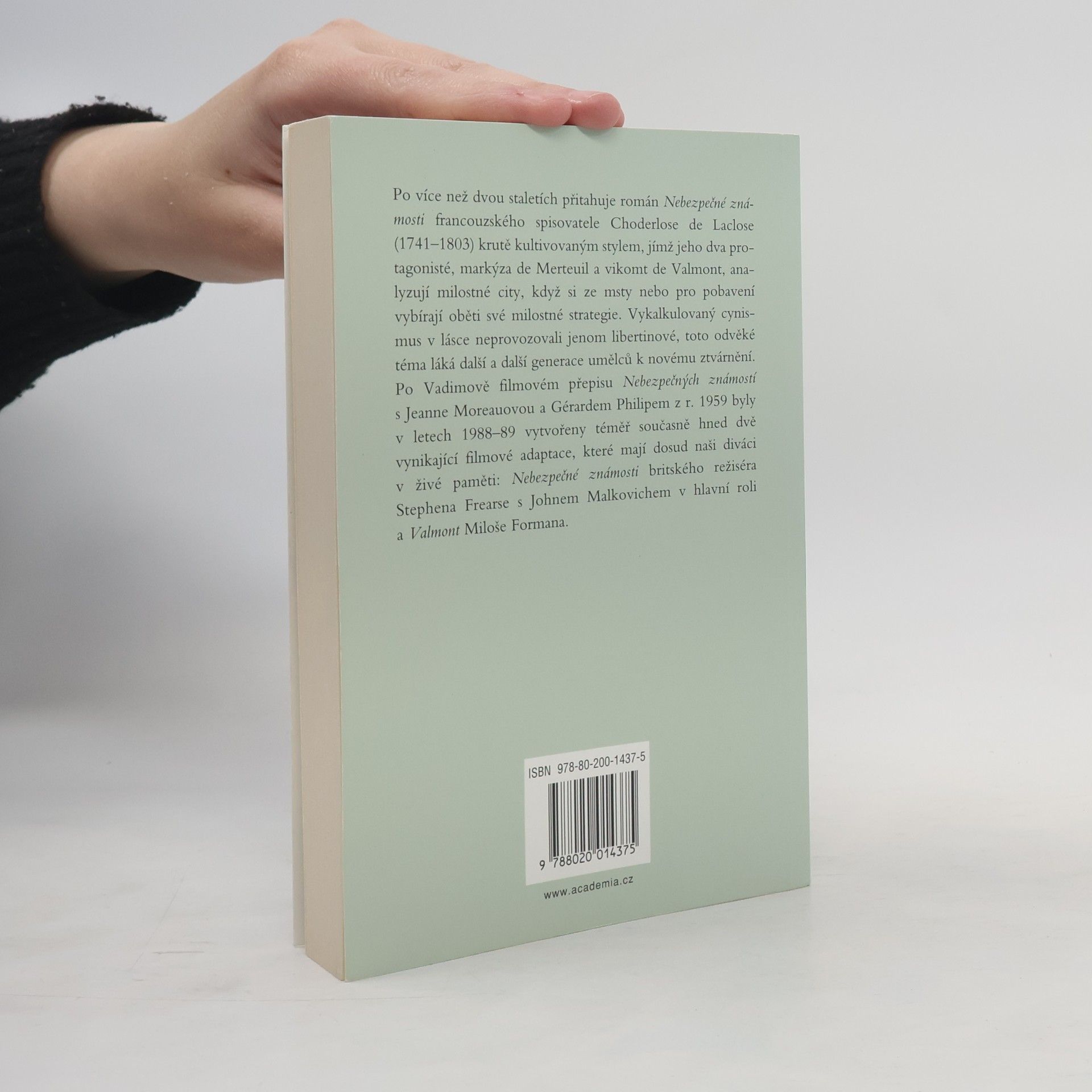 Román francouzského spisovatele Choderlose de Laclose, který vyšel prvně v roce 1782 a svou otevřenou kritikou mravů a vztahů určitých společenských vrstev si získal velkou pozornost. V téměř 200 dopisech autor vypráví příběh dvou libertinských šlechticů – Vikomta de Valmont a Markýzy de Merteuil – jejichž největší zálibou je zahrávání si s city ostatních lidí. Bezostyšně svádějí a následně vypočítavě odvrhují nevinné oběti. Brzy se však sami dostávají do nebezpečně úzkých smyček svých vlastních her. ISBN 978-80-200-1437-5 (dotisk 2007)