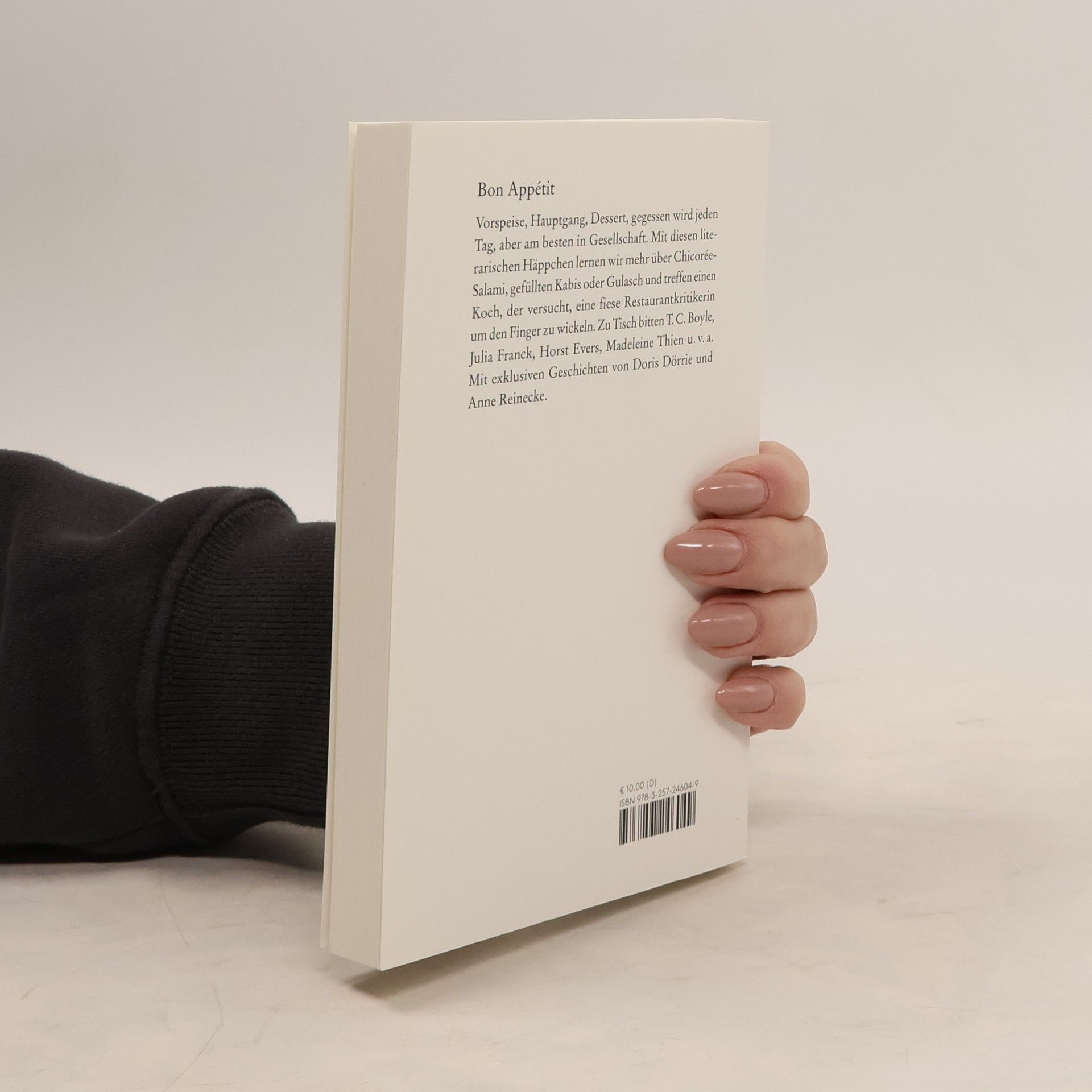 Vorspeise, Hauptgang, Dessert, gegessen wird jeden Tag, aber am besten in Gesellschaft. Mit diesen literarischen Häppchen lernen wir mehr über die Geschichte der Hochzeitstorte und treffen einen Koch, der versucht, eine fiese Restaurantkritikerin um den Finger zu wickeln. Zu Tisch bitten T. C. Boyle, Julia Franck, Horst Evers u. v. a. Mit einer exklusiven Geschichte von Doris Dörrie.