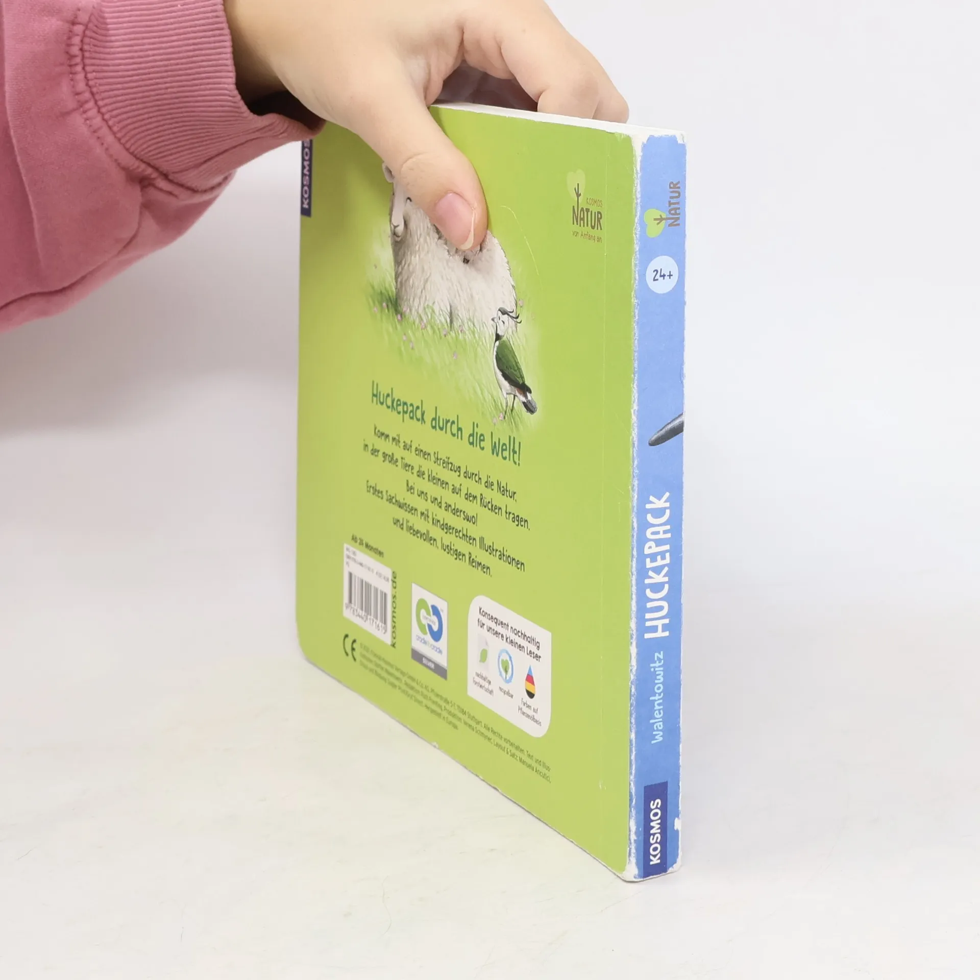 Bei Tierkindern und ihren Eltern ist es wie bei den Menschen: Groß trägt Klein. Der Buckelwal trägt sein Walkind auf dem Rücken, so auch der Koala, der Schwan und sogar die Blattlaus. Was aber trägt der Elefant? Einen Vogel! Und auf dem Rücken vom Nashorn haben es sich kleine Mücken gemütlich gemacht. 19 Tiere und ihre Babys oder ihre kleinen Helfer und „Bewohner“ werden mit lustigen Zeichnungen und liebevollen Reimen vorgestellt. KOSMOS Natur von Anfang an – konsequent nachhaltig. Produziert nach dem zertifizierten Cradle-to-Cradle-Prinzip.