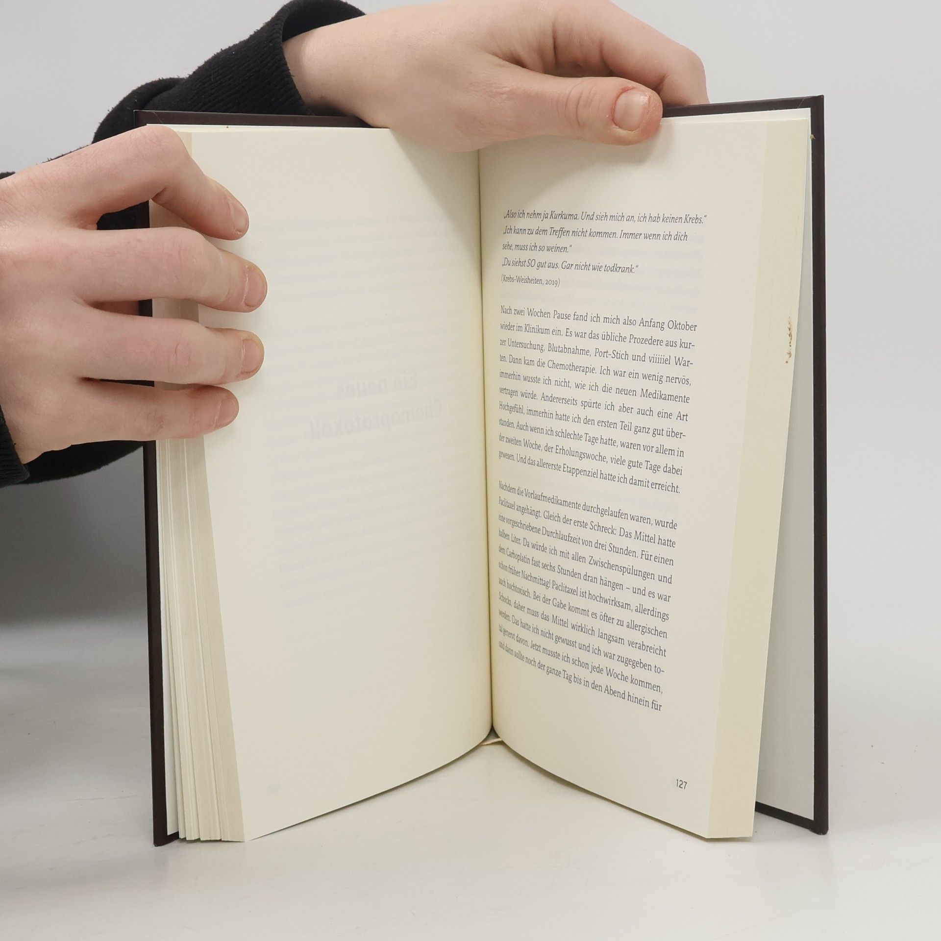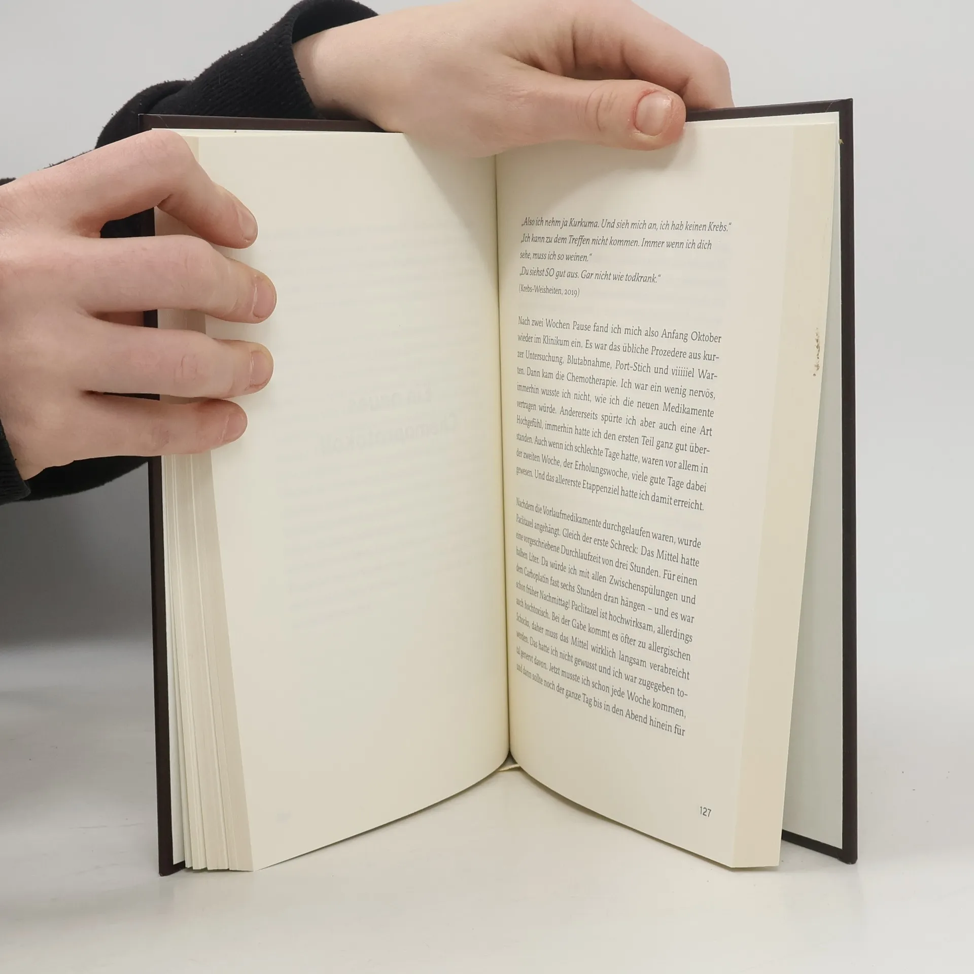 »„Atmen. Atme tief. Und hör ihm doch verdammt noch mal zu.“ Ich zwinge mich zu atmen. Ein, aus. Ein, aus. Und zwinge mich, ihm zuzuhören. Er, er ist der Arzt, der mir gerade mitteilt, dass ich Krebs habe. Eine besonders aggressive Form, nicht gerade für seine herausragende Behandlungsmöglichkeit bekannt. Brustkrebs also. Vor meinem inneren Auge rasen Glatzen vorbei, Infusionsständer, Beerdigungen. „Das kann nicht sein“, denke ich. „Ich bin erst 40. Und die Kinder? Was ist mit den Kindern?“« Dieses Buch ist eine Reise durch die Krebswelt, von der Diagnose und Therapie bis zum heutigen Tag. Eine Reise zur Erkenntnis, dass auch beim Krebs Schwarz und Weiß Grau ergibt und Krebs nie „erledigt“ ist. Und eine Reise zur Erfahrung, was im Leben so wichtig wird, wenn es erst einmal in Gefahr ist.