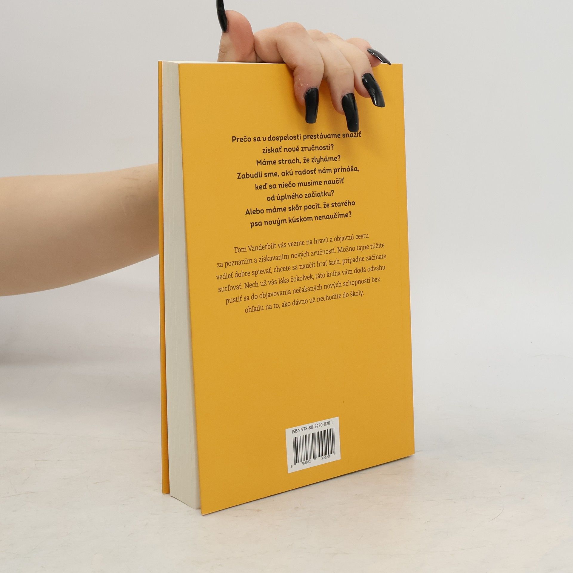 Prečo sa v dospelosti prestávame snažiť získať nové zručnosti? Máme strach, že zlyháme? Zabudli sme, akú radosť nám prináša, keď sa niečo musíme naučiť od úplného začiatku? Alebo máme skôr pocit, že starého psa novým kúskom nenaučíme? Poslednú novú zručnosť sme získali azda ešte v detstve. Máme síce úctu k profesionálnym znalostiam, no na tých, ktorí sa pokúšajú naučiť niečo nové, hľadíme zhora. Vstupom do dospelosti prestávame skúšať nové veci a radšej sa zašívame v pohodlnom kútiku bežnej rutiny. Tí, ktorí sa usilujú naučiť sa niečo nové, si však kladú otázku: prečo by sme sa nemohli tešiť z každodenných výziev tak ako deti? Dokážeme si osvojiť nové spôsobilosti, aj keď si spočiatku nevieme rady? Pod vplyvom svojej nesmierne zvedavej dcéry sa Tom Vanderbilt snaží nájsť odpovede na tieto otázky. Nadobúda päť základných nových zručností, ktoré si zvolil pre ich náročnosť a nedostatok uplatnenia na pracovnom trhu – šach, spev, surfovanie, kreslenie a žonglovanie, a postupne odhaľuje, že cesta k ich osvojeniu je uspokojivejšia než získavanie ďalších poznatkov. Čoskoro totiž zistí, akú radosť mu prináša spievanie pesničiek Spice Girls v amatérskom zbore, prehry v šachu s osemročnými deťmi či uhýbanie škorpiónom pri surfovaní v Kostarike. Popritom vedie rozhovory s desiatkami odborníkov, aby preskúmal, čo hovorí veda a ako funguje psychické nastavenie ľudí, ktorí sa neúnavne púšťajú do nových zážitkov.