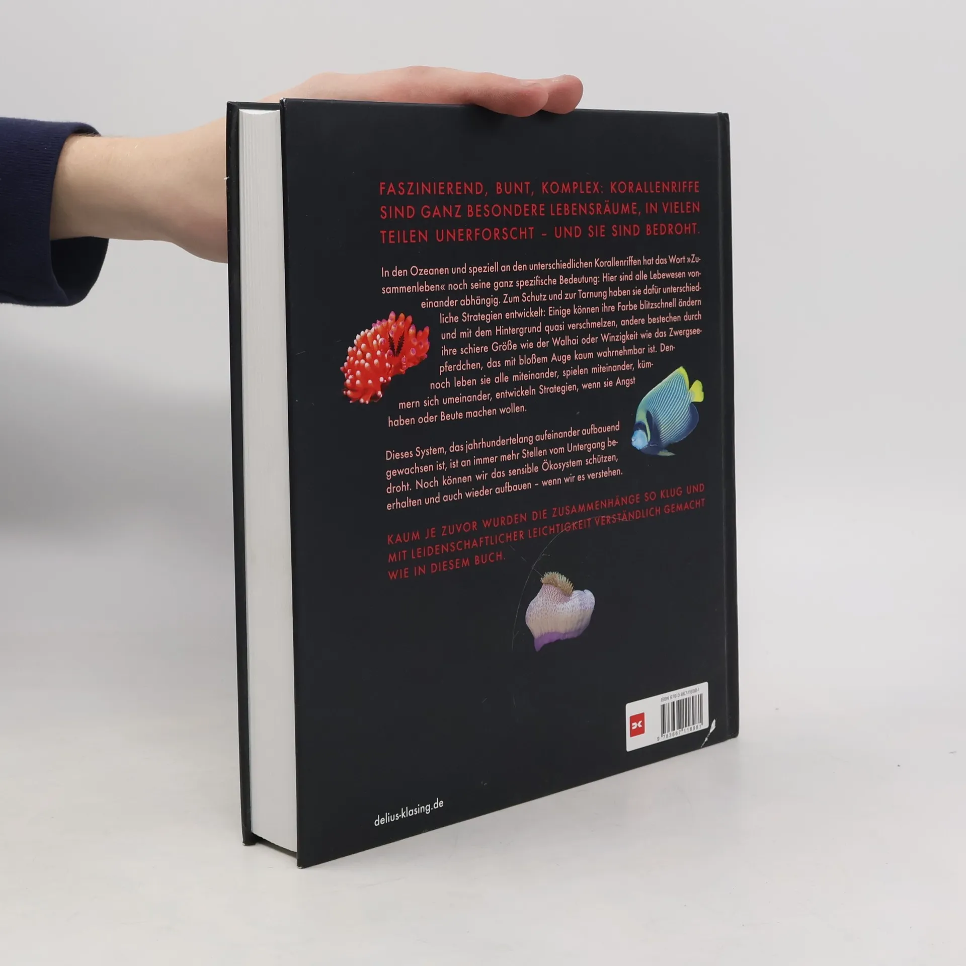 Informativer Text-Bild-Band, der nur grob gegliedert die Funktionsweise von Korallenriffen erklärt, einzelne Lebewesen und ihre gegenseitigen Abhängigkeiten vorstellt sowie die Gefährdungen dieses besonderen Biotops aufzeigt