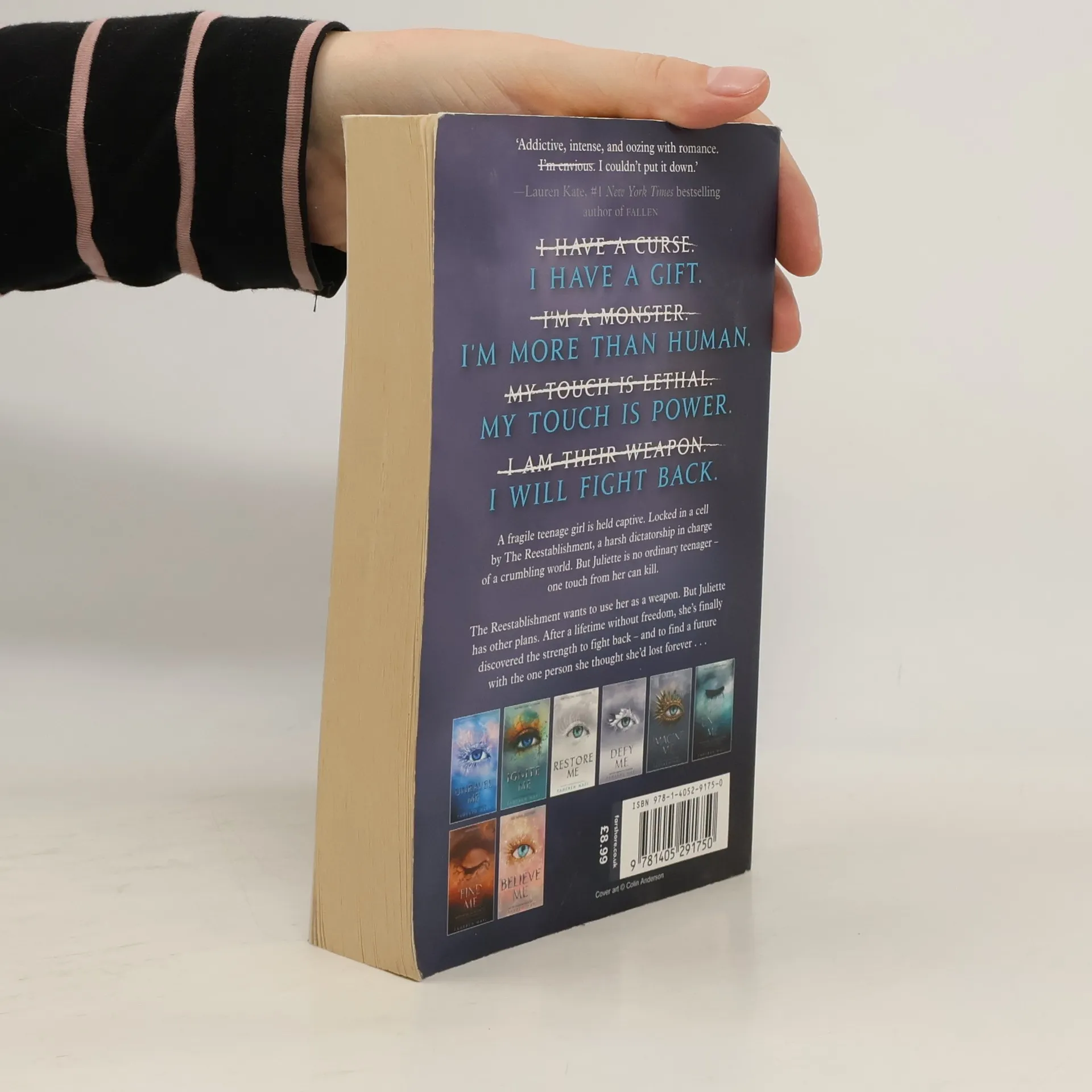 A fragile young teenage girl is held captive. Locked in a cell by The Reestablishment – a harsh dictatorship in charge of a crumbling world. This is no ordinary teenager. Juliette is a threat to The Reestablishment's power. One touch from her can kill. But not only is she a threat, she is potentially the most powerful weapon they could have. Juliette has never fought for herself before but when she’s reunited with the one person who ever cared about her, the depth of the emotion and the power within her become explosive …