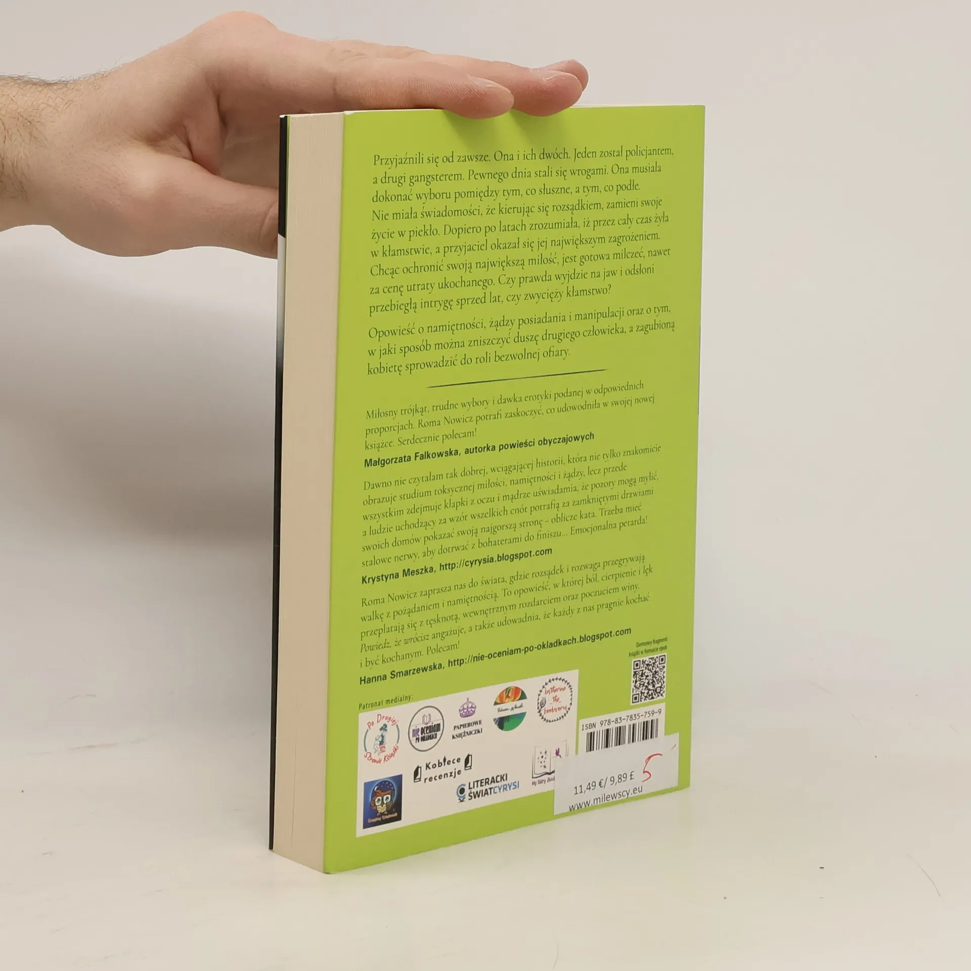 Przyjaźnili się od zawsze. Ona i ich dwóch. Jeden został policjantem, a drugi gangsterem. Pewnego dnia stali się wrogami. Ona musiała dokonać wyboru pomiędzy tym, co słuszne, a tym, co podłe. Nie miała świadomości, że kierując się rozsądkiem, zamieni swoje życie w piekło, a siebie – w ofiarę. Dopiero po latach zrozumiała, iż przez cały czas żyła w kłamstwie, a przyjaciel okazał się jej największym zagrożeniem. Chcąc ochronić swoją największą miłość, jest gotowa milczeć, nawet za cenę utraty ukochanego. Czy prawda wyjdzie na jaw i odsłoni przebiegłą intrygę sprzed lat, czy zwycięży kłamstwo?Opowieść o namiętności, żądzy posiadania i manipulacji oraz o tym, w jaki sposób można zniszczyć duszę drugiego człowieka, a zagubioną kobietę zamienić w bezwolną ofiarę.