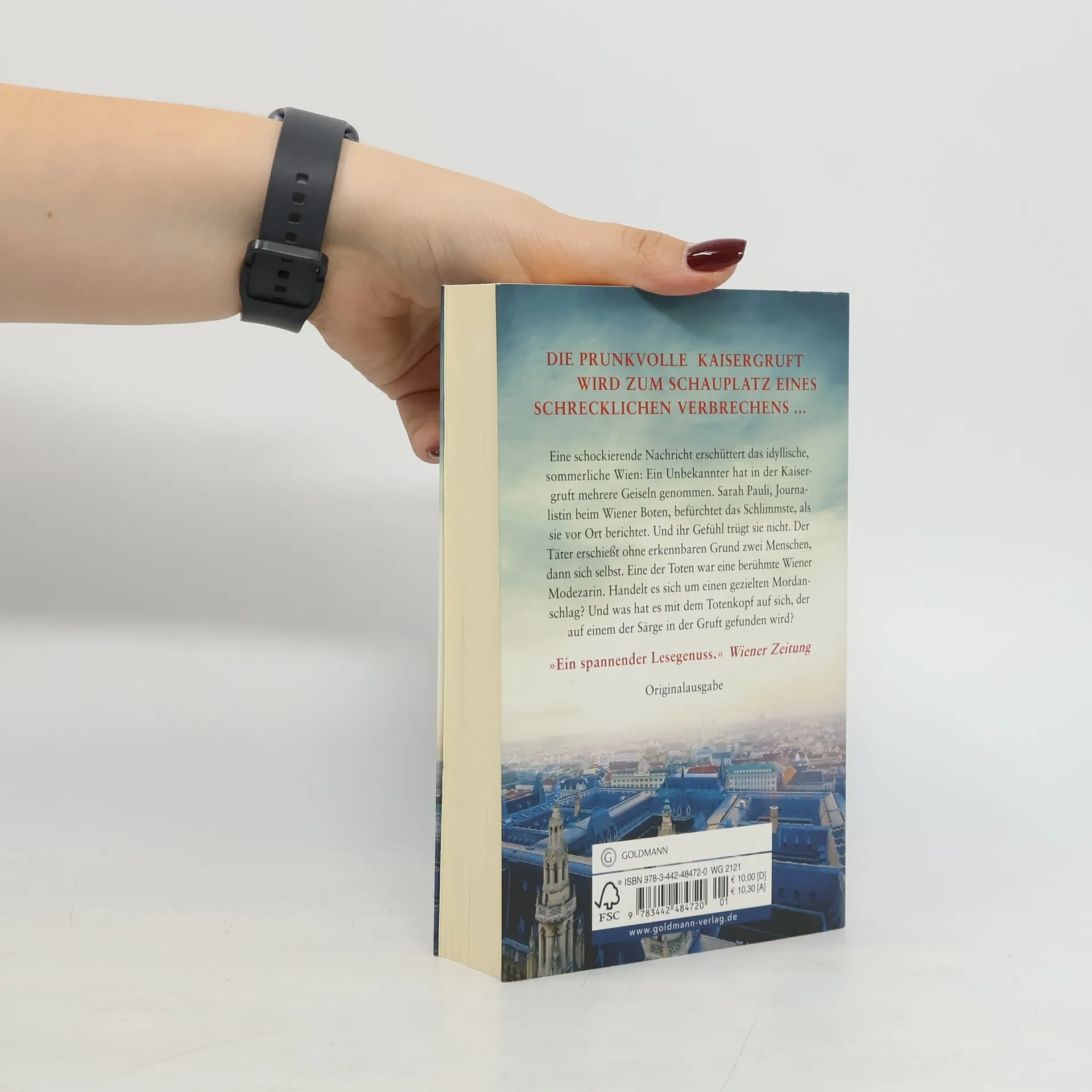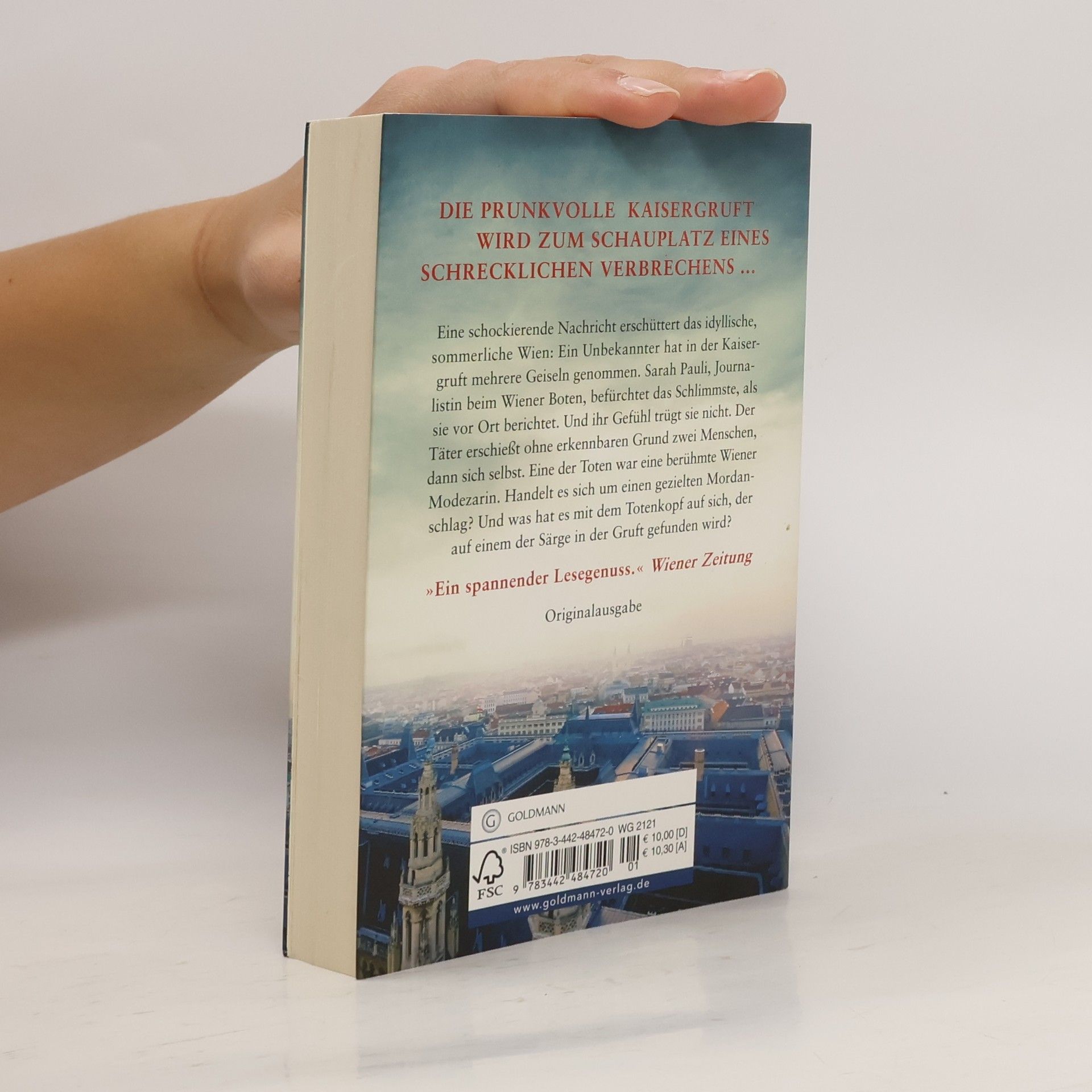 Die prunkvolle Kaisergruft wird zum Schauplatz eines schrecklichen Verbrechens ... Eine schockierende Nachricht erschüttert das idyllische, sommerliche Wien: Ein Unbekannter hat in der weltberühmten Kaisergruft mehrere Geiseln genommen. Sarah Pauli, Journalistin beim Wiener Boten, befürchtet Schlimmes, als sie vor Ort berichtet. Und ihr Gefühl trügt sie nicht. Der Täter erschießt ohne erkennbaren Grund zwei Menschen, dann sich selbst. Sarah findet heraus, dass eine der Toten eine prominente Wiener Modezarin war. War die Tat etwa ein gezielter Mordanschlag auf die Frau? Und was hat es mit dem rätselhaften Totenkopf auf sich, der auf einem der Särge in der Gruft gefunden wird?