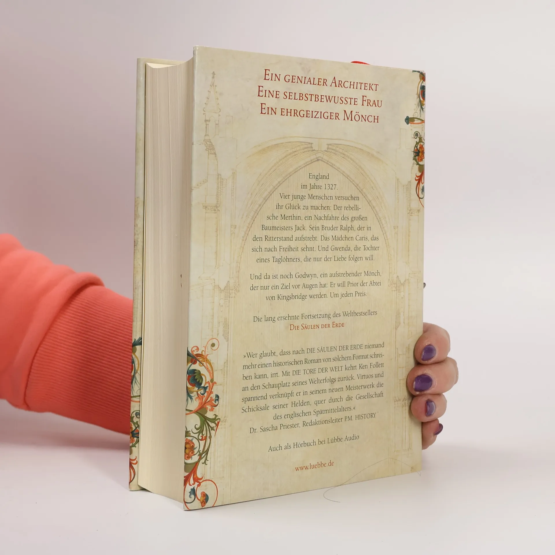 Ein breit angelegter Roman aus dem mittelalterlichen England um 1150, in dessen Mittelpunkt der durch Krankheit und Tod, weltliche und kirchliche Auseinandersetzungen immer wieder behinderte Bau einer Kathedrale steht