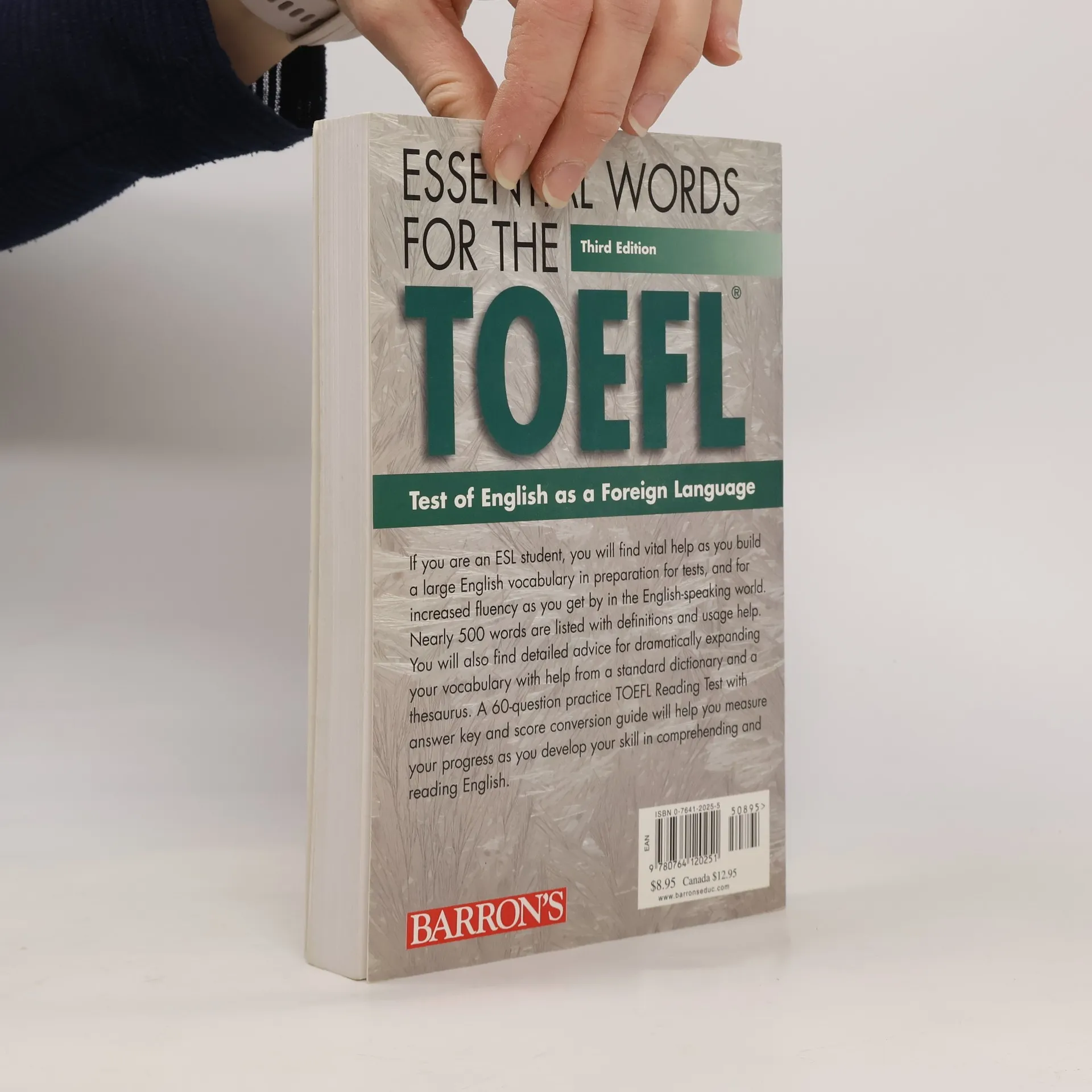 Students of English as a Second Language will find vital help as they build a large English vocabulary. Nearly 500 words are listed with definitions and pronunciation help. There is also detailed advice for dramatically expanding one’s vocabulary with help from a standard dictionary and a thesaurus. Practice tests with answer keys help students measure their progress as they develop increased fluency in English.