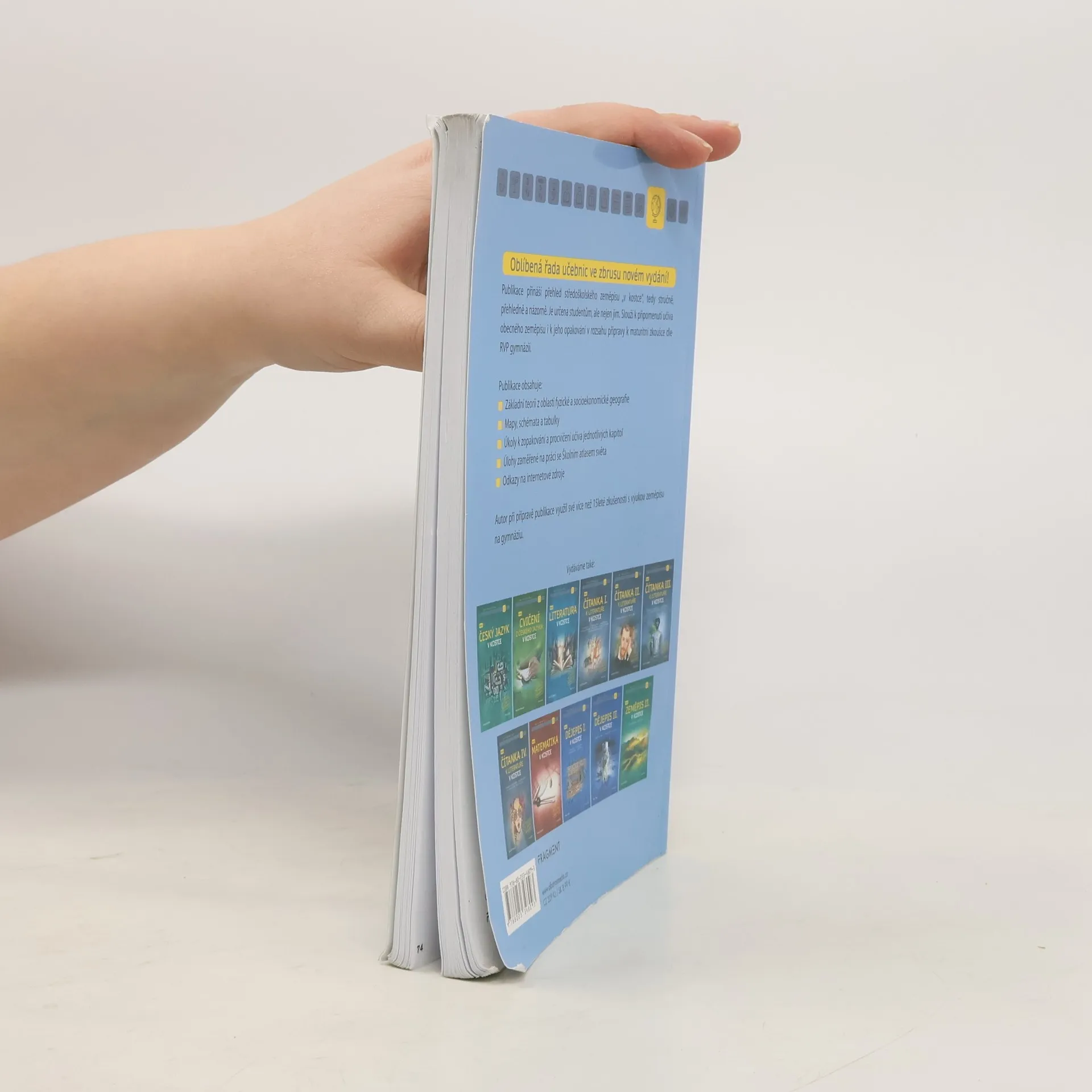 Oblíbená řada učebnic ve zbrusu novém vydání! Publikace přináší přehled středoškolského zeměpisu „v kostce“, tedy stručně, přehledně a názorně. Je určena studentům, ale nejen jim. Slouží k připomenutí učiva obecného zeměpisu i k jeho opakování v rozsahu přípravy k maturitní zkoušce dle RVP gymnázií. Publikace obsahuje: Základní teorii z oblasti fyzické a socioekonomické geografie Mapy, schémata a tabulky Úkoly k zopakování a procvičení učiva jednotlivých kapitol Úlohy zaměřené na práci se Školním atlasem světa Odkazy na internetové zdroje Autor při přípravě publikace využil své více než 15leté zkušenosti s výukou zeměpisu na gymnáziu.