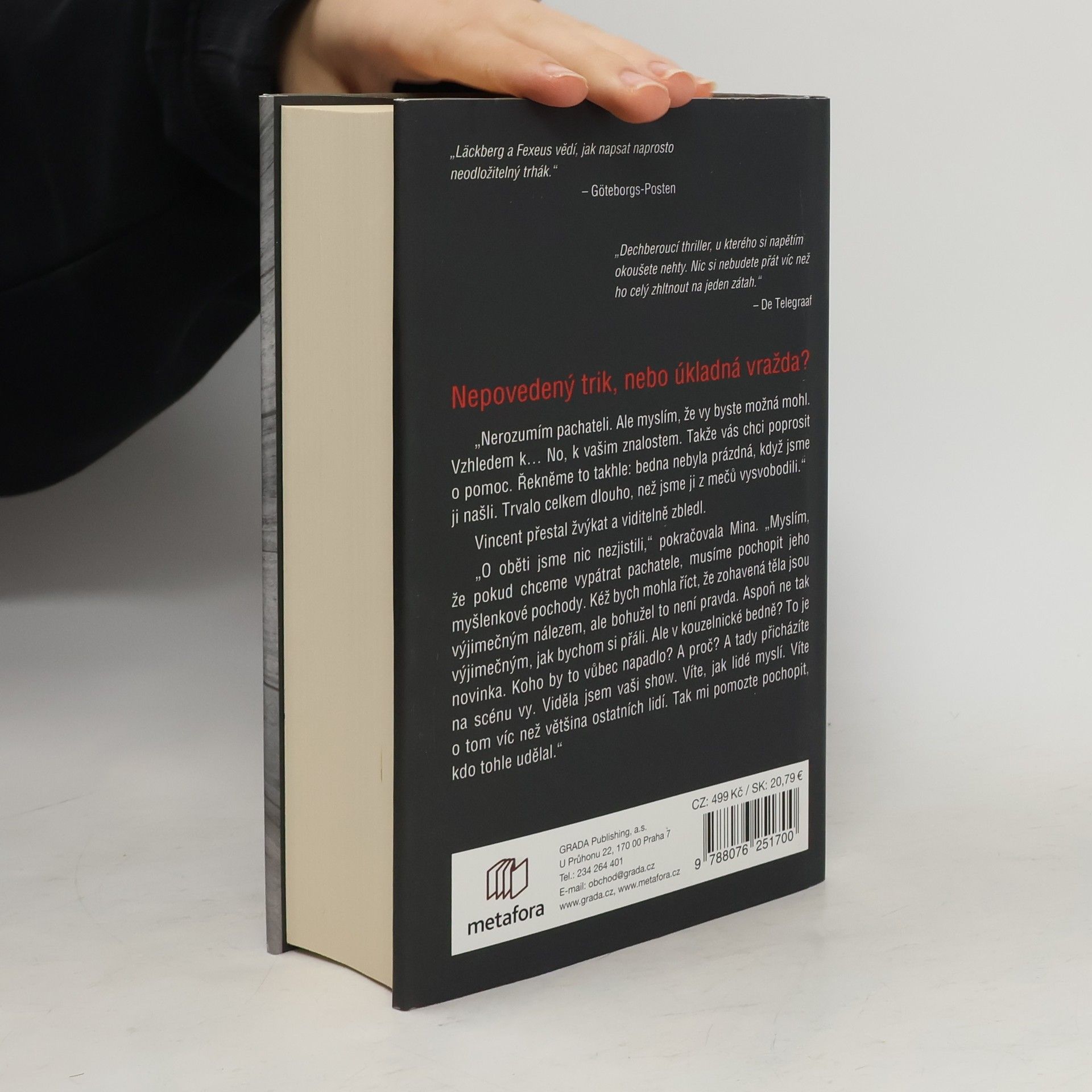 Jediný způsob, jak ho dopadnout, je být o krok před ním Před zábavním parkem ve Stockholmu objeví policie tělo ženy v bedně probodané meči. I když to na první pohled připomíná nepovedený kouzelnický trik, záhy je jasné, že se jedná o mimořádně brutální vraždu. Totožnost oběti však zůstává záhadou a případ se nehýbe z místa. Policistka Mina Dabiriová nakonec nevidí jinou možnost než požádat o pomoc Vincenta Waldera, mentalistu a odborníka na lidskou psychiku i magii. Ačkoli Vincent zpočátku není spoluprací nijak nadšený, probudí se v něm hluboko zasunuté vzpomínky. Spolu s Minou, která rovněž bojuje se svými démony, si během vyšetřování uvědomí, že pronásledují nelítostného sériového vraha. A ten jako by se snažil Vincentovi něco říct. Podaří se jim ho zastavit, než bude obětí víc?