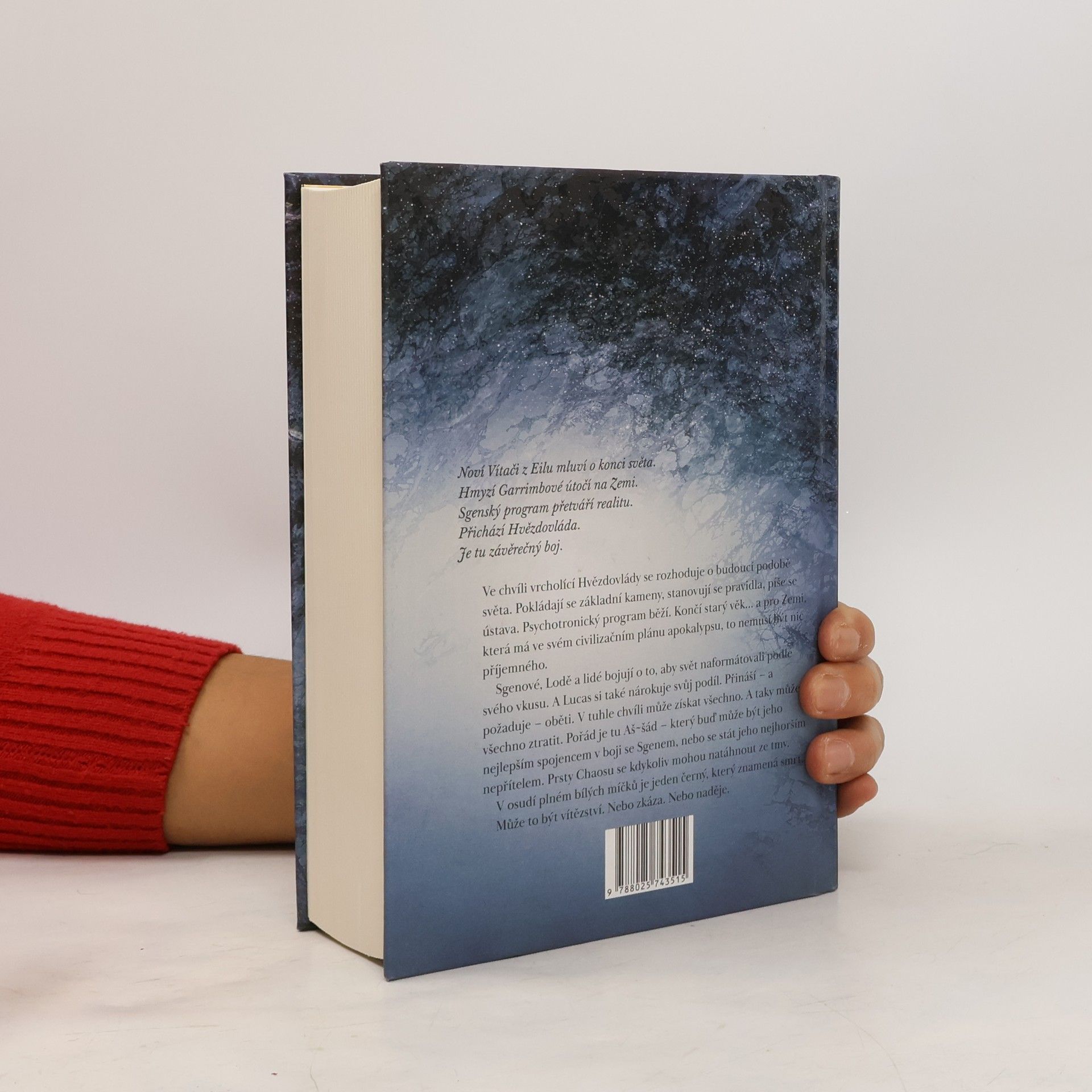 Velkolepé vyvrcholení nejobsáhlejší české sci-fi ságy Mycelium je zde. Intriky, psychotronika a krvavé oběti. Všechno míří právě sem. Tohle už je konec. Ve chvíli vrcholící Hvězdovlády se rozhoduje o budoucí podobě světa. Psychotronický program běží. Končí starý věk... a pro Zemi, která má ve svém civilizačním plánu apokalypsu, to nemusí být nic příjemného. Sgenové, Lodě a lidé bojují o to, aby svět naformátovali podle svého vkusu. A Lucas si také nárokuje svůj podíl. Přináší – a požaduje – oběti. V tuhle chvíli může získat všechno. A taky může všechno ztratit. Aš~šád může být jeho nejlepším spojencem v boji se Sgenem, nebo se stát jeho nejhorším nepřítelem. Prsty Chaosu se kdykoliv mohou natáhnout ze tmy. V osudí plném bílých míčků je jeden černý, který znamená smrt. Může to být vítězství. Nebo zkáza. Nebo naděje.