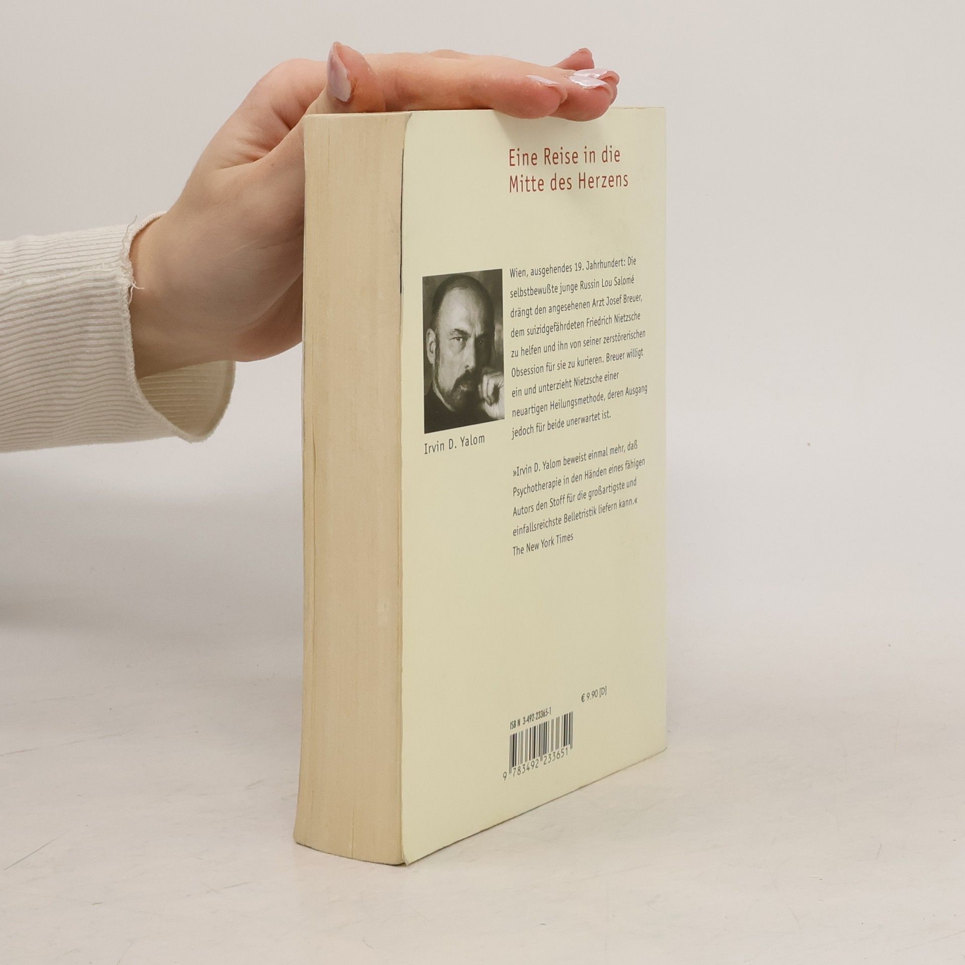 Eine Ménage à trois zwischen Lou Andreas Salomé, Nietzsche und der Psychoanalyse Das Wien des Fin de siècle: Die selbstbewusste junge Russin Lou Andreas Salomé drängt den angesehenen Arzt Josef Breuer, dem suizidgefährdeten Friedrich Nietzsche zu helfen und ihn von seiner zerstörerischen Obsession für sie zu kurieren. Breuer willigt ein und unterzieht Nietzsche einer neuartigen Heilungsmethode, deren Ausgang jedoch für beide unerwartet ist. Ausstattung: sechs s/w-Fotos
