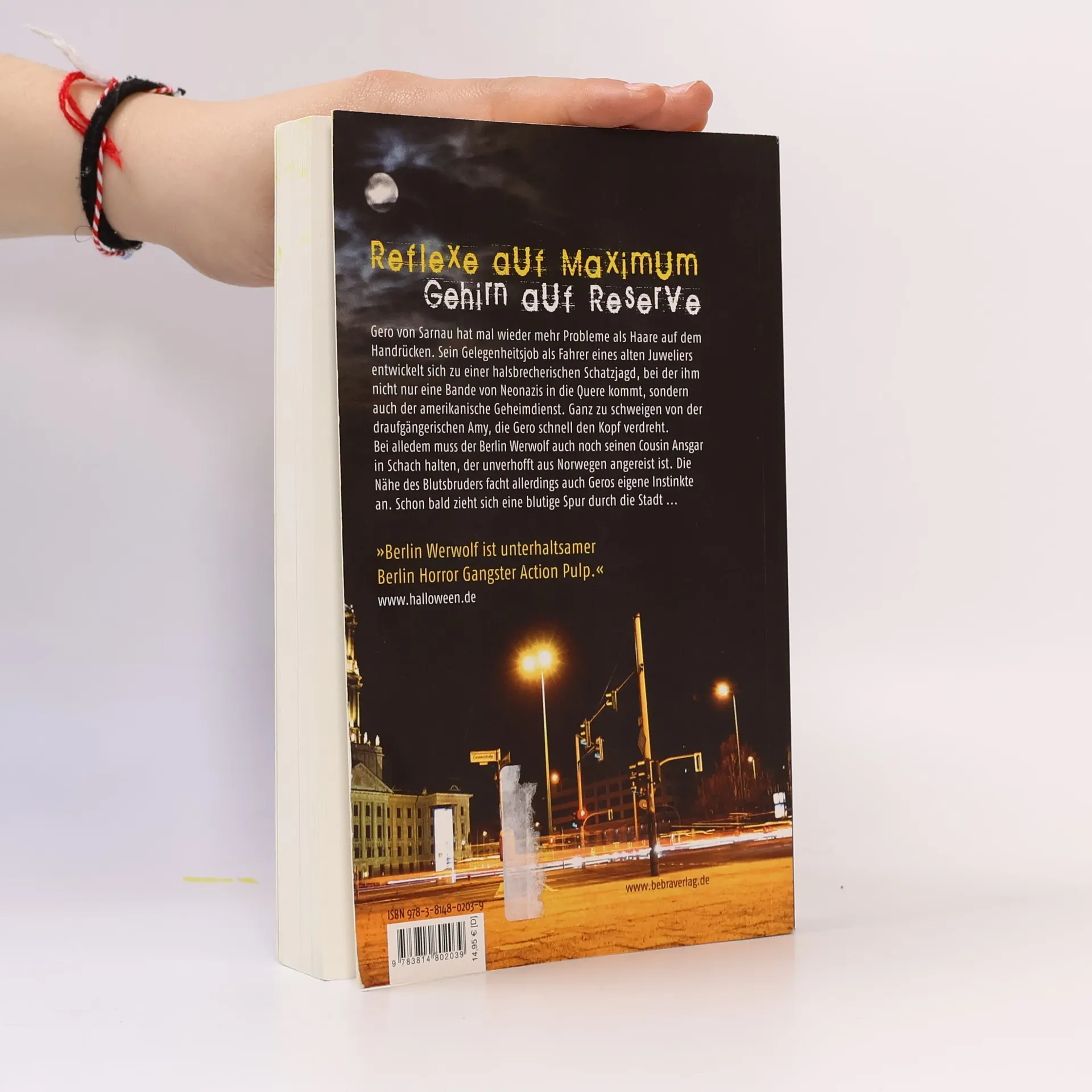 Gero von Sarnau hat mal wieder mehr Probleme als Haare auf dem Handrücken. Sein Gelegenheitsjob als Fahrer eines alten Juweliers entwickelt sich zu einer halsbrecherischen Schatzjagd, bei der ihm nicht nur eine Bande von Neonazis in die Quere kommt, sondern auch der amerikaische Geheimdienst. Ganz zu schweigen von der draufgängerischen Amy, die Gero schnell den Kopf verdreht. Bei alledem muss der Berliner Werwolf auch noch seinen Cousin Ansgar in Schach halten, der unverhofft aus Norwegen angereist ist. Die Nähe des Blutsbruders facht allerdings auch Geros eigene Instinkte an. Schon bald zieht sich eine blutige Spur durch die Stadt.