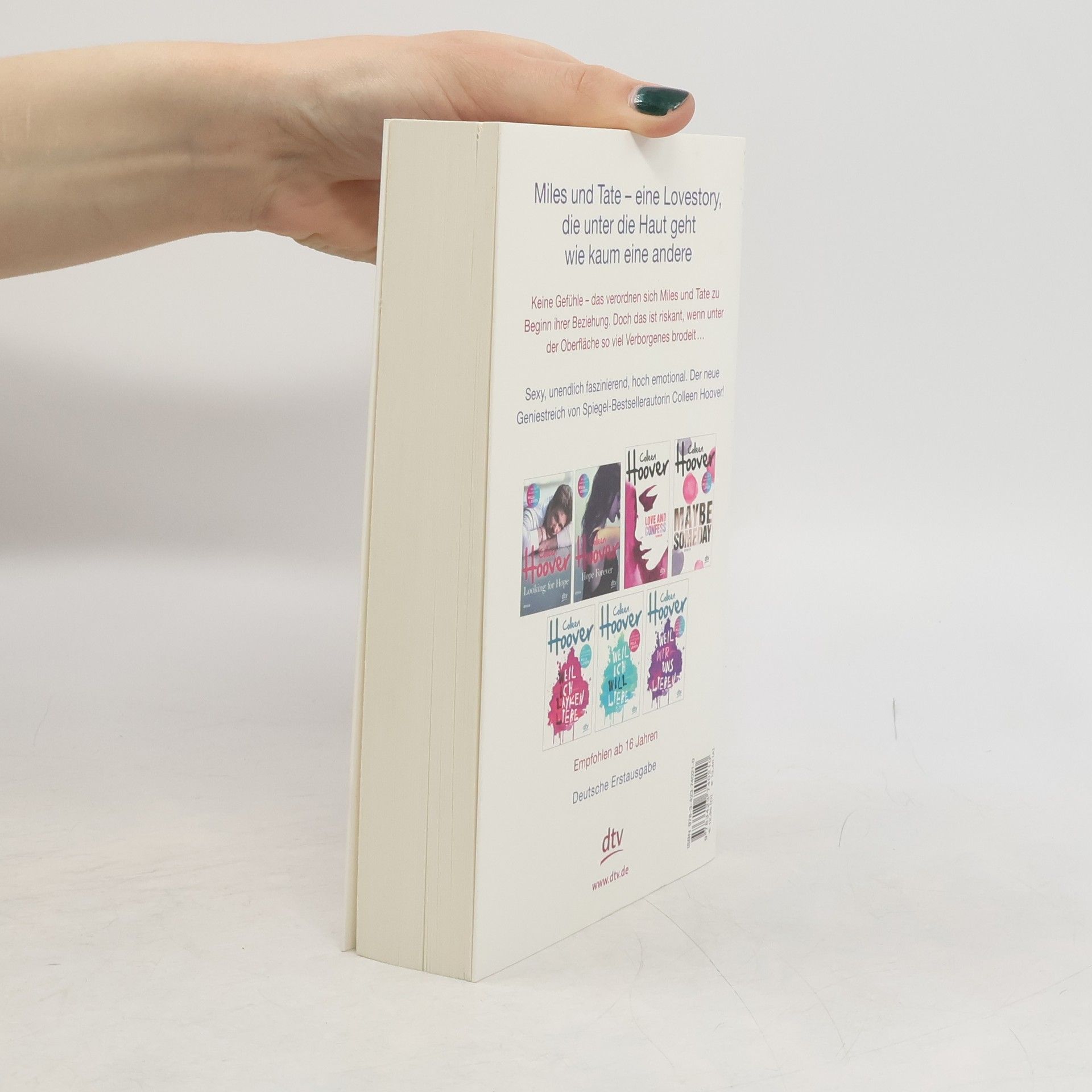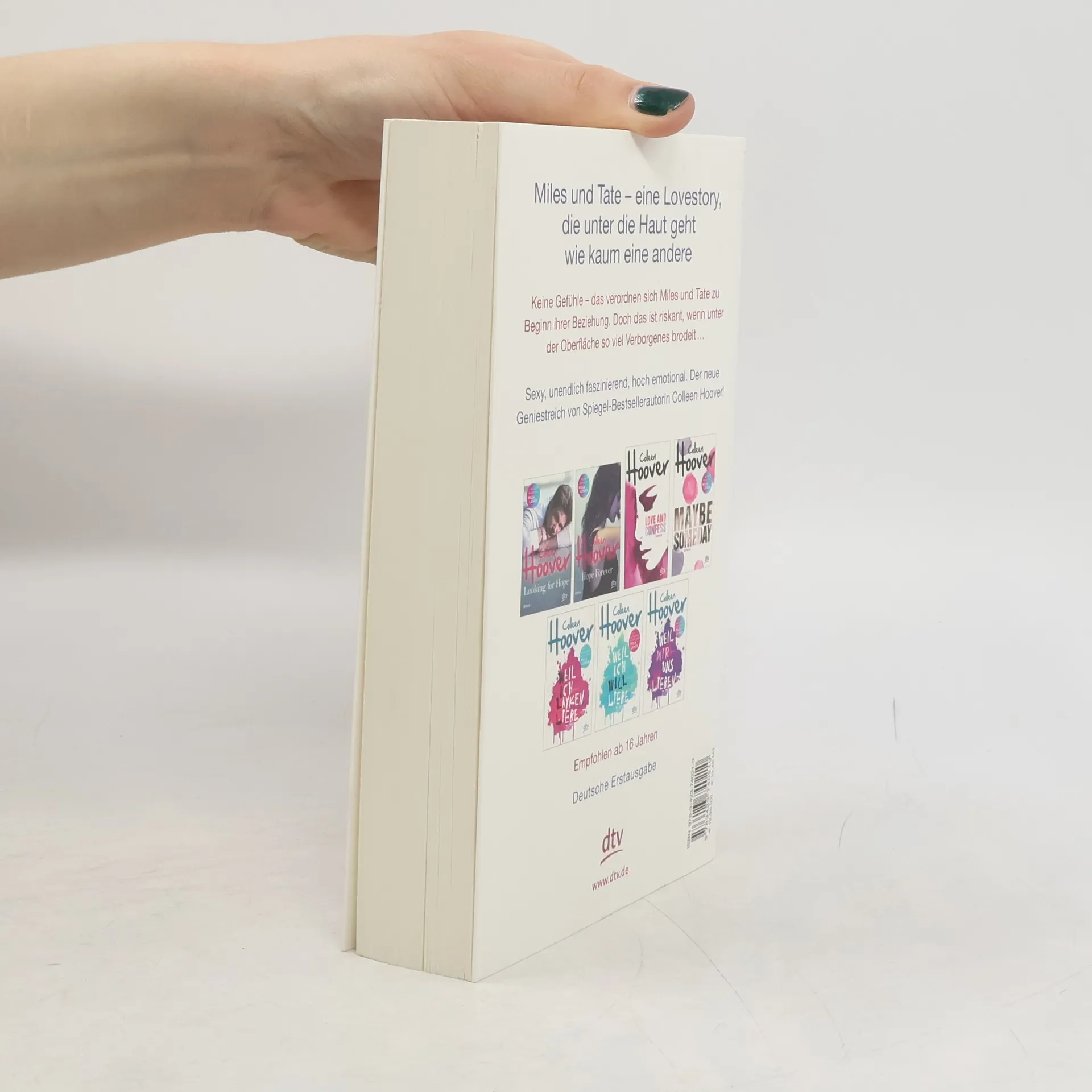 Zurück ins Leben lieben – der neue Geniestreich von Colleen Hoover  Als Tate zum Studium nach San Francisco zieht, stolpert sie dort gleich am ersten Abend über Miles Archer: Miles, der Freund ihres Bruders, der niemals lächelt, meistens schweigt und offensichtlich eine schwere Bürde mit sich herumträgt. Miles, der so attraktiv ist, dass Tate bei seinem Anblick Herzflattern und weiche Knie bekommt. Miles, der, wie er selbst zugibt, seit sechs Jahren keine Frau mehr geküsst hat. Miles, von dem Tate sich besser fernhalten sollte, wenn ihr ihr Gefühlsleben lieb ist …