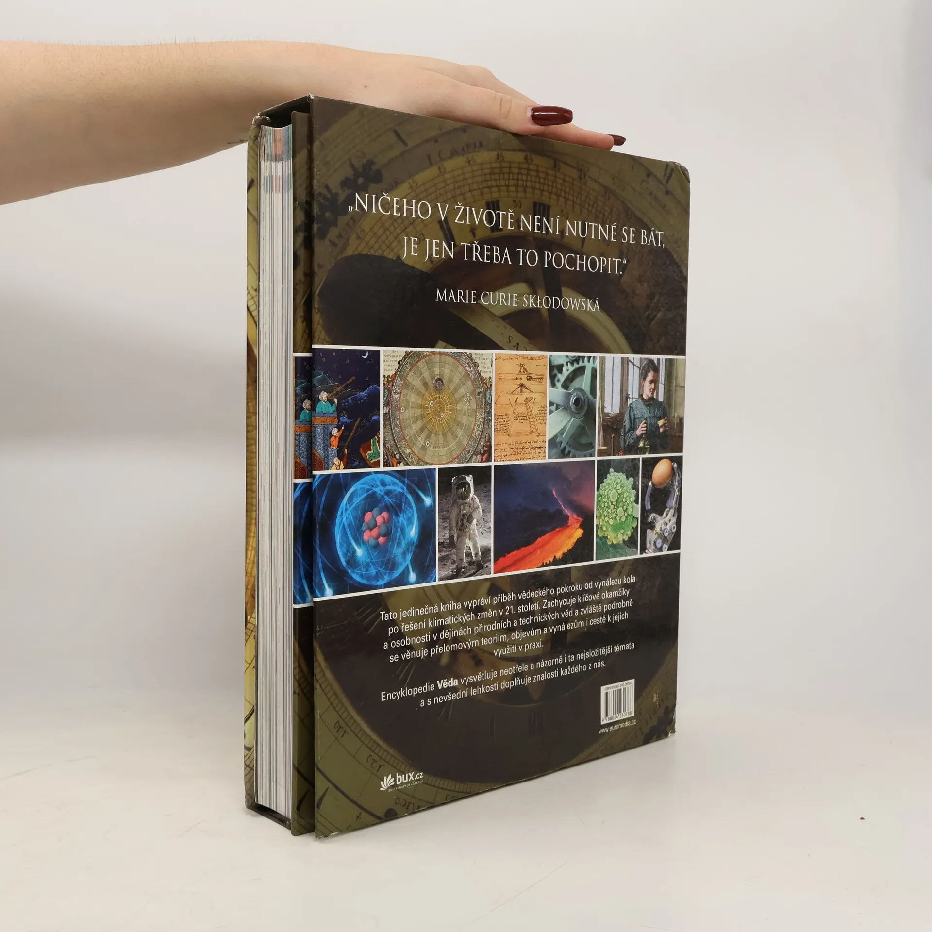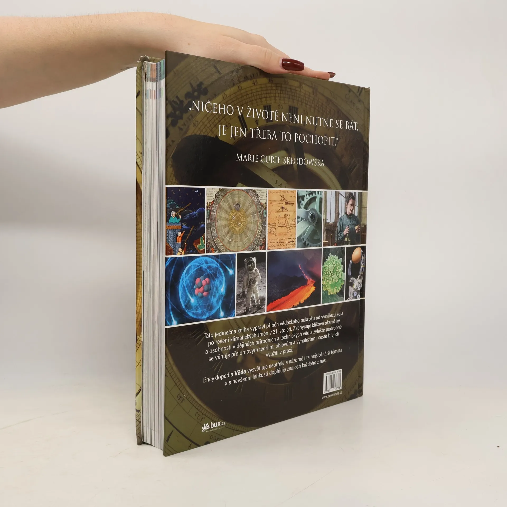 Tato jedinečná kniha vypráví příběh vědeckého pokroku od vynálezu kola až po řešení klimatických změn ve 21. století. Zachycuje všechny klíčové okamžiky nových objevů a ukazuje, jak lidé a jejich myšlenky a vynálezy měnili náš svět. Encyklopedie Věda, vybavená nádhernými fotografiemi a názornými ilustracemi, představuje i ta nejsložitější témata jednoduchým a srozumitelným způsobem, zpřístupňujícím tak lidské vědění čtenářům všech věkových kategorií.