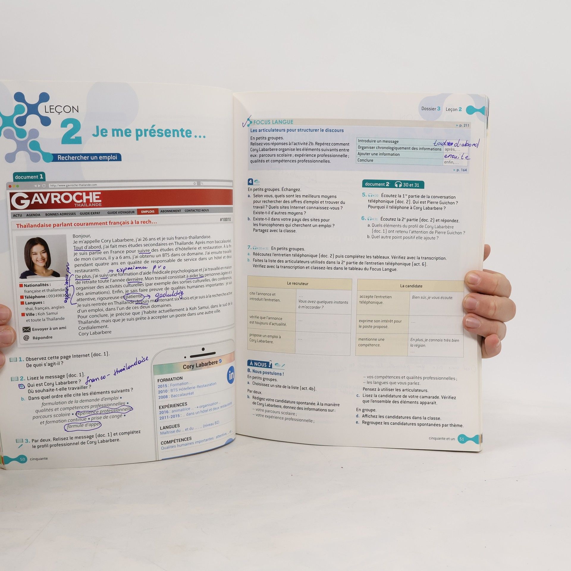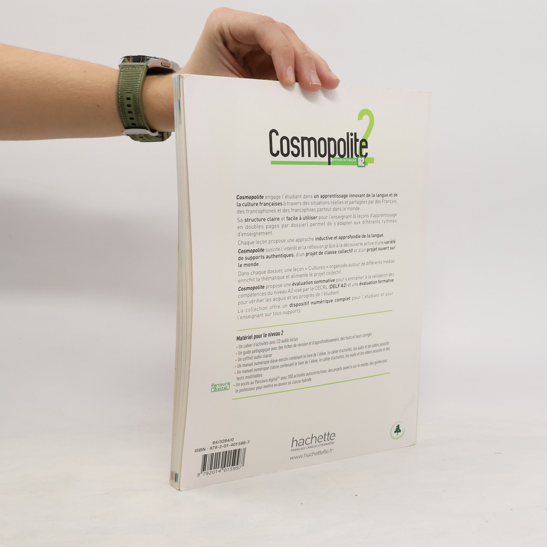 Structure : › 1 dossier « Découverte » et 8 dossiers comprenant : 1 ouverture de dossier active 6 leçons d'apprentissage 1 leçon « Culture » 1 page « Projets » 1 page « DELF » › Des activités d'entraînement et des ressources pour l'apprenant a la fin du livre : Des activités d'entraînement (grammaire, lexique et phonétique) Des expressions utiles pour aider a réaliser la tâche finale Une épreuve complete DELF A2 Un précis de phonétique avec ses activités Un précis grammatical Un tableau de conjugaisons Des cartes de France, de l’Europe et un plan de Paris › Un lexique thématique et les transcriptions dans un livret encarté. Descriptif : Un apprentissage innovant a travers des situations réelles et partagées par des Français, des francophones et des francophiles partout dans le monde Une structure claire et facile a utiliser pour l’enseignant (leçons d’apprentissage en doubles pages) pour s'adapter aux différents rythmes d'apprentissage Une approche inductive et approfondie de la langue Une découverte active d’une variété de supports authentiques , un projet de classe collectif et un projet ouvert sur le monde Une leçon « Cultures » organisée autour de différents médias pour enrichir la thématique et alimenter le projet collectif