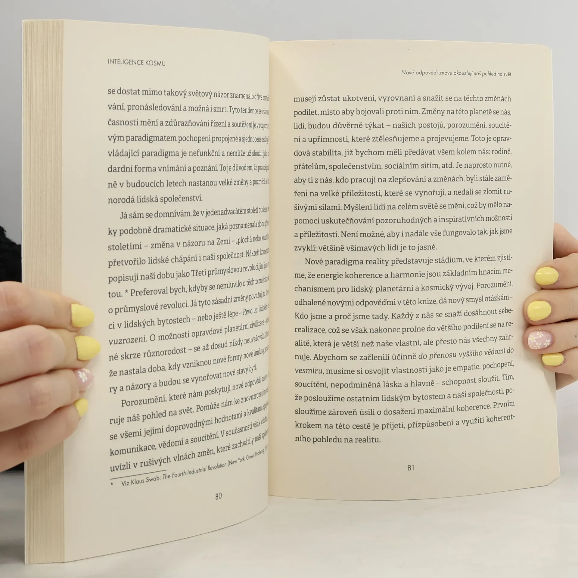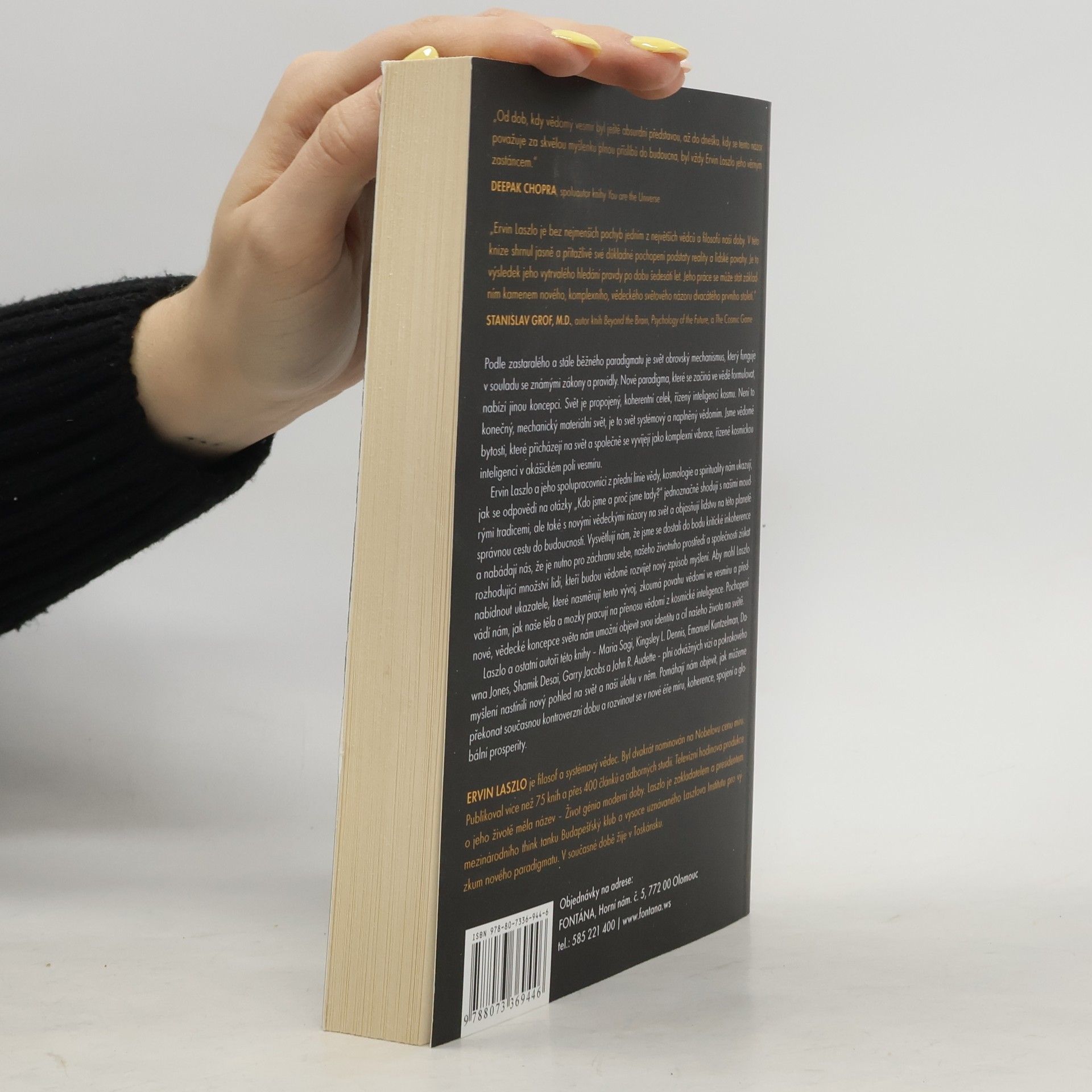 Podle zastaralého paradigmatu je svět obrovský mechanismus fungující podle známých zákonů. Nové paradigma však představuje jinou koncepci: svět jako propojený, koherentní celek řízený inteligencí kosmu. Není to konečný, mechanický materiální svět, ale systémový svět naplněný vědomím. Jsme vědomé bytosti, vyvíjející se jako komplexní vibrace v akášickém poli vesmíru. Ervin Laszlo a jeho spolupracovníci z oblasti vědy, kosmologie a spirituality ukazují, jak odpovědi na otázky "Kdo jsme a proč jsme tady?" souvisejí s moudrými tradicemi i novými vědeckými názory, a objasňují lidstvu správnou cestu do budoucnosti. Upozorňují na kritickou inkoherenci a zdůrazňují potřebu získat rozhodující množství lidí, kteří budou vědomě rozvíjet nový způsob myšlení pro záchranu sebe, životního prostředí a společnosti. Laszlo zkoumá povahu vědomí ve vesmíru a ukazuje, jak naše těla a mozky přenášejí vědomí z kosmické inteligence. Pochopení nové vědecké koncepce nám umožní objevit naši identitu a cíl života. Spoluautoři, jako Maria Sagi a Kingsley L. Dennis, přinášejí odvážné vize a pokrokové myšlení, které nám pomáhají překonat současnou kontroverzní dobu a rozvinout se v nové éře míru, koherence a globální prosperity.