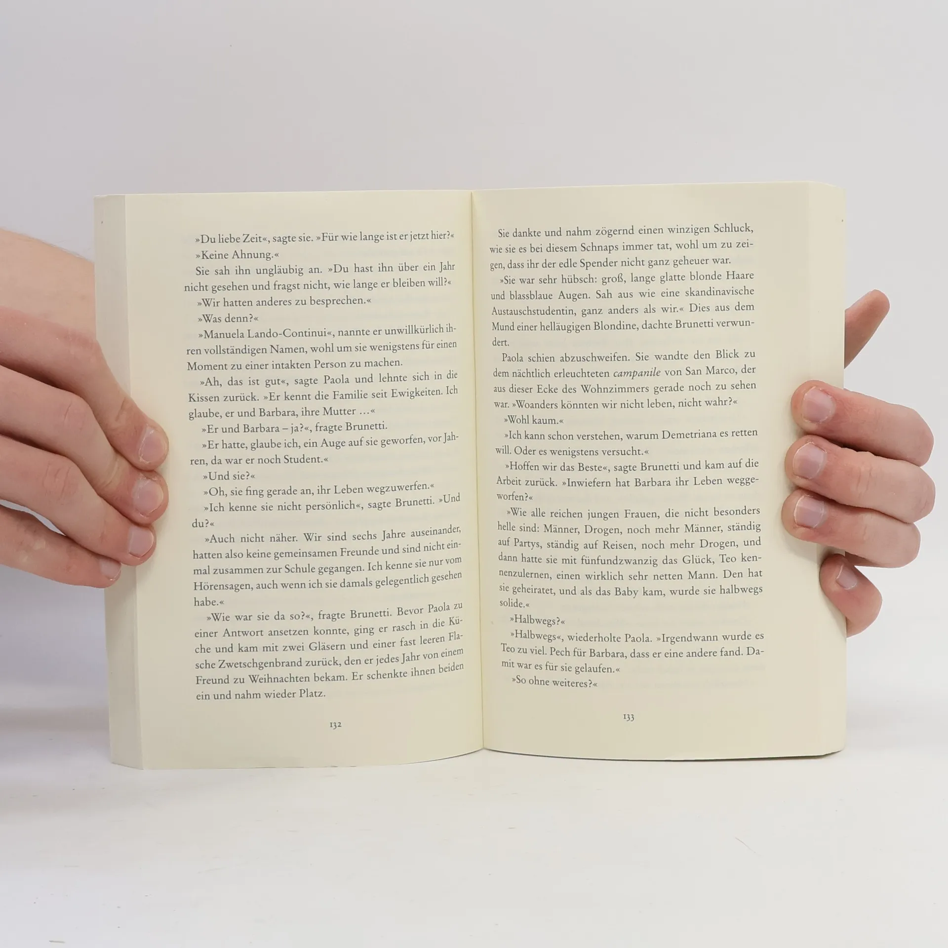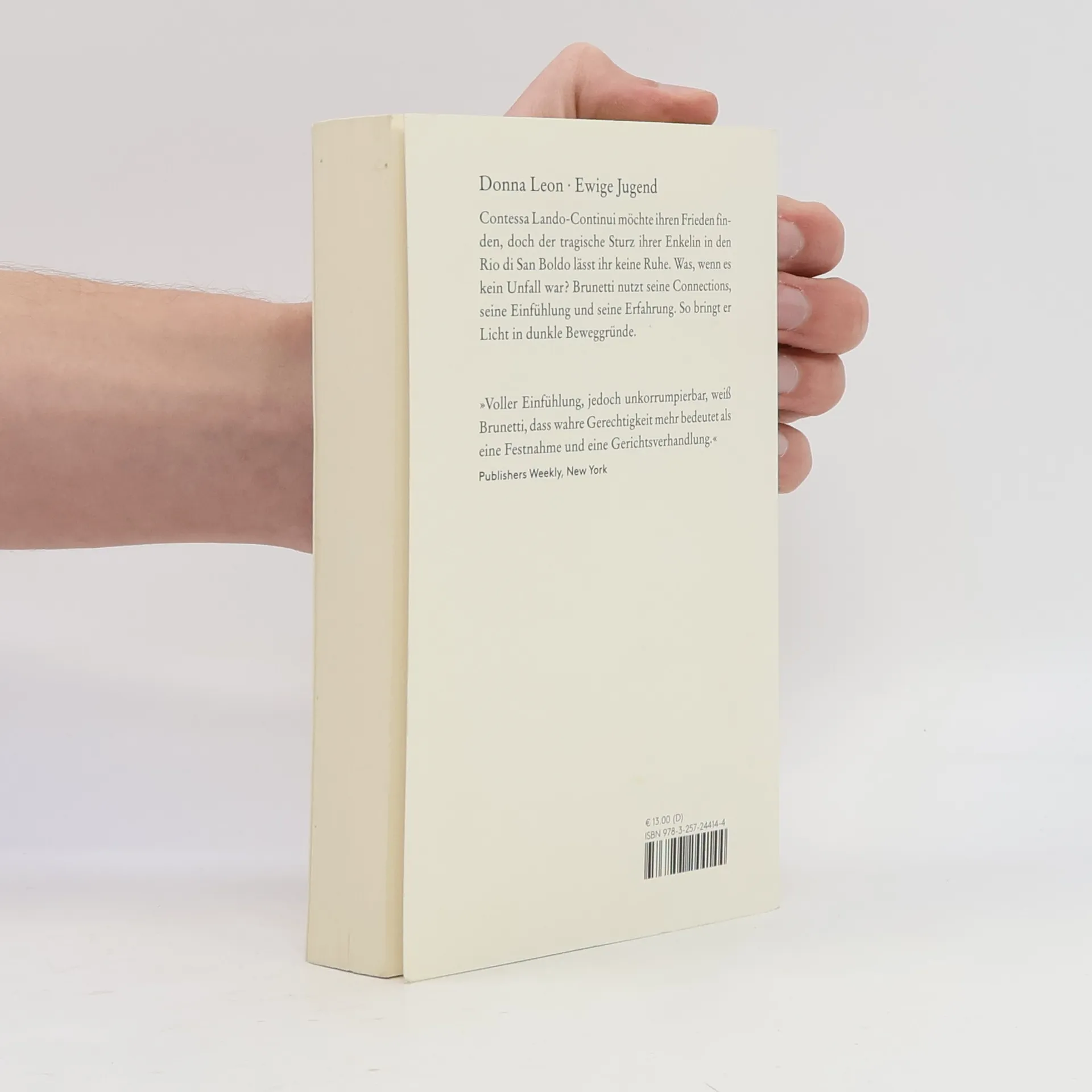 Brunettis Bravourstück. Der Commissario ermittelt in den Tiefen der Erinnerung: Contessa Lando-Continui möchte ihren Frieden finden, doch der tragische Sturz ihrer Enkelin in den Rio di San Boldo lässt ihr keine Ruhe. Was, wenn es kein Unfall war? Brunetti nutzt seine Connections, seine Einfühlung und seine Erfahrung. Der Jubiläumsfall.