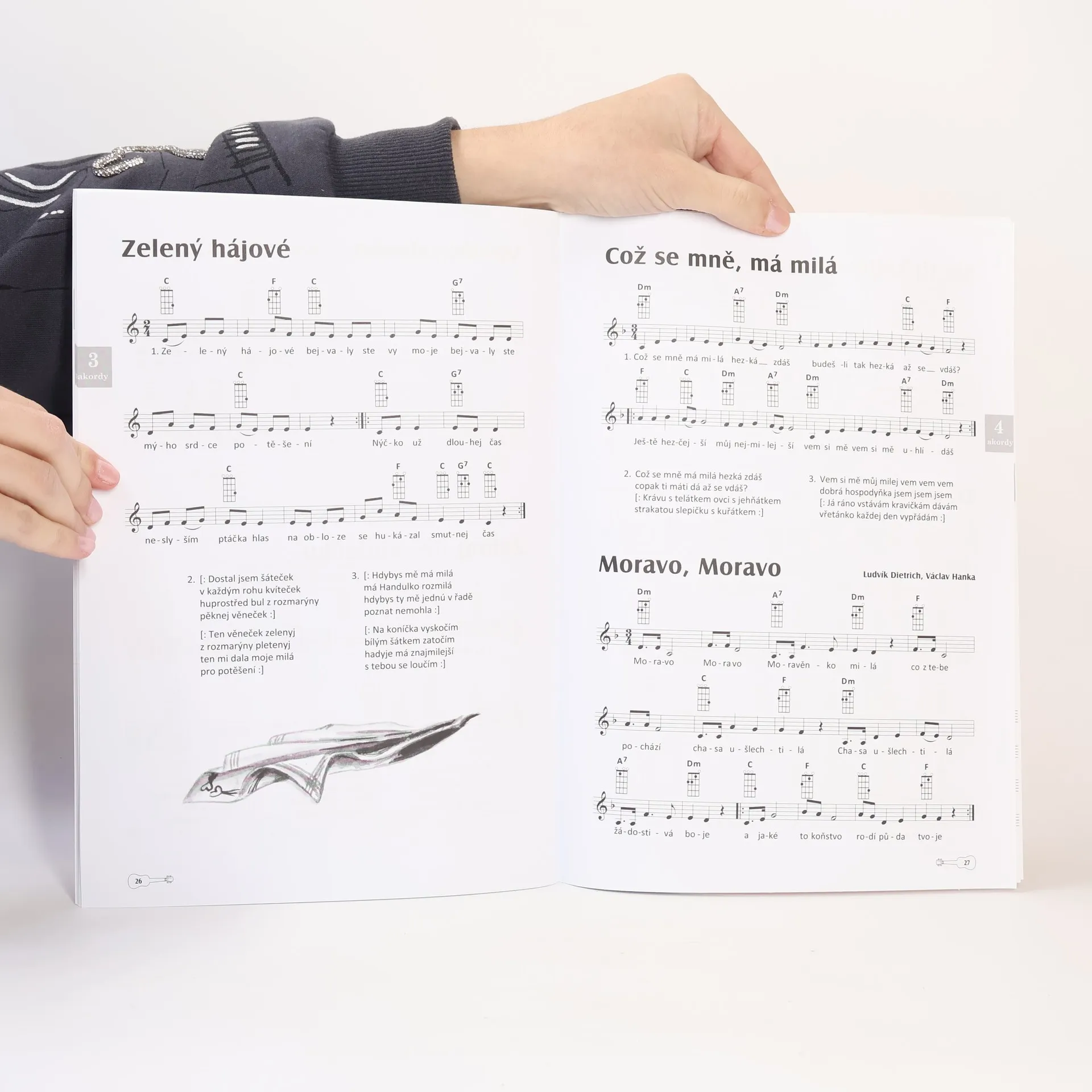 Lidovky a další písně pro ukulele na 2–5 akordů, výroba hudeb.nástrojů G+W
