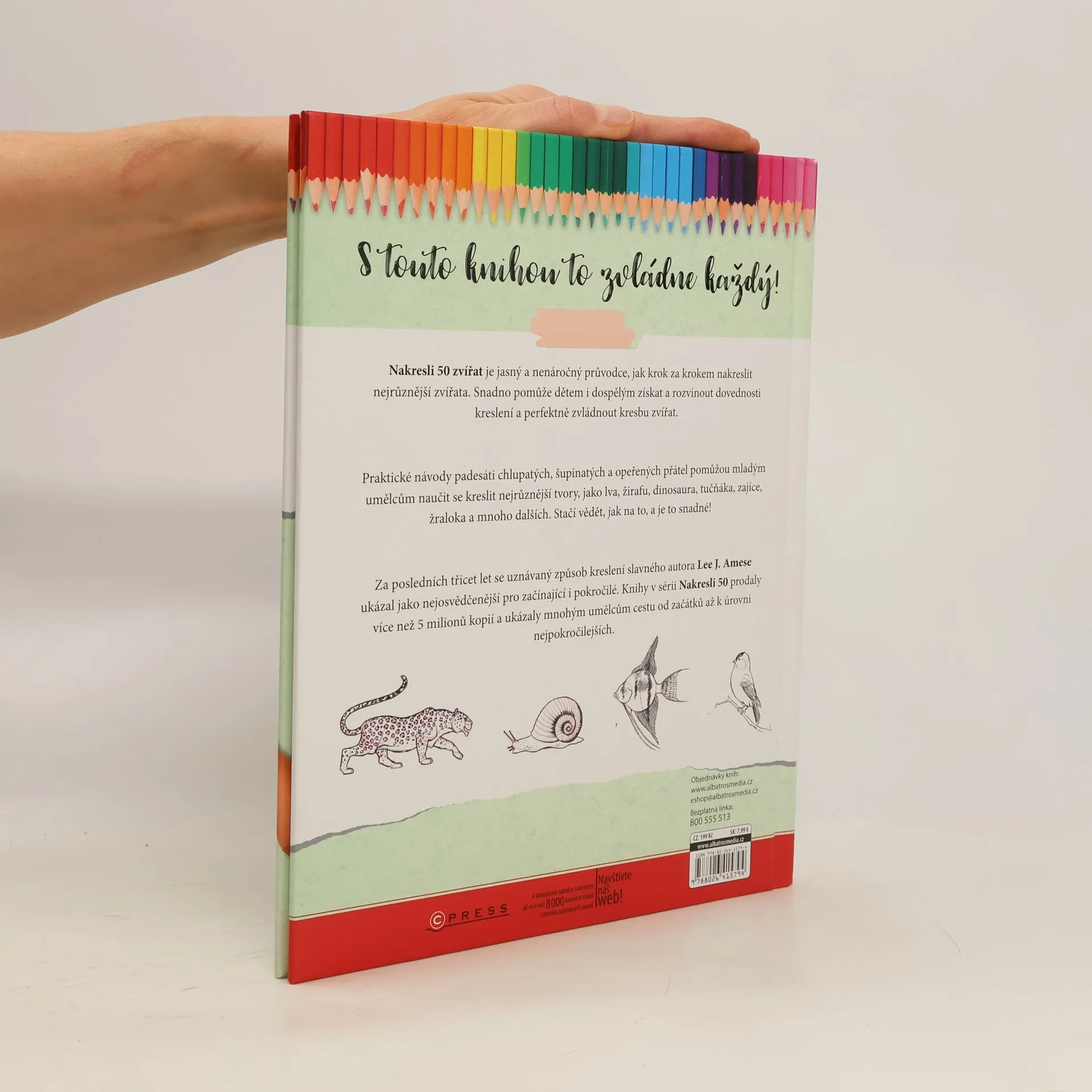 Nakresli 50 zvířat je průvodce, jak snadno nakreslit 50 zvířat krok za krokem. Pomůže dětem i dospělým snadno a jednoduše zvládnout kresbu známých zvířat, např. lva, žirafy, dinosaura, tučňáka, králíka, žraloka a dalších.
