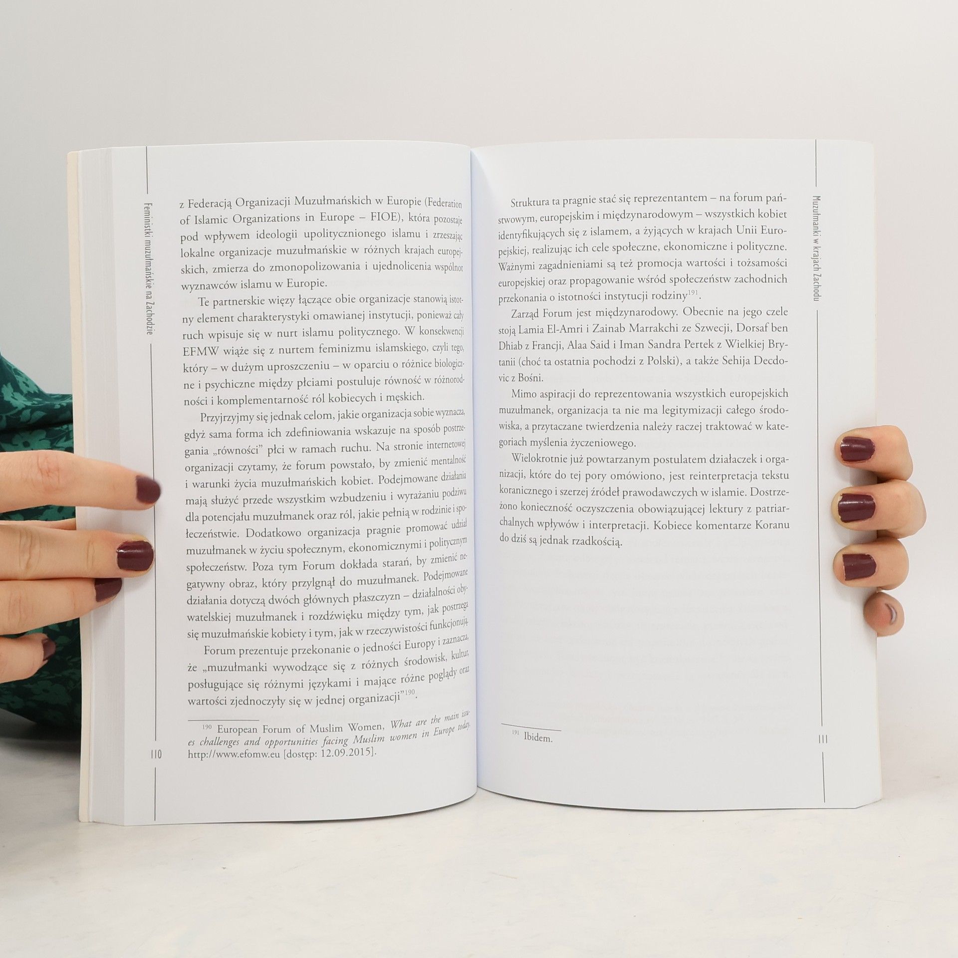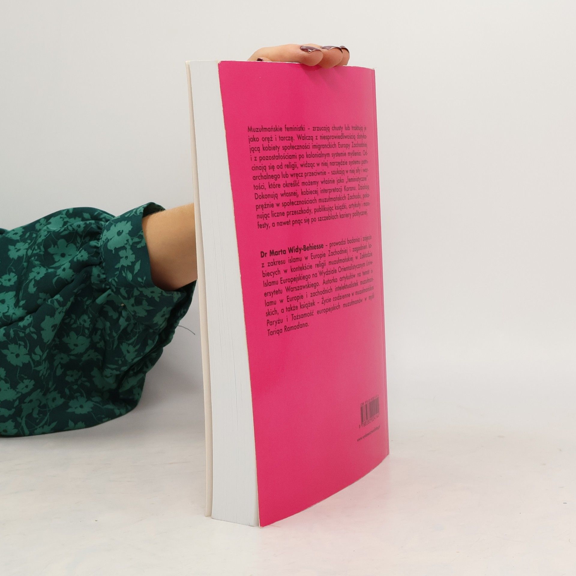 Muzułmańskie feministki – zrzucają chusty lub traktują je jako oręż i tarczę. Walczą z niesprawiedliwością dotykającą kobiety społeczności imigranckich Europy Zachodniej i z pozostałościami po kolonialnym systemie myślenia. Odcinają się od religii, widząc w niej narzędzie systemu patriarchalnego lub wręcz przeciwnie – szukają w niej siły i wartości, które określić możemy właśnie jako „feministyczne”. Dokonują własnej, kobiecej interpretacji Koranu. Działają prężnie w społecznościach muzułmańskich Zachodu, pokonując liczne przeszkody, publikując książki, artykuły i manifesty, a nawet pnąc się po szczeblach kariery politycznej. Dr Marta Widy-Behiesse – prowadzi badania i zajęcia z zakresu islamu w Europie Zachodniej i zagadnień kobiecych w kontekście religii muzułmańskiej w Zakładzie Islamu Europejskiego na Wydziale Orientalistycznym Uniwersytetu Warszawskiego. Autorka artykułów na temat islamu w Europie i zachodnich intelektualistek muzułmańskich, a także książek – Życie codzienne w muzułmańskim Paryżu i Tożsamość europejskich muzułmanów w myśli Tariqa Ramadana.