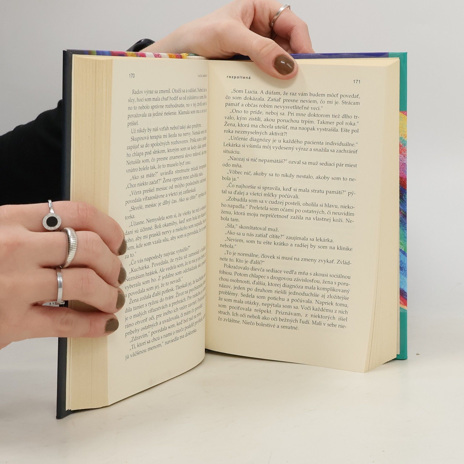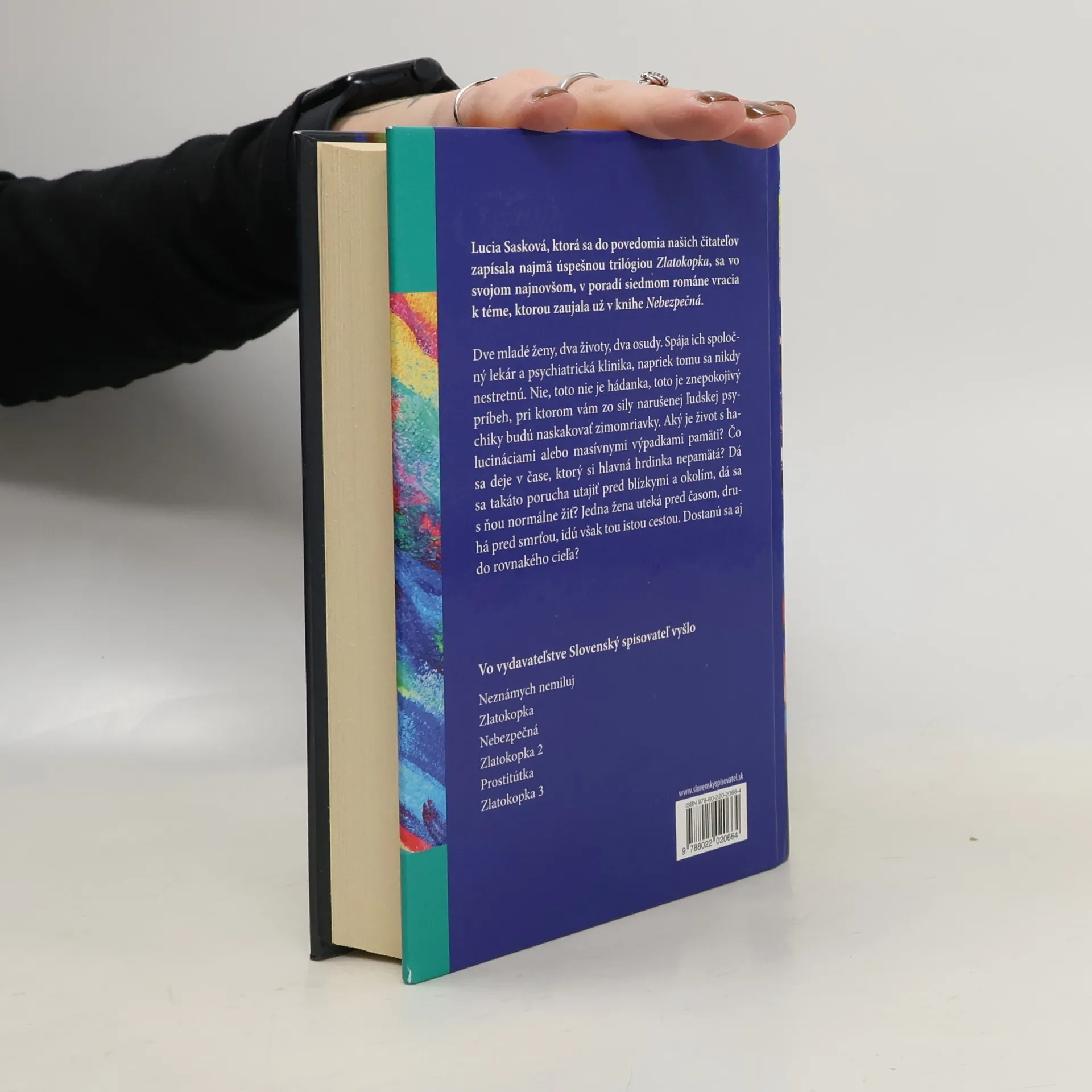 Autorka, ktorá sa do povedomia čitateľov zapísala najmä úspešnou trilógiou Zlatokopka, sa vo svojom najnovšom, v poradí siedmom románe vracia k téme, ktorou zaujala už v knihe Nebezpečná. Dve mladé ženy, dva životy, dva osudy. Spája ich spoločný lekár a psychiatrická klinika, napriek tomu sa nikdy nestretnú. Nie, toto nie je hádanka,toto je znepokojivý príbeh, pri ktorom vám zo sily narušenej ľudskej psychiky budú naskakovať zimomriavky. Aký je živots halucináciami alebo masívnymi výpadkami pamäti? Čo sa deje v čase, ktorý si hlavné hrdinky nepamätajú? Dá sa takáto porucha utajiť pred blízkymi a okolím, dá sa s ňou normálne žiť? Jedna žena uteká pred pravdou, druhá pred smrťou, idú však tou istou cestou. Dostanú sa do rovnakého cieľa?