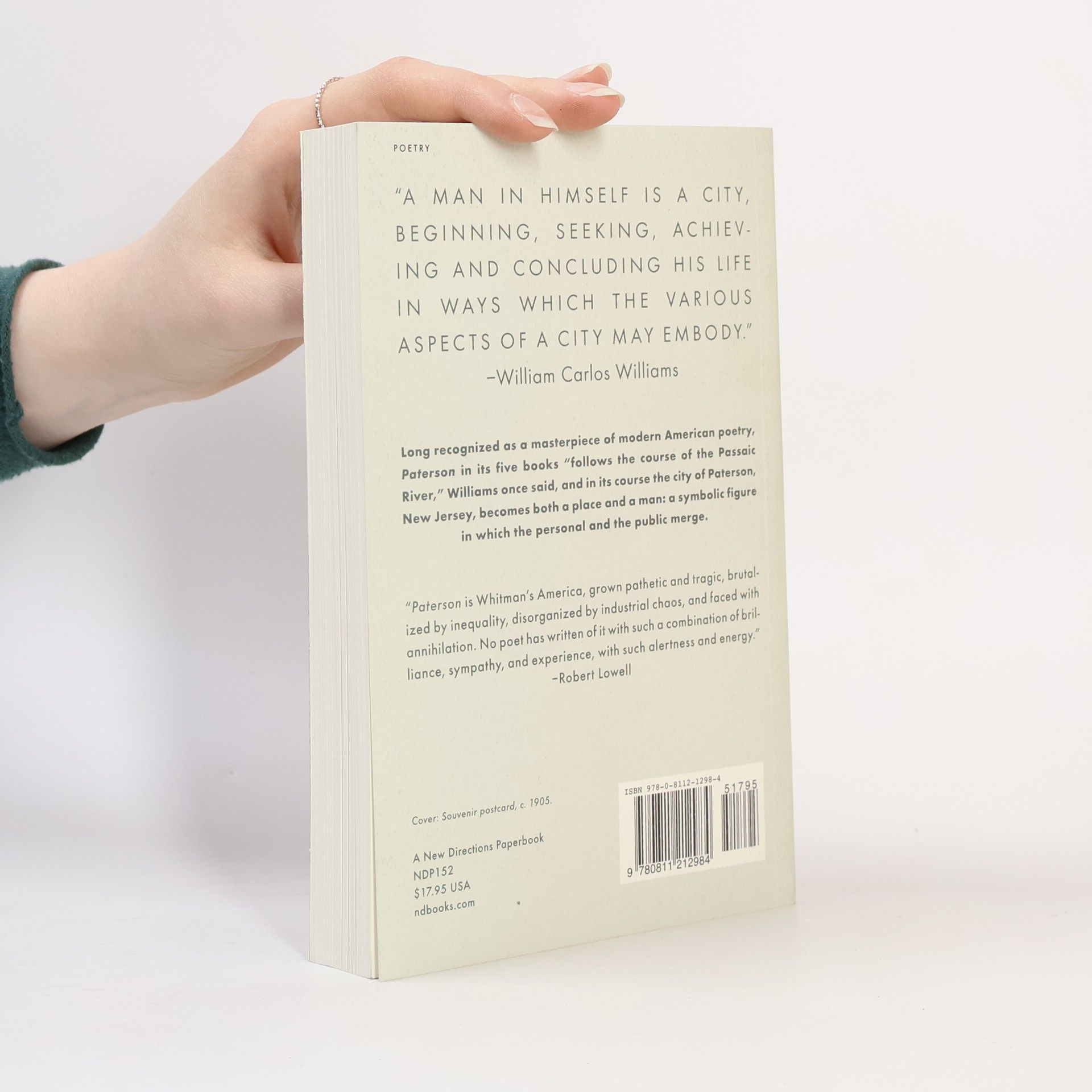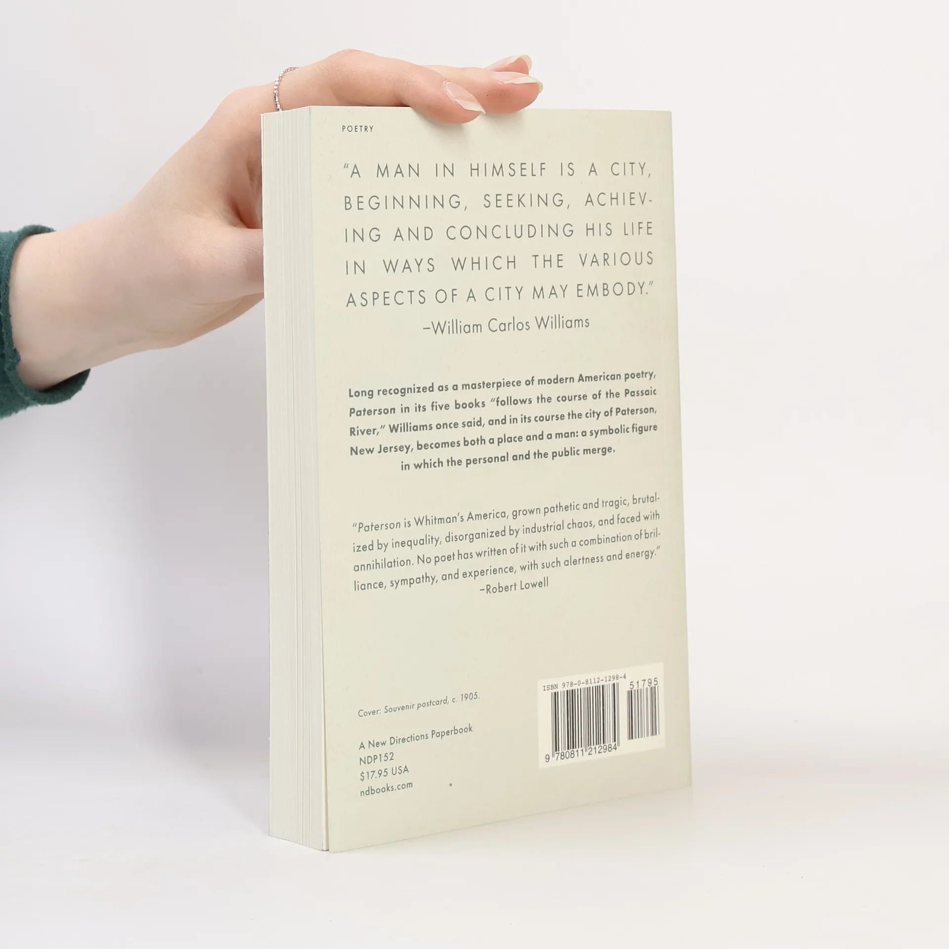 Paterson is both a place--the New Jersey city in whom the person (the poet's own life) and the public (the history of the region) are combined. Originally four books (published individually between 1946 and 1951), the structure of Paterson (in Dr. Williams' words) "follows the course of teh Passaic River" from above the great falls to its entrance into the sea. The unexpected Book Five, published in 1958, affirms the triumphant life of the imagination, in spite of age and death. This revised edition has been meticulously re-edited by Christopher MacGowan, who has supplied a wealth of notes and explanatory material.
