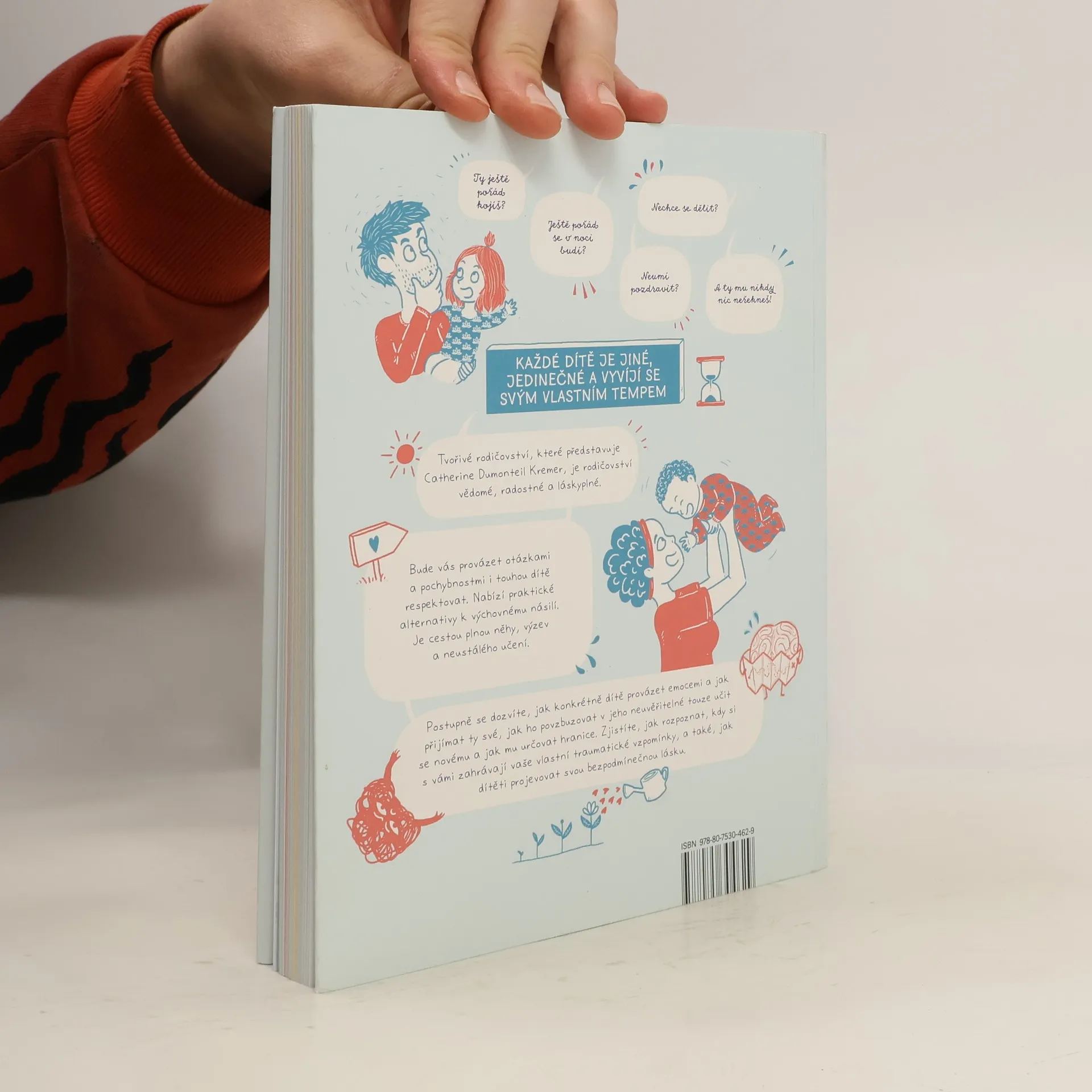 Tvořivé rodičovství, které představuje Catherine Dumonteil Kremer, je rodičovství vědomé, radostné a láskyplné. Bude vás provázet otázkami a pochybnostmi i touhou dítě respektovat. Nabízí praktické alternativy k výchovnému násilí. Je cestou plnou něhy, výzev a neustálého učení. Postupně se dozvíte, jak konkrétně dítě provázet emocemi a jak přijímat ty své, jak ho povzbuzovat v jeho neuvěřitelné touze učit se novému a jak mu určovat hranice. Zjistíte, jak rozpoznat, kdy si s vámi zahrávají vaše vlastní traumatické vzpomínky, a také, jak dítěti projevovat svou bezpodmínečnou lásku.