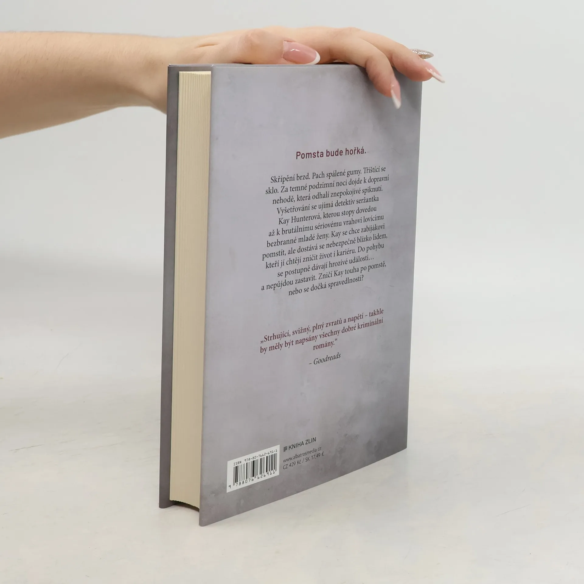 Další detektivní případ seržantky Kay Hunterové. Skřípění brzd. Pach spálené gumy. Tříštící se sklo. Za temné podzimní noci dojde k dopravní nehodě, která odhalí znepokojivé spiknutí. Vyšetřování se ujímá detektiv seržantka Kay Hunterová, kterou stopy dovedou až k brutálnímu sériovému vrahovi lovícímu bezbranné mladé ženy. Kay se chce zabijákovi pomstít, ale dostává se nebezpečně blízko lidem, kteří jí chtějí zničit život i kariéru. Do pohybu se postupně dávají hrozivé události a nepůjdou zastavit. Zničí Kay touha po pomstě, nebo se dočká spravedlnosti? Nakladatelská anotace.