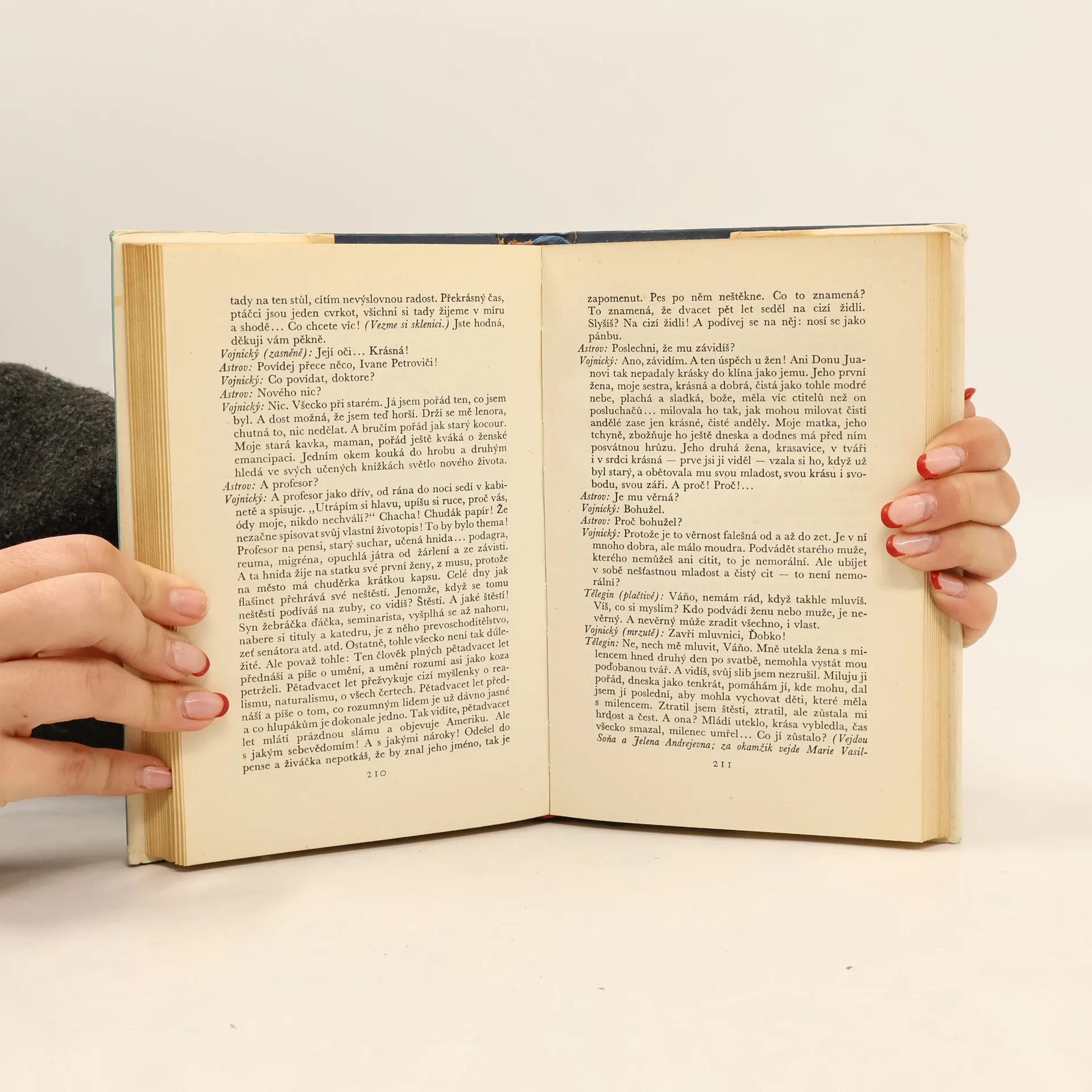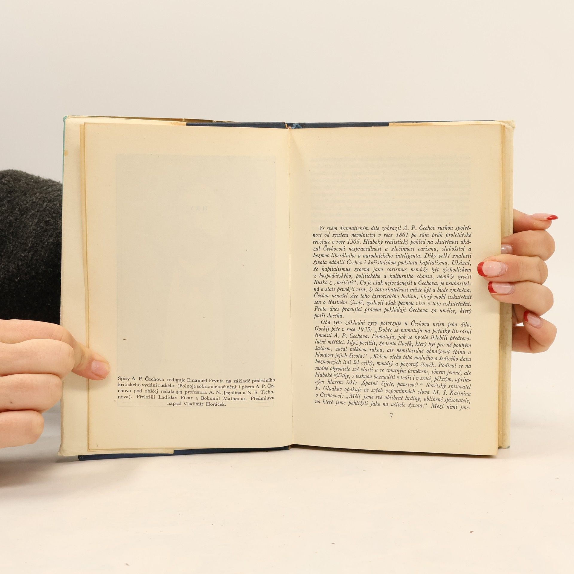 Svazek obsahuje spisovatelova hlavní dramatická díla, která sloučením tragických i humoristických rysů a kritikou společenského řádu znamenají dovršení realismu v ruském dramatě, podávají všestrannou psychologickou charakteristiku ruské společnosti od zrušení nevolnictví r. 1861 až do r.1905 a současně obraz Čechovova vývoje uměleckého a politického. Obsah: Na hlavní silnici, Labutí píseň, Ivanov, Jubileum, Racek, Strýček Váňa, Tři sestry, Višňový sad. 1. vydání.