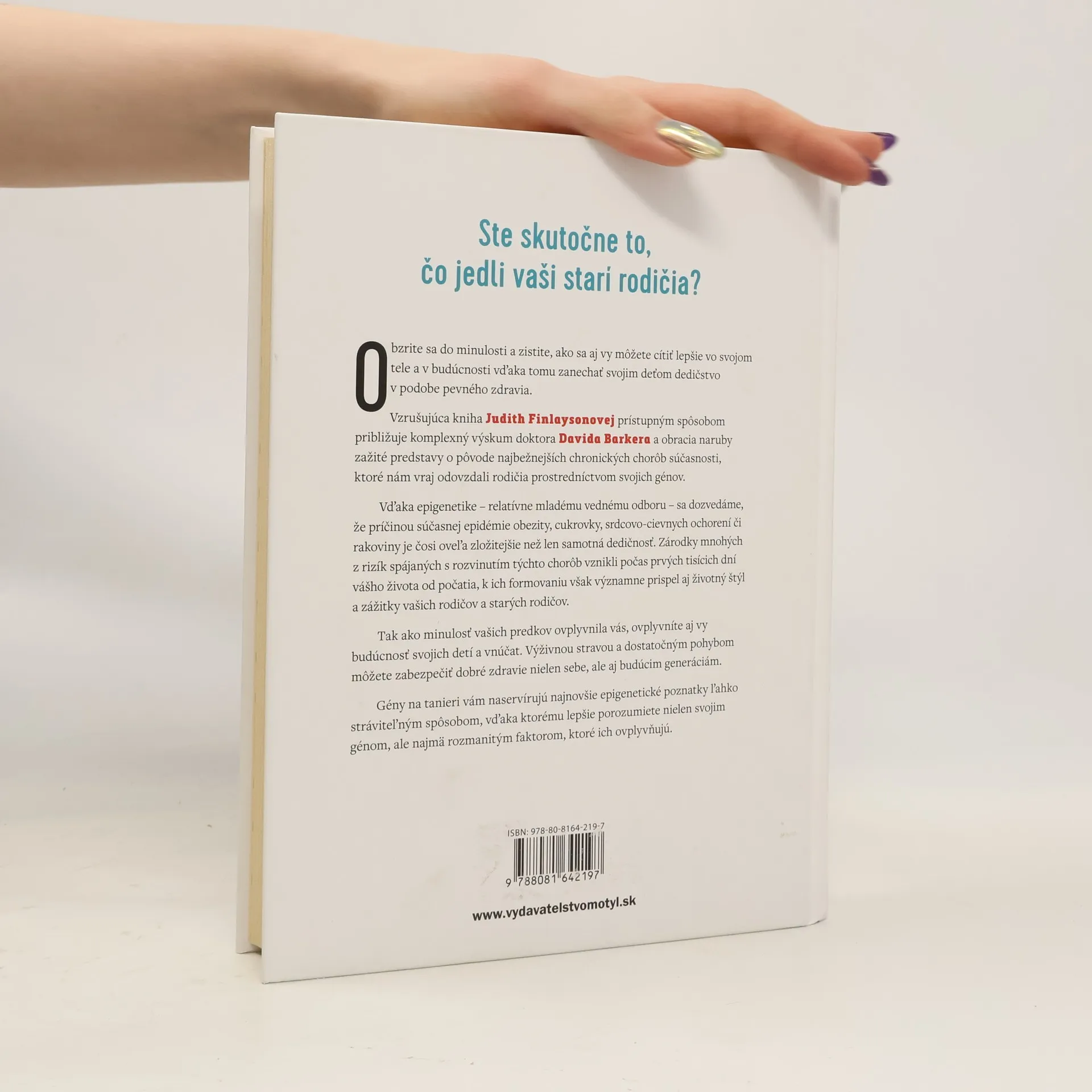 Ste skutočne to, čo jedli vaši starí rodičia? Obzrite sa do minulosti a zistite, ako sa aj vy môžete cítiť lepšie vo svojom tele a v budúcnosti vďaka tomu zanechať svojim deťom dedičstvo v podobe pevného zdravia. Vzrušujúca kniha Judith Finlaysonovej prístupným spôsobom približuje komplexný výskum doktora Davida Barkera a obracia naruby zažité predstavy o pôvode najbežnejších chronických chorôb súčasnosti, ktoré nám vraj odovzdali rodičia prostredníctvom svojich génov.Vďaka epigenetike - relatívne mladému vednému odboru - sa dozvedáme, že príčinou súčasnej epidémie obezity, cukrovky, srdcovo-cievnych ochorení či rakoviny je čosi oveľa zložitejšie než len samotná dedičnosť. Zárodky mnohých z rizík spájaných s rozvinutím týchto chorôb vznikli počas prvých tisícich dní vášho života od počatia, k ich formovaniu však významne prispel aj životný štýl a zážitky vašich rodičov a starých rodičov.Tak ako minulosť vašich predkov ovplyvnila vás, ovplyvníte aj vy budúcnosť svojich detí a vnúčat. Výživnou stravou a dostatočným pohybom môžete zabezpečiť dobré zdravie nie len sebe, ale aj budúcim generáciám. Gény na tanieri vám naservírujú najnovšie epigenetické poznatky ľahko stráviteľným spôsobom, vďaka ktorému lepšie porozumiete nie len svojim génom, ale aj rozmanitým faktorom, ktoré ich ovplyvňujú.