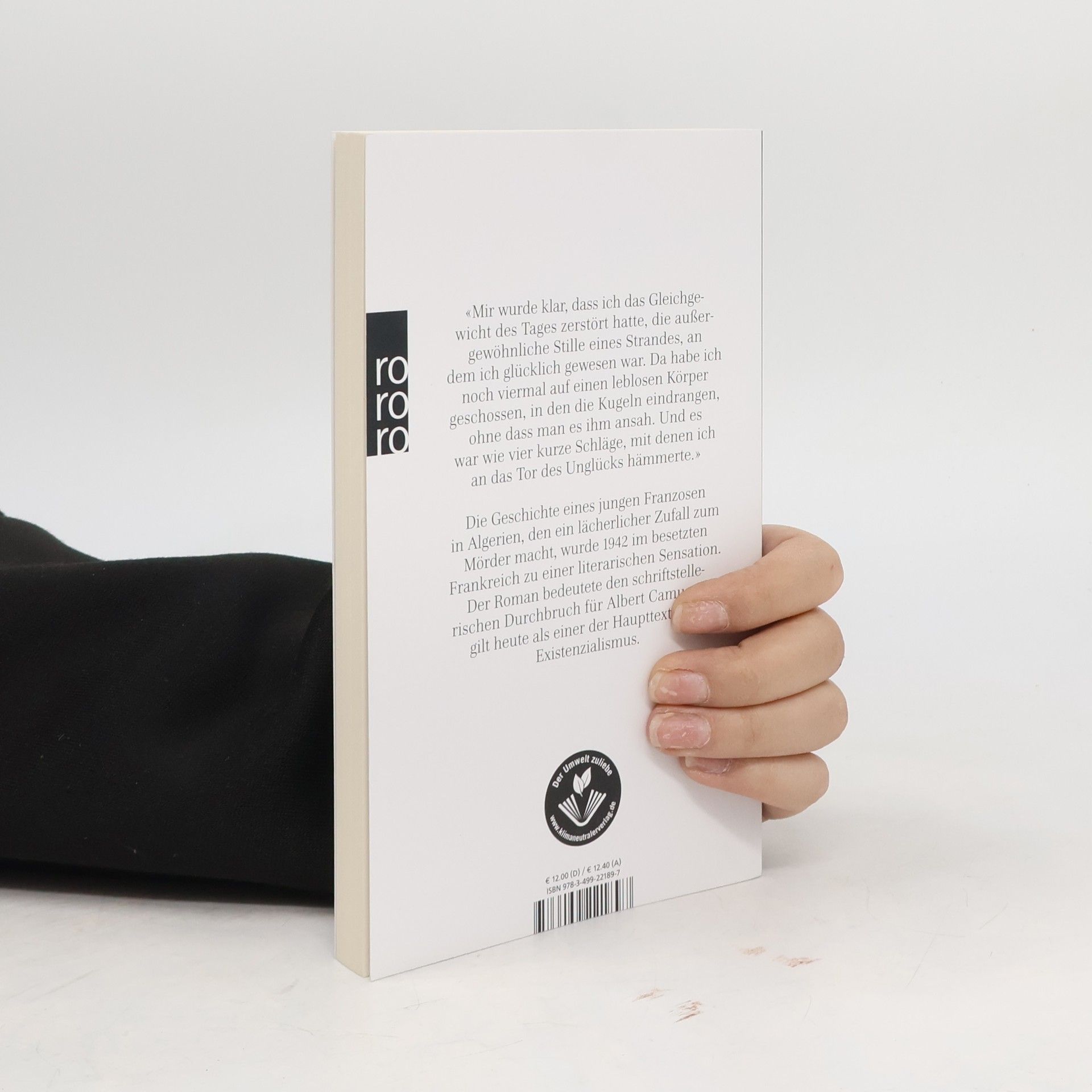«Mir wurde klar, dass ich das Gleichgewicht des Tages zerstört hatte, die außergewöhnliche Stille eines Strandes, an dem ich glücklich gewesen war. Da habe ich noch viermal auf einen leblosen Körper geschossen, in den die Kugeln eindrangen, ohne dass man es ihm ansah. Und es war wie vier kurze Schläge, mit denen ich an das Tor des Unglücks hämmerte.» Die Geschichte eines jungen Franzosen in Algerien, den ein lächerlicher Zufall zum Mörder macht, wurde 1942 im besetzten Frankreich zu einer literarischen Sensation. Der Roman bedeutete den schriftstellerischen Durchbruch für Albert Camus und gilt heute als einer der Haupttexte des Existenzialismus.