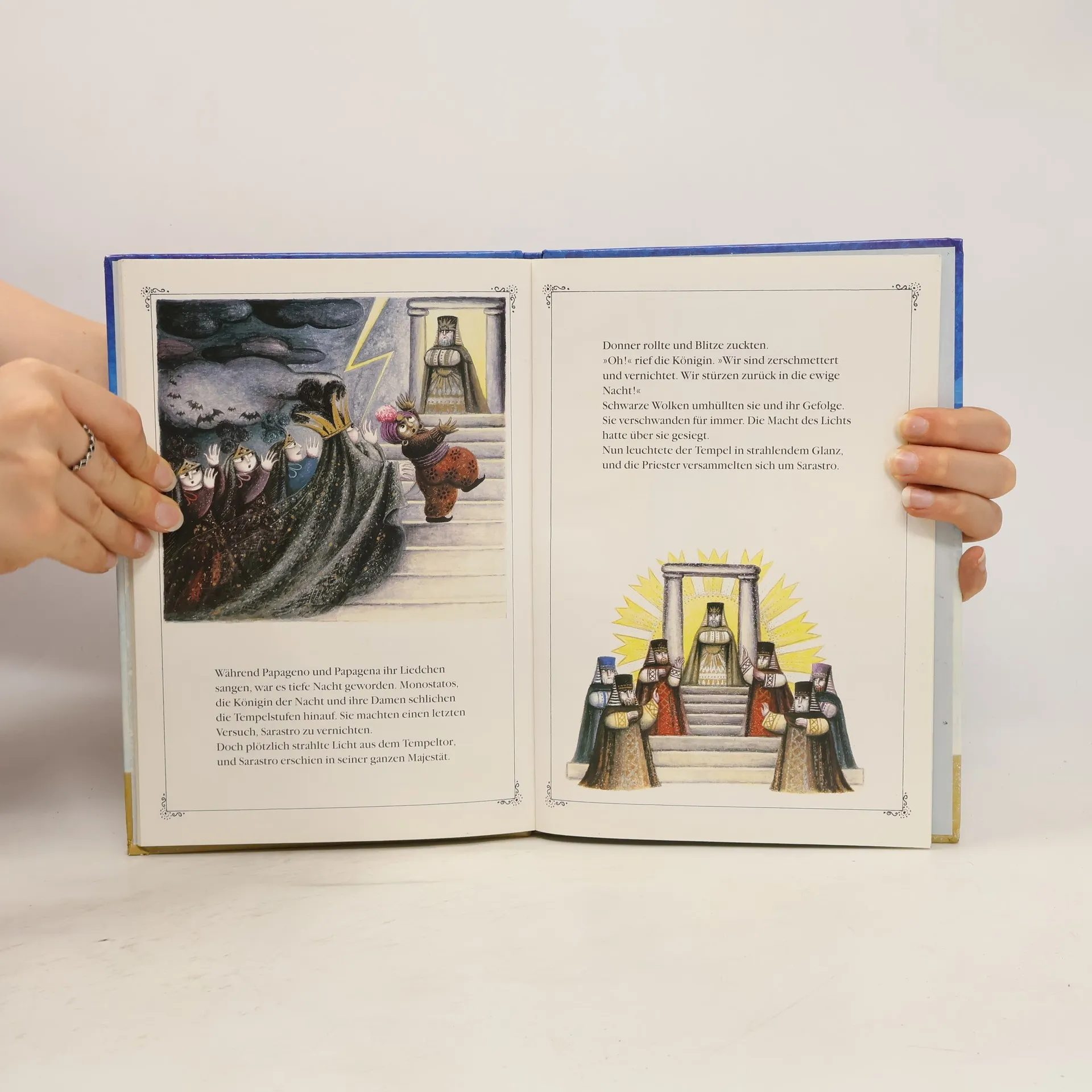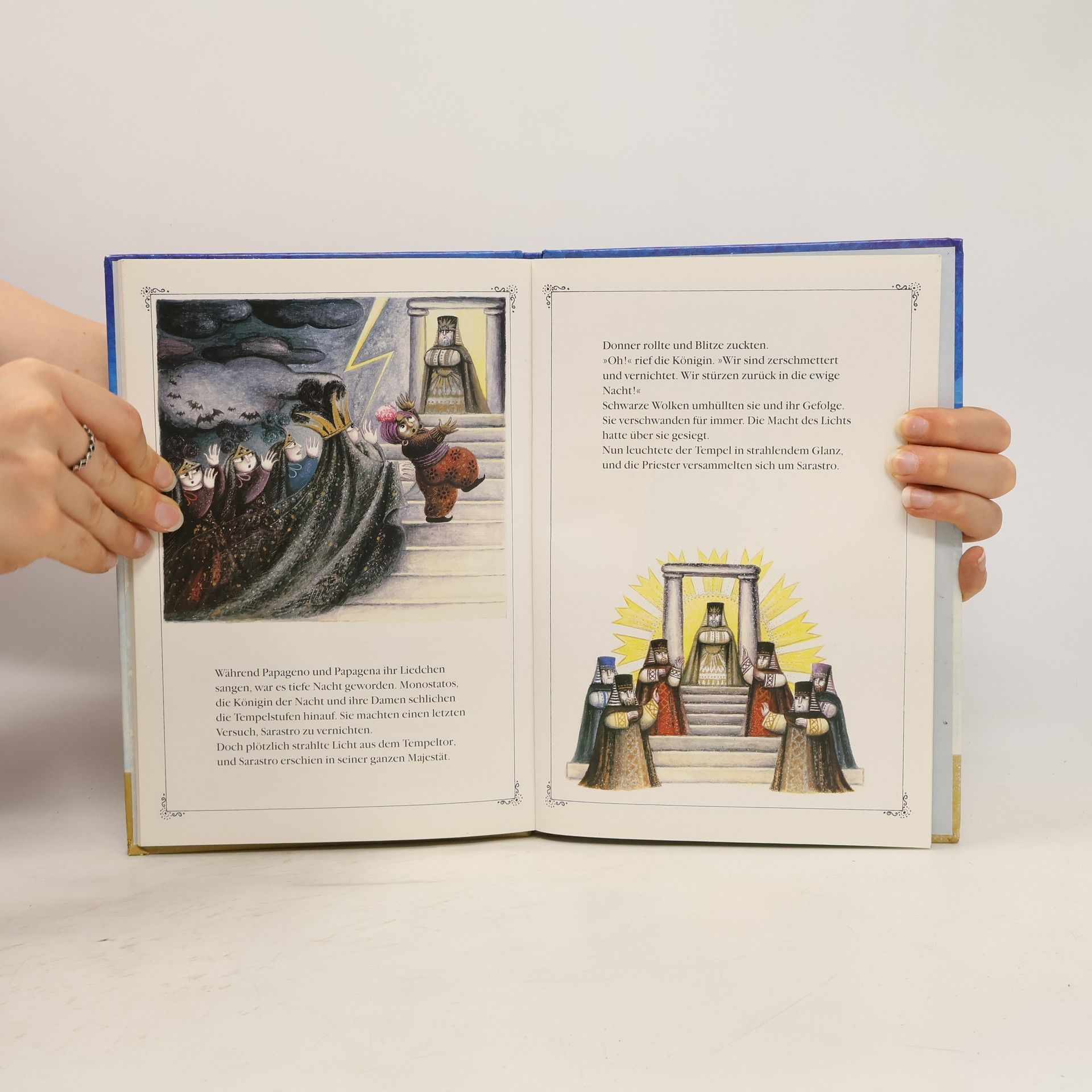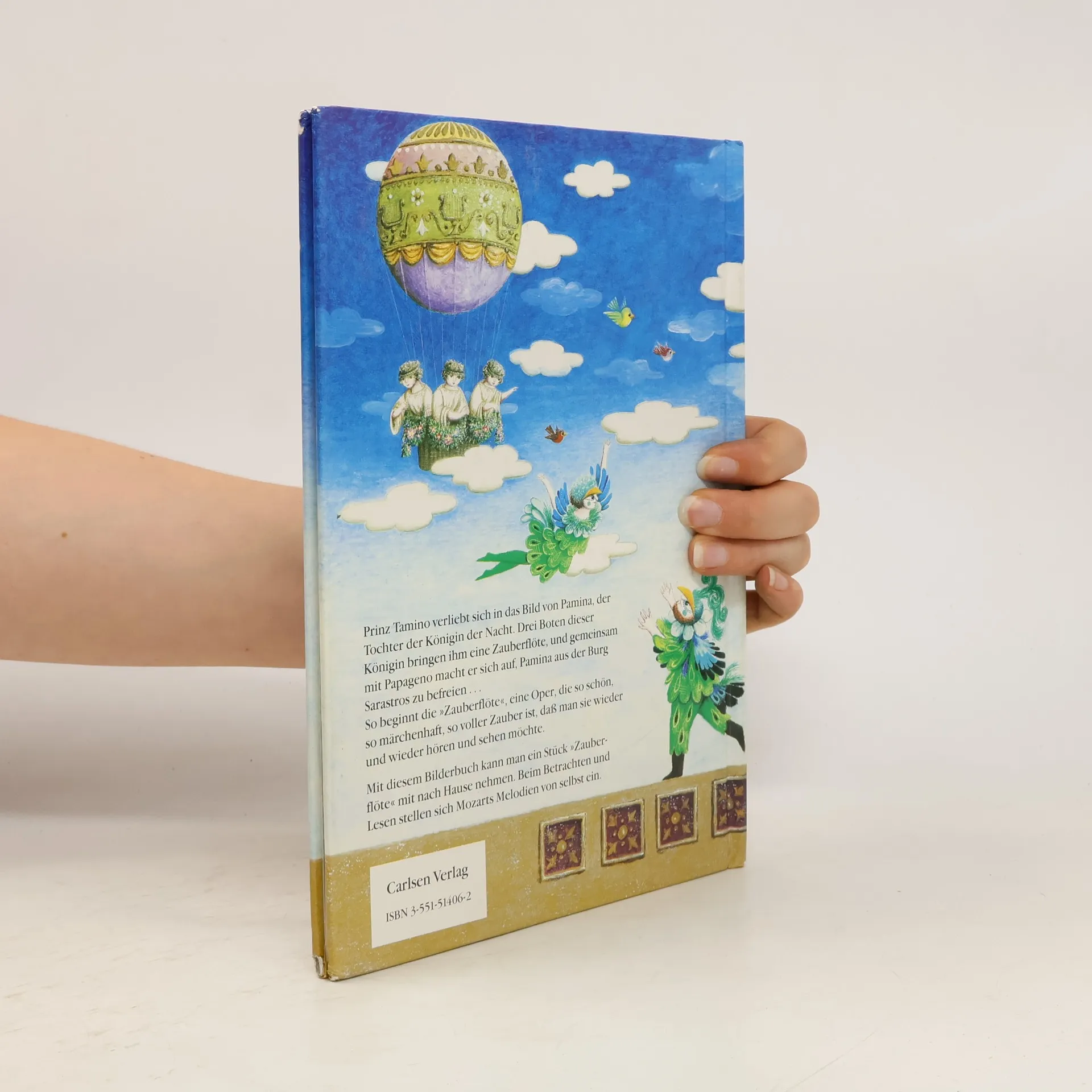 Prinz Tamino verliebt sich in das Bild von Pamina, der Tochter der Königin der Nacht. Drei Boten dieser Königin bringen ihm eine Zauberflöte, und gemeinsam mit Papageno macht er sich auf, Pamina aus der Burg Sarastros zu befreien ... So beginnt die "Zauberflöte", eine Oper, die so schön, so märchenhaft, so voller Zauber ist, daß man sie wieder und wieder hören und sehen möchte. Mit diesem Bilderbuch kann man ein Stück "Zauberflöte" mit nach Hause nehmen. Beim Betrachten und Lesen stellen sich Mozarts Melodien von selbst ein