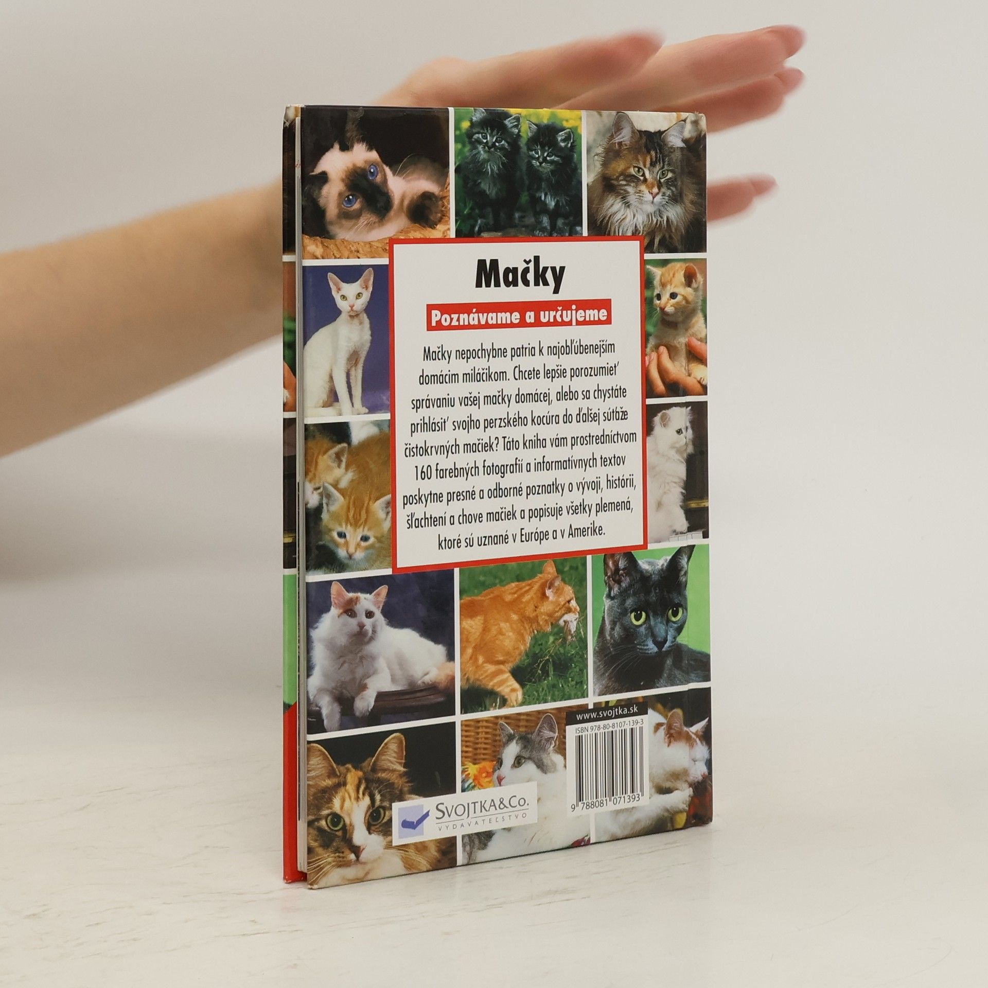 Táto kniha vám prostredníctvom 160 farebných fotografií a informatívnych textov poskytne presné a odborné poznatky o vývoji, histórií, šľachtení a chove mačiek a popisuje všetky plemená, ktoré sú uznané v Európe a v Amerike.