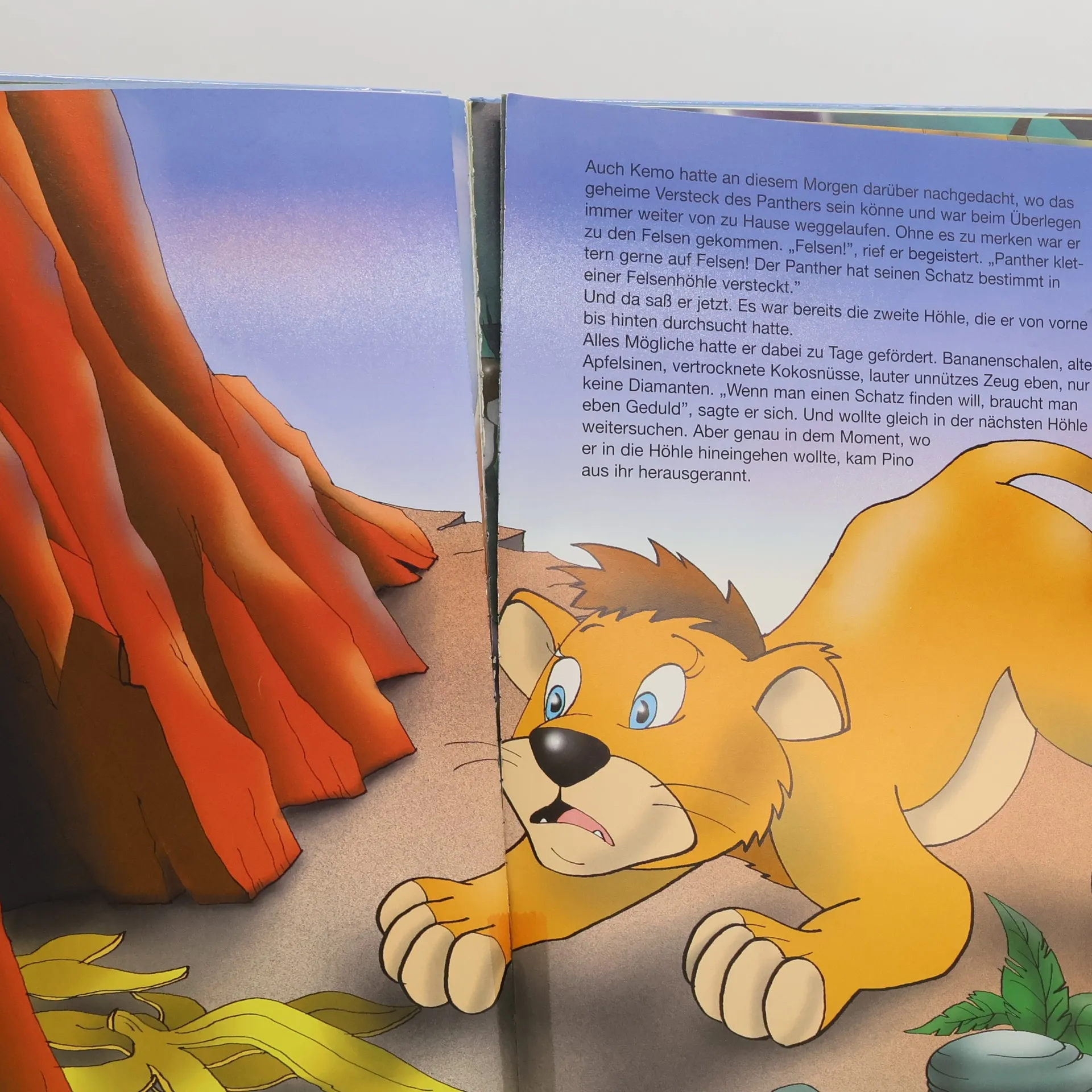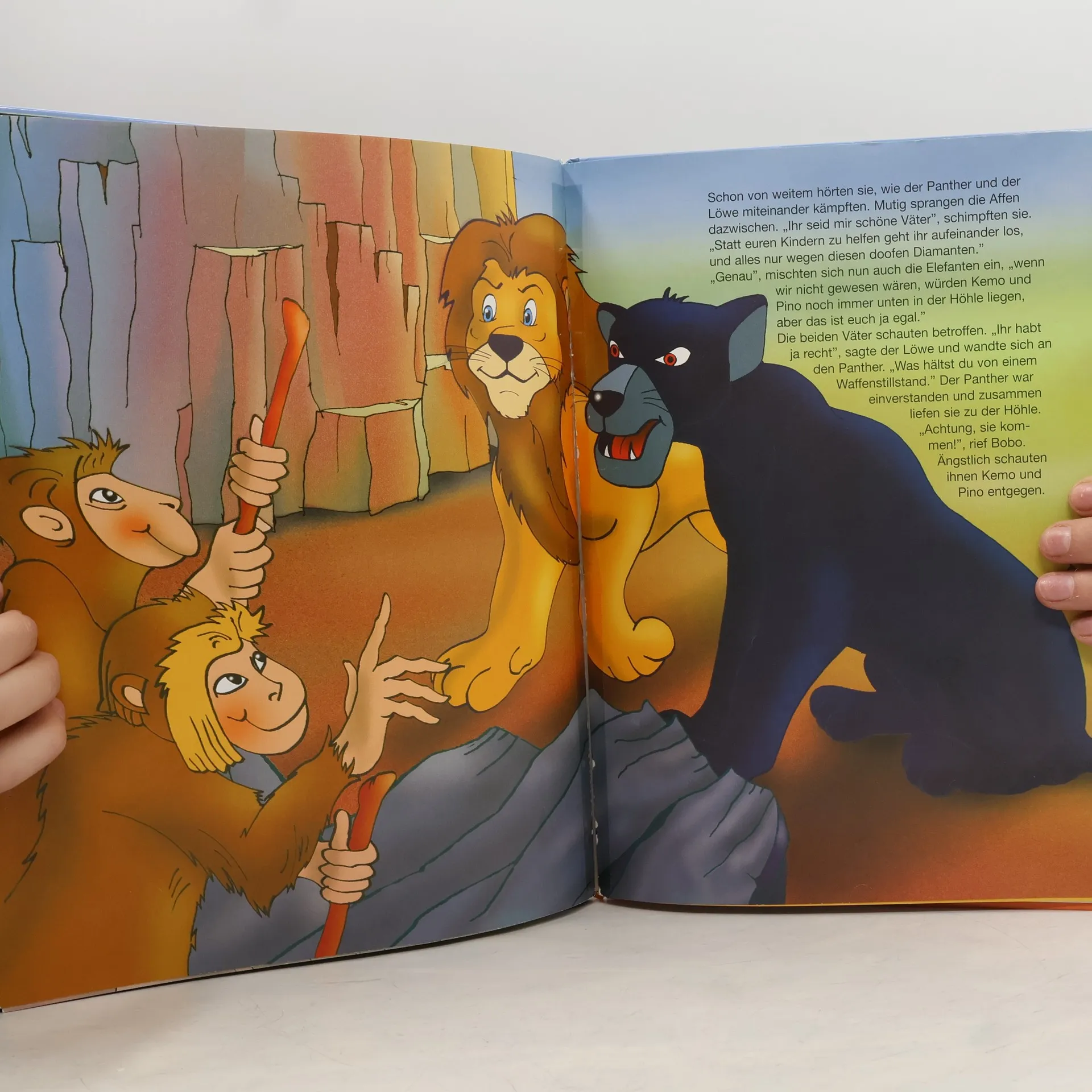 Der König der Tiere hat vor langer Zeit den schwarzen Panther aus seinem Reich vertrieben und läßt die Grenzen von den Elefanten bewachen. Der schwarze Panther sinnt auf Rache und möchte einen Diamantenschatz zurückerobern. Auch Kemo und Pino, die Söhne der beiden Feinde, machen sich auf die abenteuerliche Suche nach dem Schatz. Dabei treffen sie aufeinander...Ob sie wohl den großen Schatz finden, und ob sie den Kampf ihrer Väter weiterführen werden?