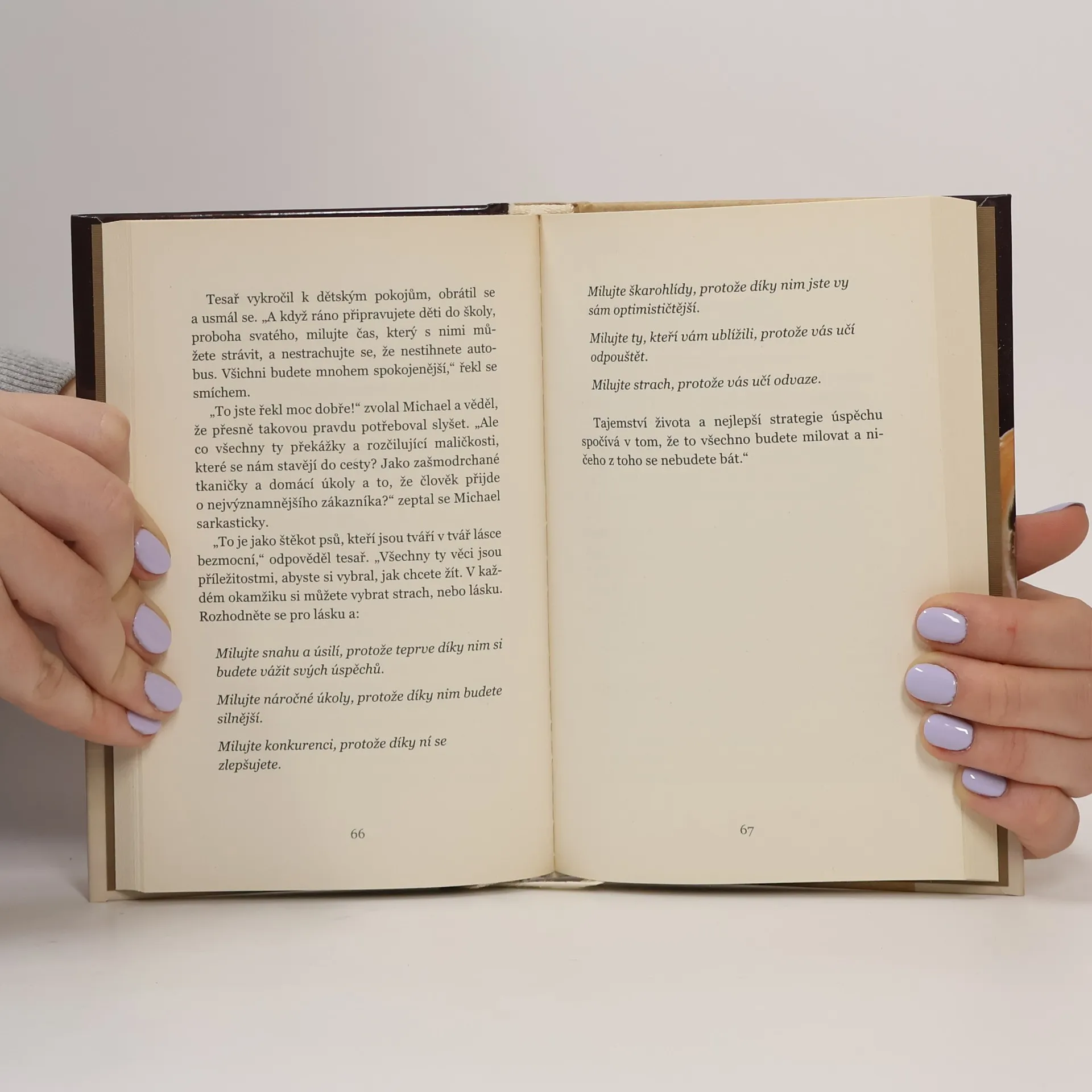 Podnikatel Michael se probudí v nemocnici s ovázanou hlavou a netuší, jak se tam ocitl. Dovídá se, že zkolaboval při ranním běhání. Když zjistí, že muž, který mu zachránil život, je tesař, navštíví ho a zjistí, že je mnohem víc než to; je stavitelem životů, kariér, lidí a týmů. Tesař se s Michaelem dělí o svou životní moudrost a pomáhá mu tím nejen zachránit podnik, ale i najít hlubší smysl života. Hlavní postava a s ní i čtenář postupně zjišťuje, že úspěchu nelze dosáhnout přes noc, ale že existují nadčasové principy, které člověku pomohou vyniknout a působit na ostatní.