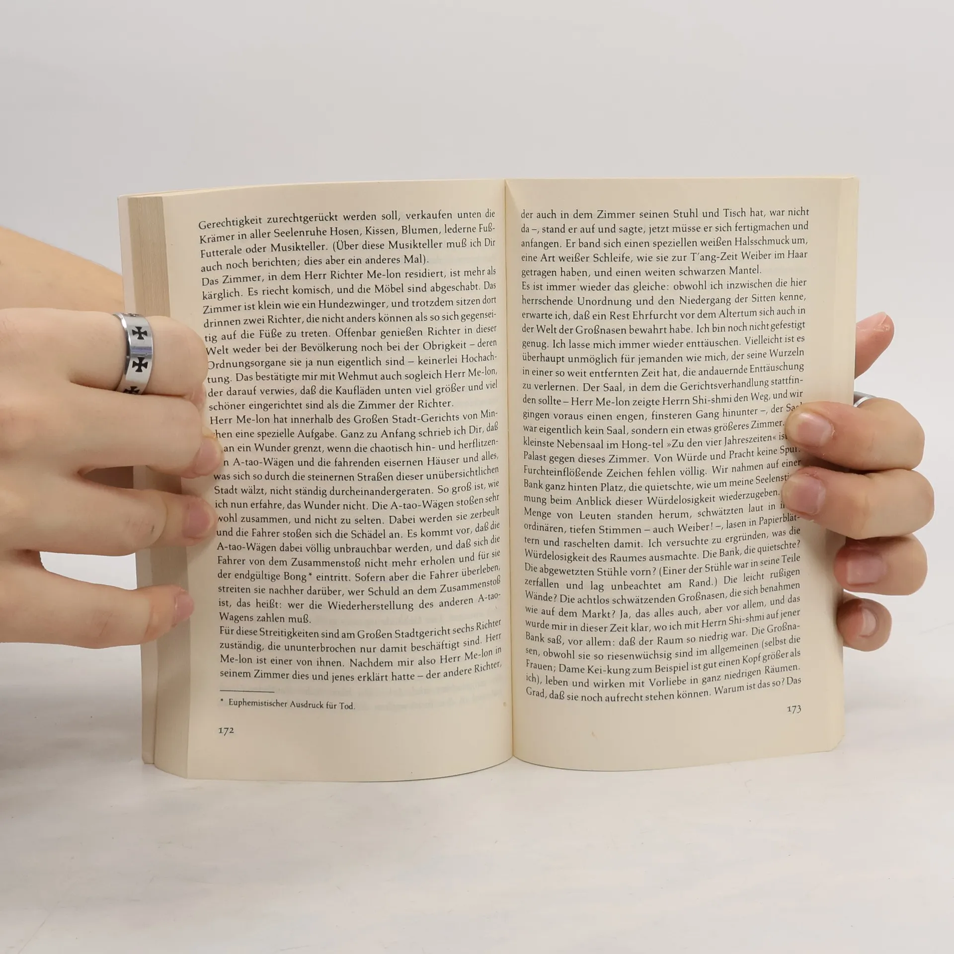 Ein Mandarin aus dem China des 10. Jahrhunderts versetzt sich mit Hilfe eines »Zeit-Reise-Kompasses« in die heutige Zeit. Er überspringt nicht nur tausend Jahre, sondern landet auch in einem völlig anderen Kulturkreis: in einer modernen Großstadt, deren Name in seinen Ohren wie Min-chen klingt und die in Ba Yan liegt. Verwirrt und wißbegierig stürzt sich Kao-tai in ein Abenteuer, von dem er nicht weiß, wie es ausgehen wird. In Briefen an seinen Freund im Reich der Mitte schildert er seine Erlebnisse und Eindrücke, erzählt vom seltsamen Leben der »Großnasen«, von ihren kulturellen und technischen Errungenschaften und versucht Beobachtungen und Vorgänge zu interpretieren, die ihm selbst zunächst unverständlich sind.